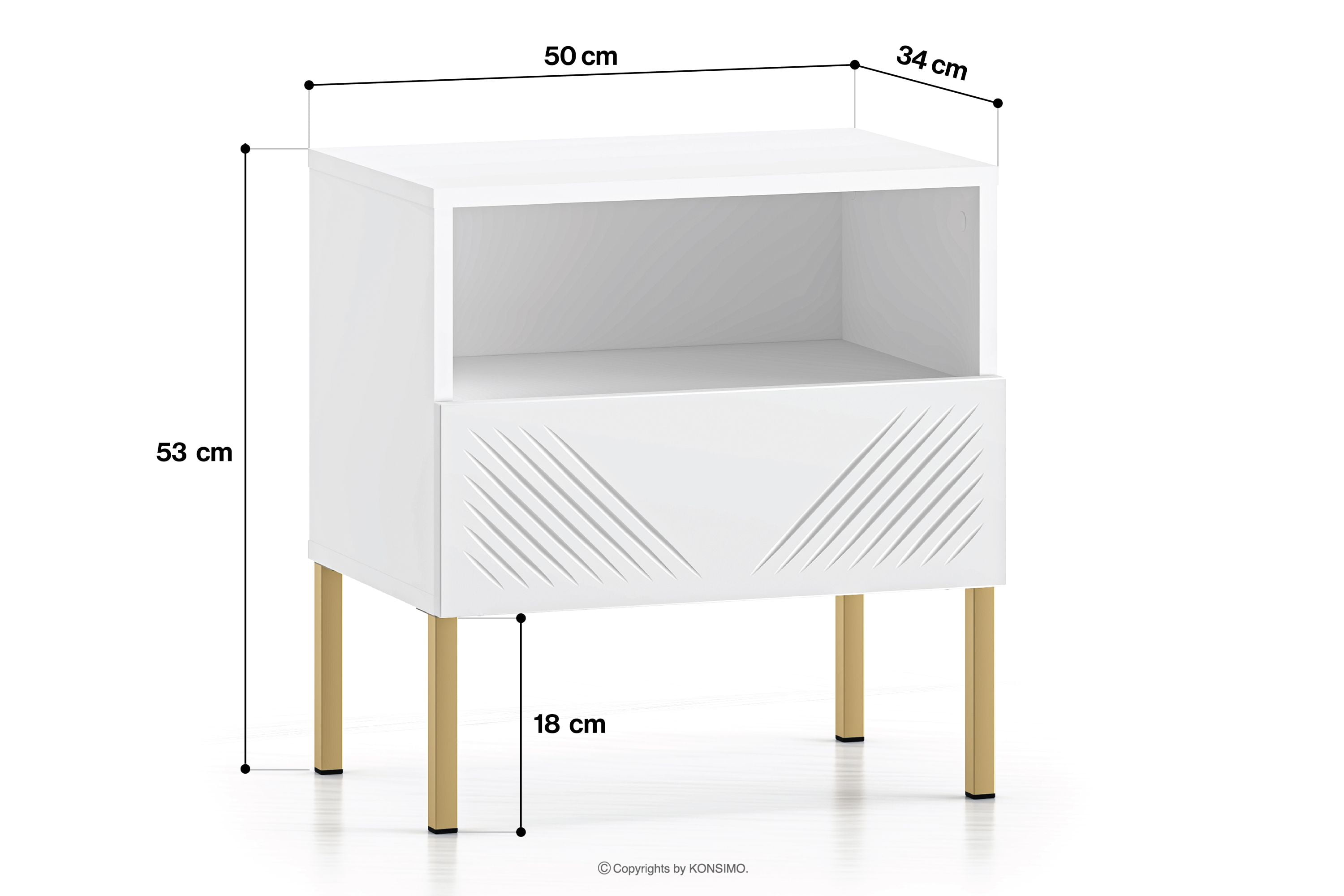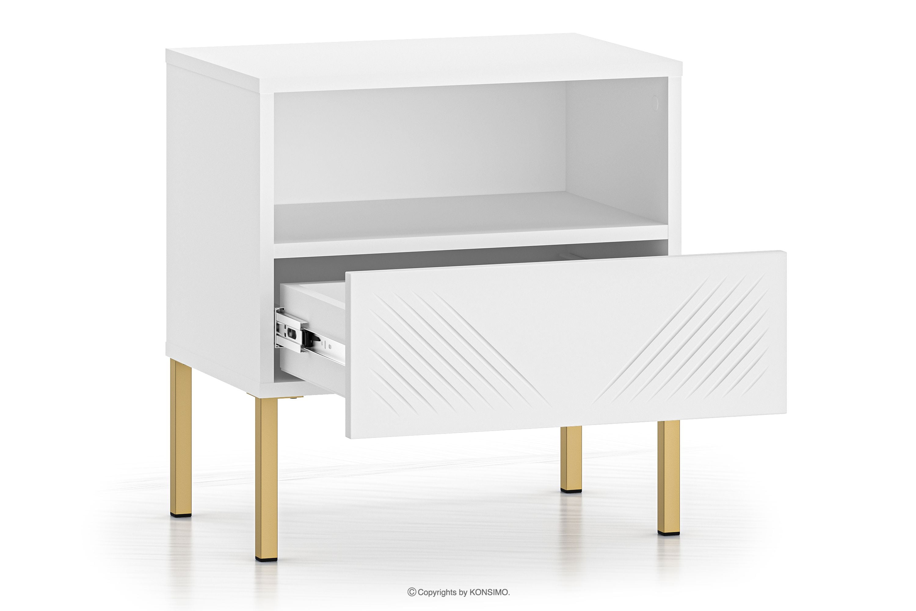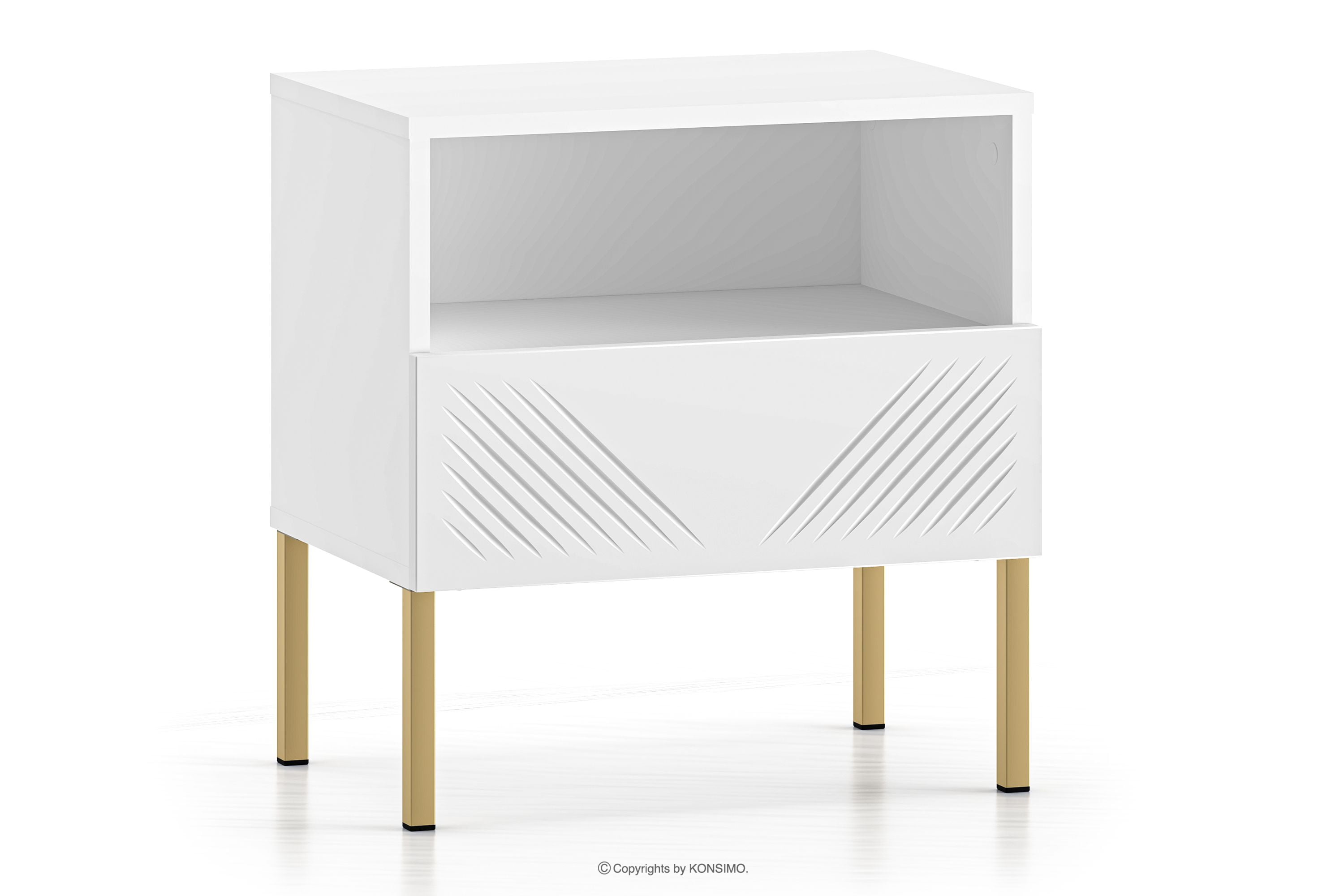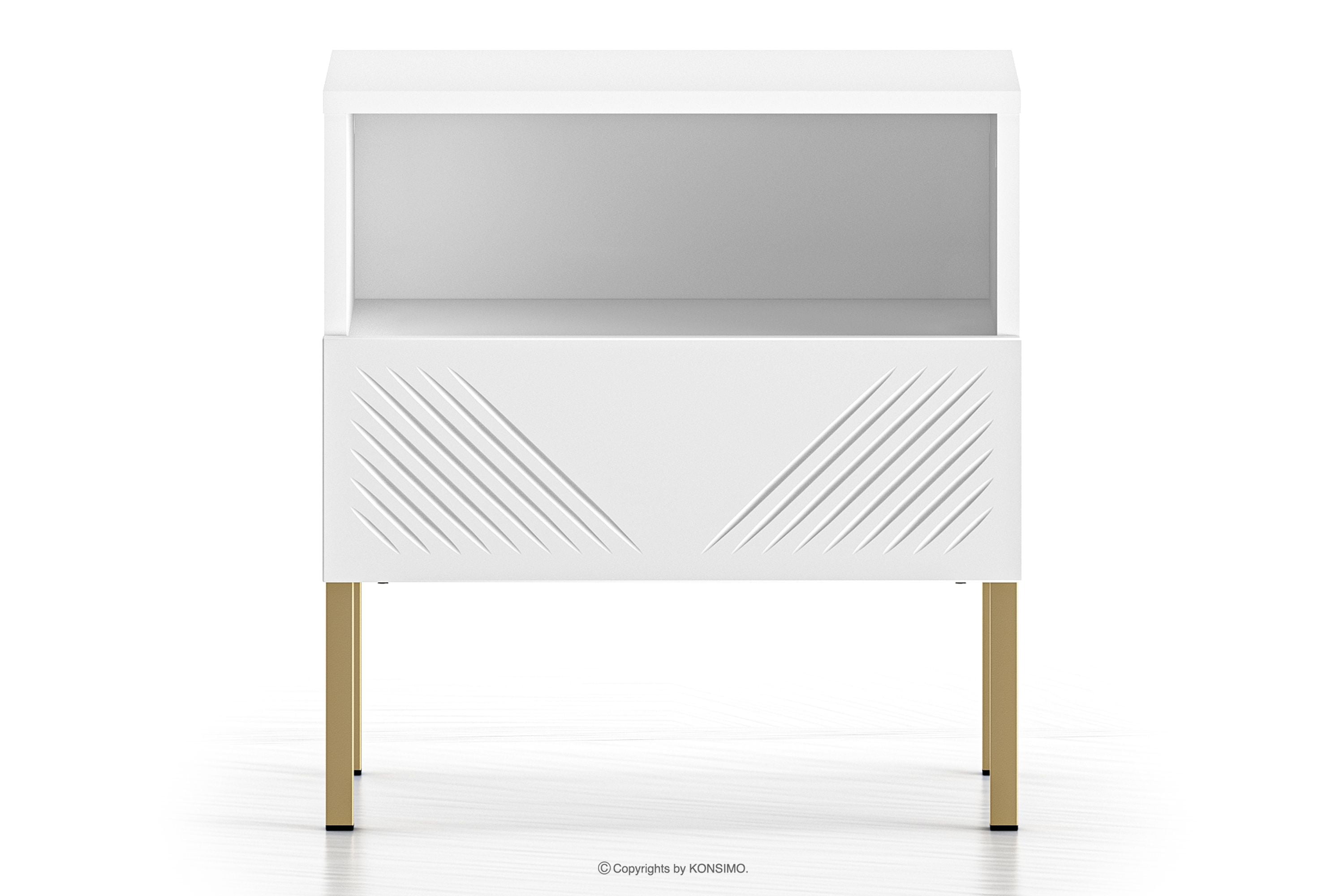 NEBRO Objav celú kolekciu Nočný stolík elegantný na zlatých elegantných nohách- farba biela/zlatá