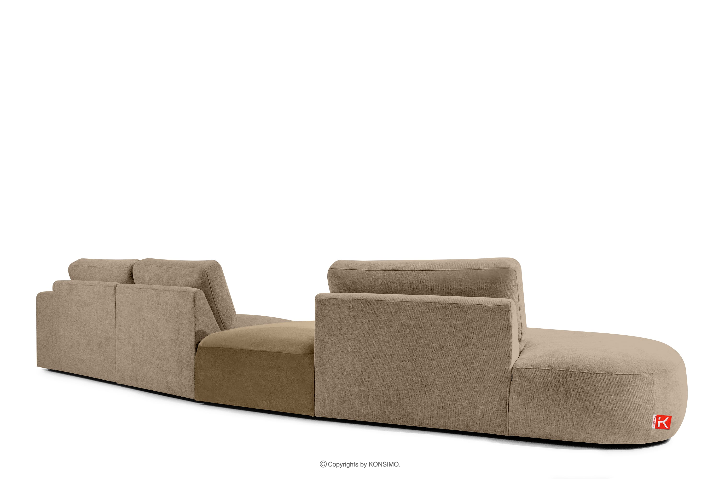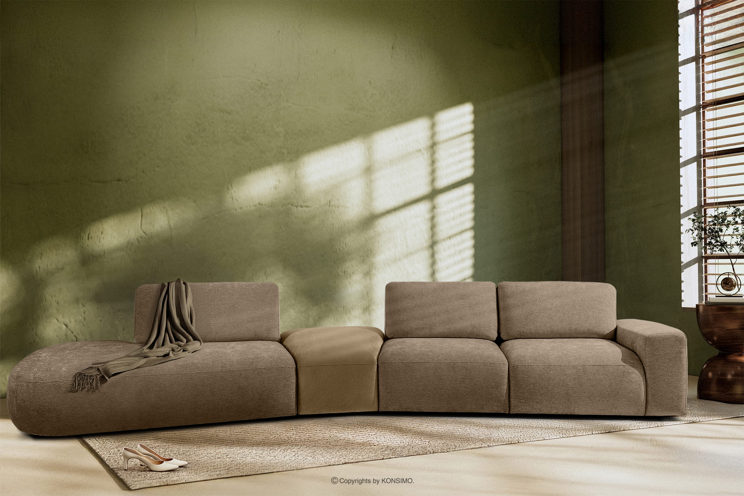 Veľká šenilovo-velúrová béžová ľavá rohová pohovka do obývačky je synonymom moderného pohodlia a elegancie. Je vyrobená z najkvalitnejších materiálov a jej modulárnosť zaručuje slobodu používania v závislosti od vašich potrieb. Rohová pohovka je čalúnená látkou šenil a velúr, ktorá jej dodáva luxusný vzhľad a ľahko sa udržiava v čistote. Šenilová látka je známa svojou odolnosťou a príjemnou štruktúrou, zatiaľ čo velúr dodáva eleganciu a jemný lesk, čím vytvára dojem hĺbky farieb.