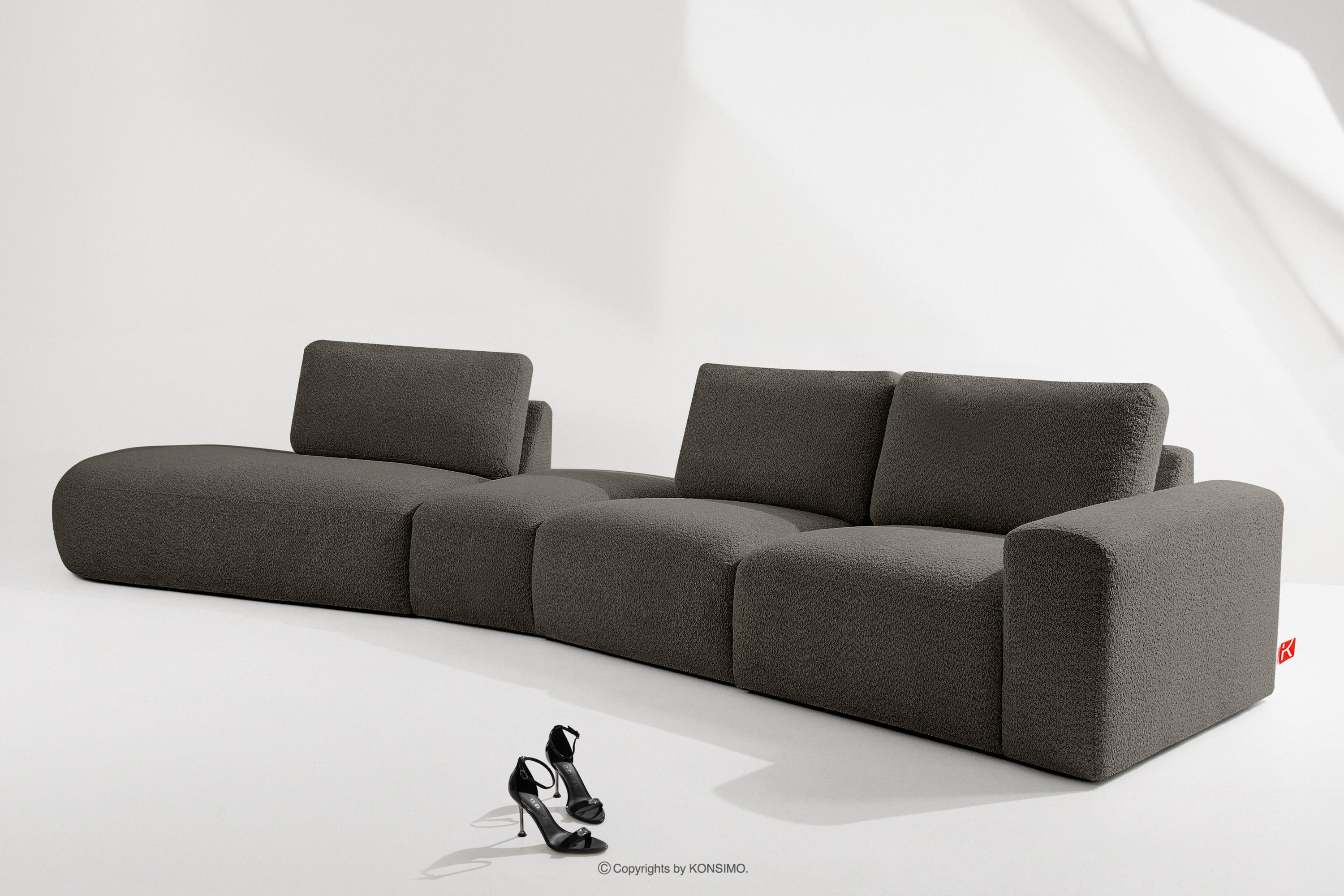Veľká rohová pohovka do obývačky boucle tmavohnedá ľavá je synonymom moderného pohodlia a elegancie. Je vyrobená z najkvalitnejších materiálov a jej modulárnosť zaručuje slobodu používania v závislosti od vašich potrieb. Rohová pohovka je čalúnená látkou boucle, ktorá jej dodáva luxusný vzhľad a je známa aj svojou odolnosťou a príjemnou štruktúrou. Moderný štýl, v ktorom je rohová pohovka ZUCCO navrhnutá, dokonale zapadá do súčasných interiérových trendov.