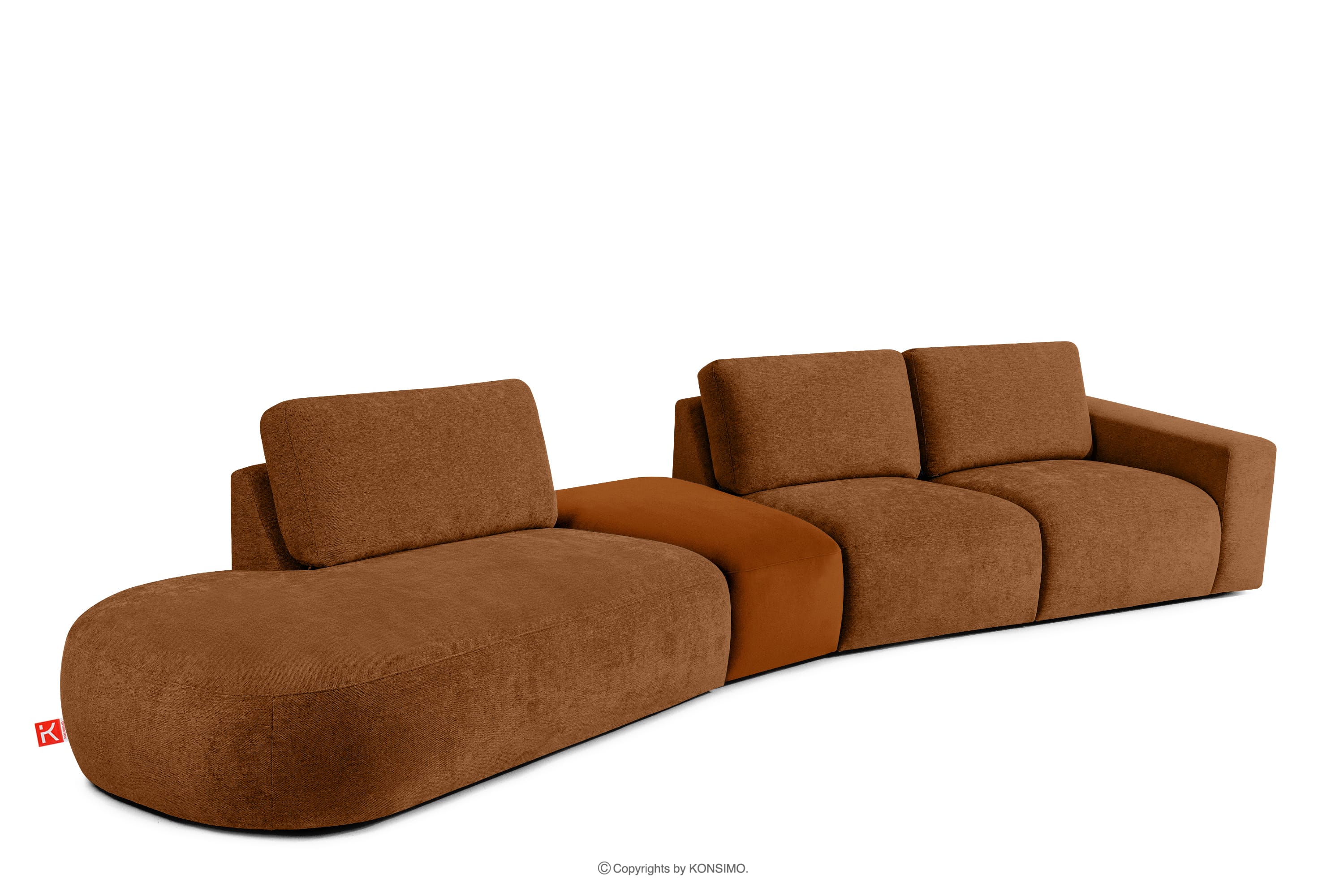 Veľká rohová pohovka do obývačky šenil/welur rudá ľavá je synonymom moderného pohodlia a elegancie. Je vyrobená z najkvalitnejších materiálov a jej modulárnosť zaručuje slobodu používania v závislosti od vašich potrieb. Rohová pohovka je čalúnená látkou šenil a velúr, ktorá jej dodáva luxusný vzhľad a ľahko sa udržiava v čistote. Šenilová látka je známa svojou odolnosťou a príjemnou štruktúrou, zatiaľ čo velúr dodáva eleganciu a jemný lesk, čím vytvára dojem hĺbky farieb.