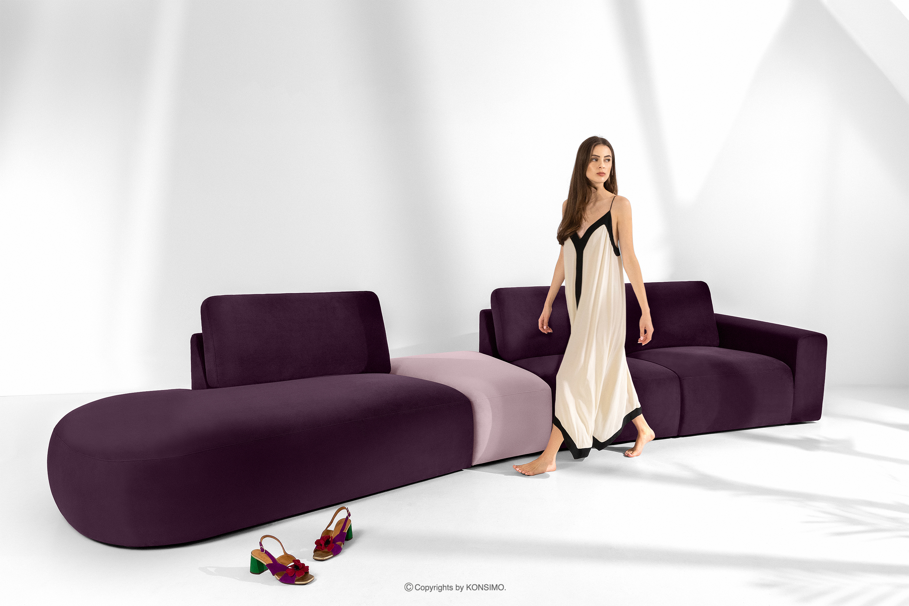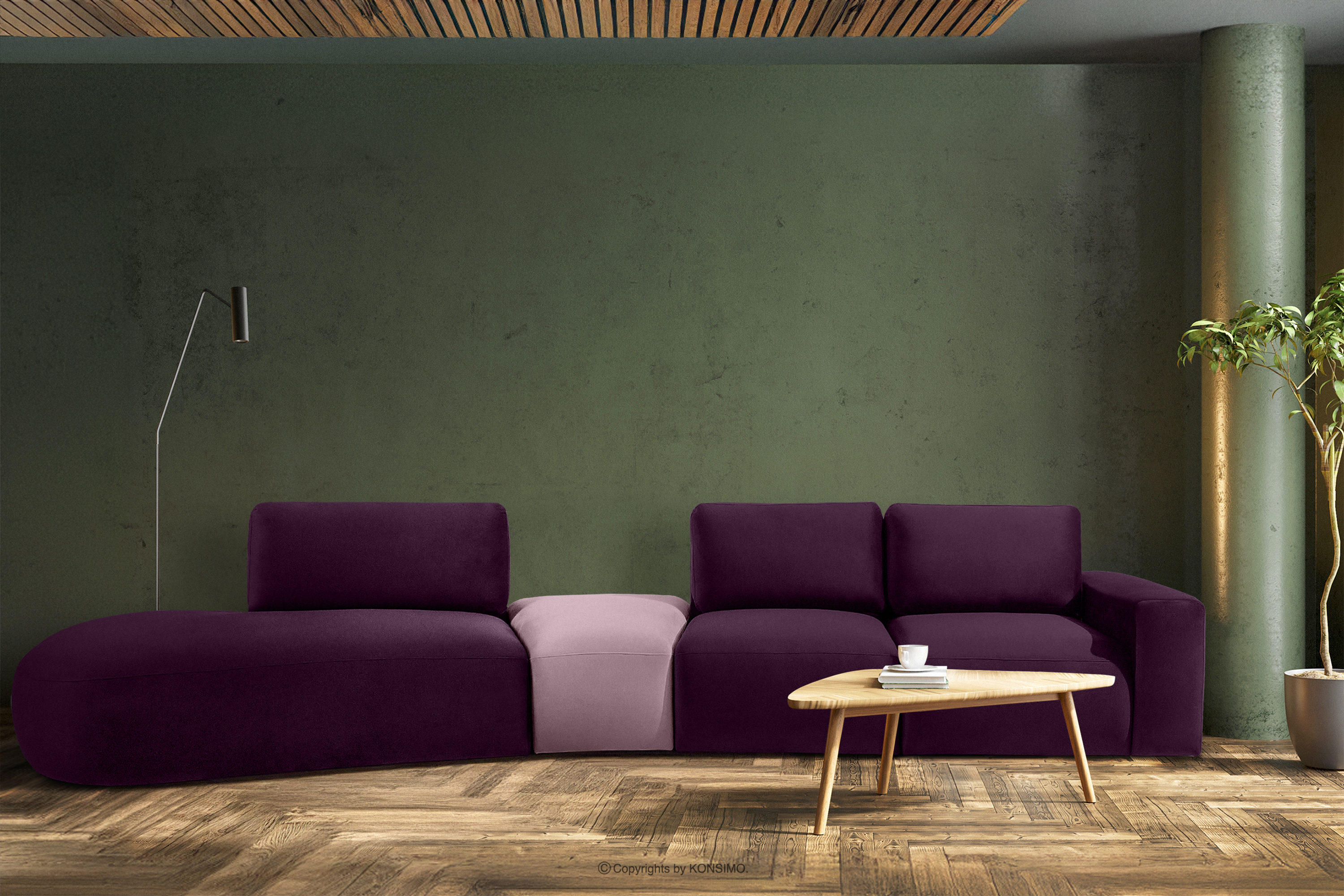 Veľká rohová pohovka do obývačky velúr fialová/ružová vľavo je synonymom moderného pohodlia a elegancie. Je vyrobená z najkvalitnejších materiálov a jej modulárnosť zaručuje slobodu používania v závislosti od vašich potrieb. Rohová pohovka je čalúnená velúrovou látkou, ktorá jej dodáva luxusný vzhľad a ľahko sa udržiava v čistote. Moderný štýl, v ktorom je rohová pohovka ZUCCO navrhnutá, dokonale zapadá do súčasných trendov interiérového dizajnu.