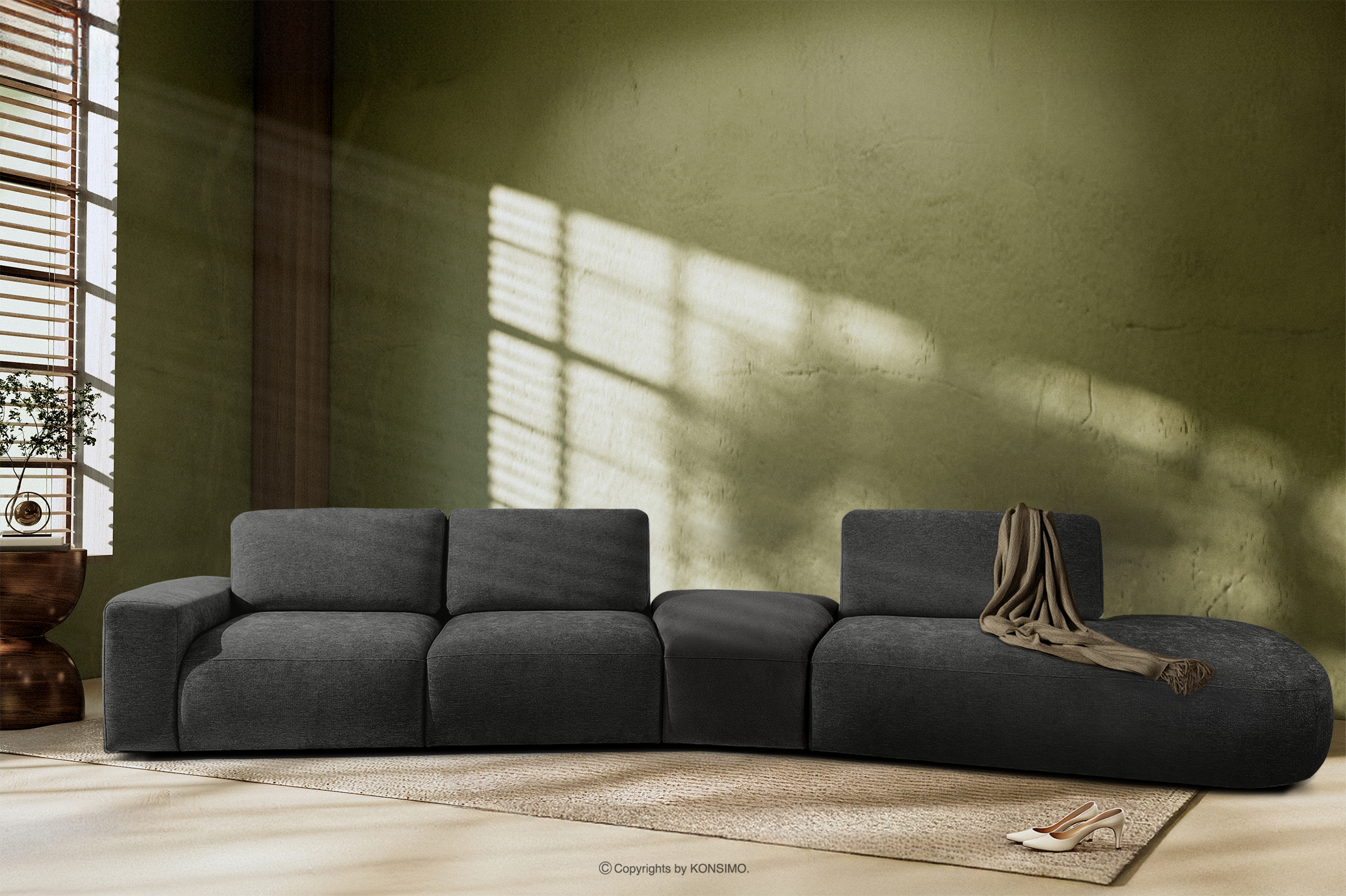 Organická rohová pohovka do obývačky v šenilovej/velúrovej látke tmavosivej pravej farby je synonymom moderného pohodlia a elegancie. Je vyrobená z najkvalitnejších materiálov a vďaka modulárnosti zaručuje slobodu používania v závislosti od vašich potrieb. Rohová pohovka je čalúnená látkou šenil a velúr, ktorá jej dodáva luxusný vzhľad a ľahko sa udržiava v čistote.