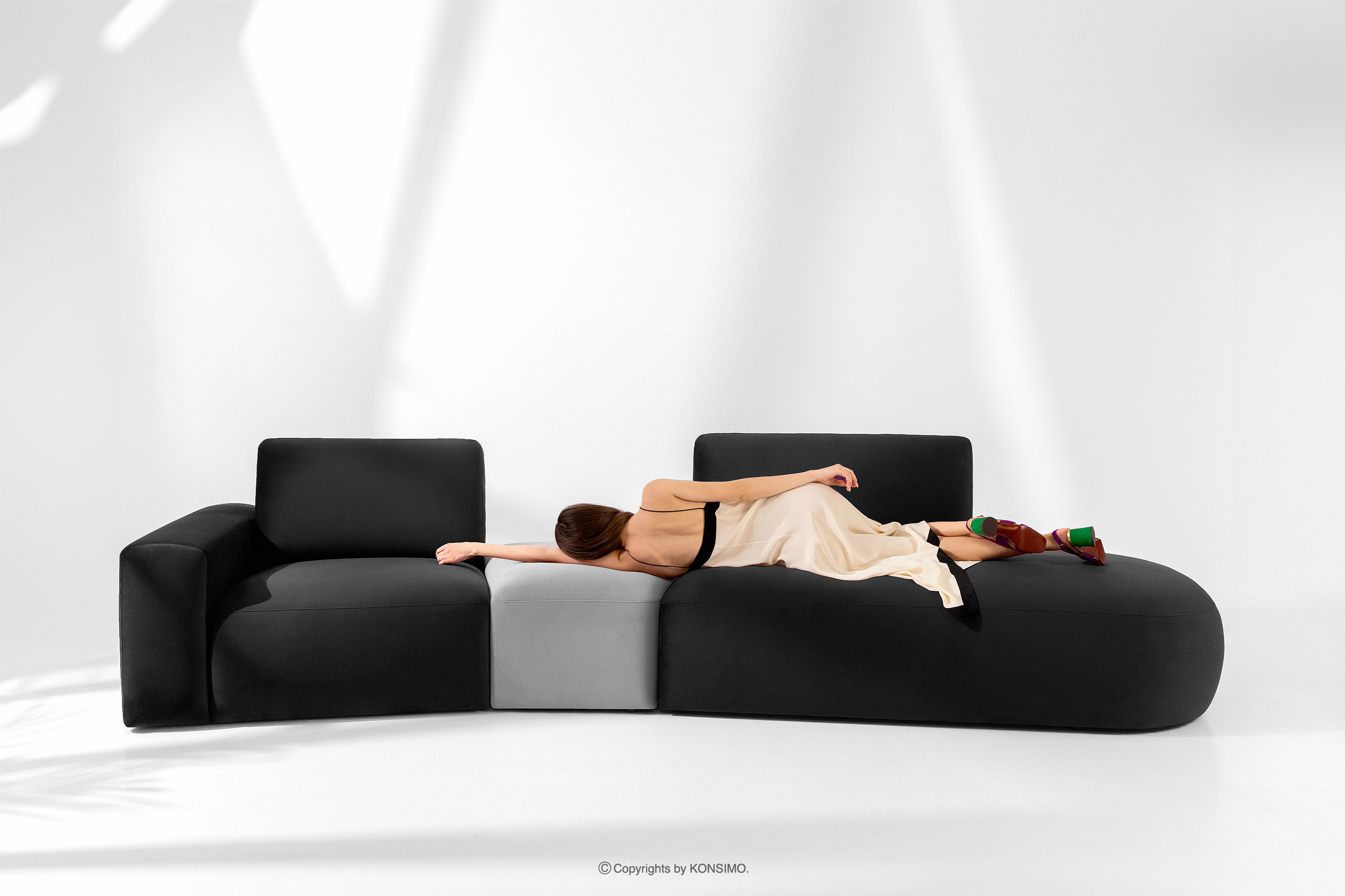 ZUCCO Objav celú kolekciu Organická rohová pohovka do obývačky z velúrovej tkaniny tmavosivá/svetlosivá vpravo- farba tmavosivá/svetlosivá