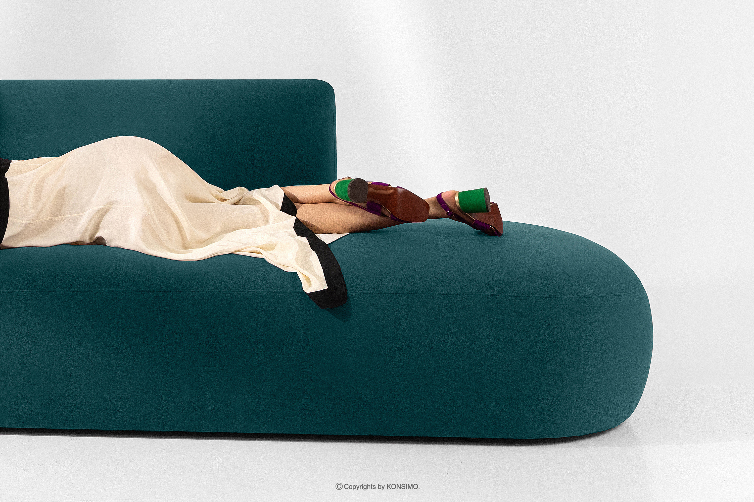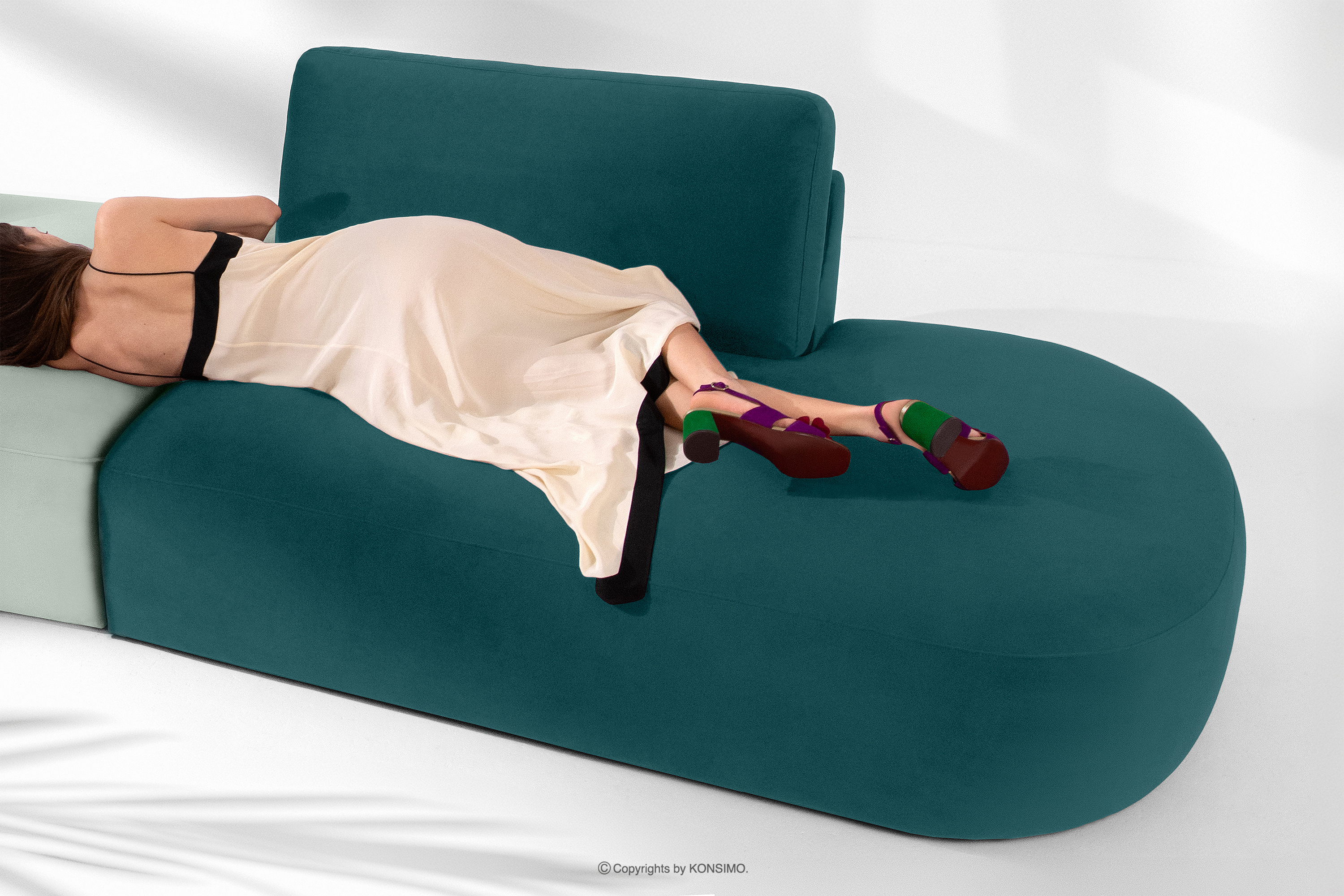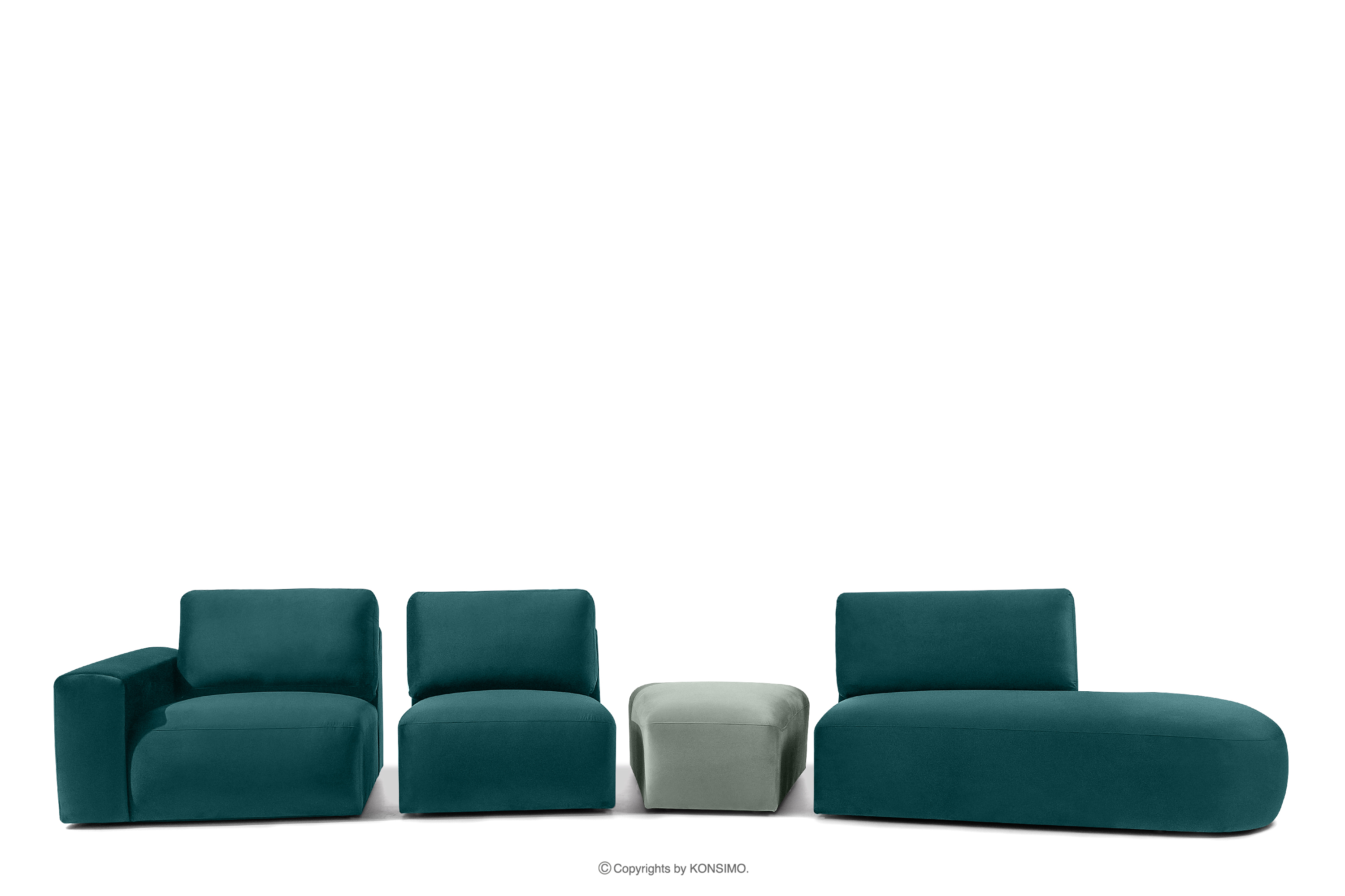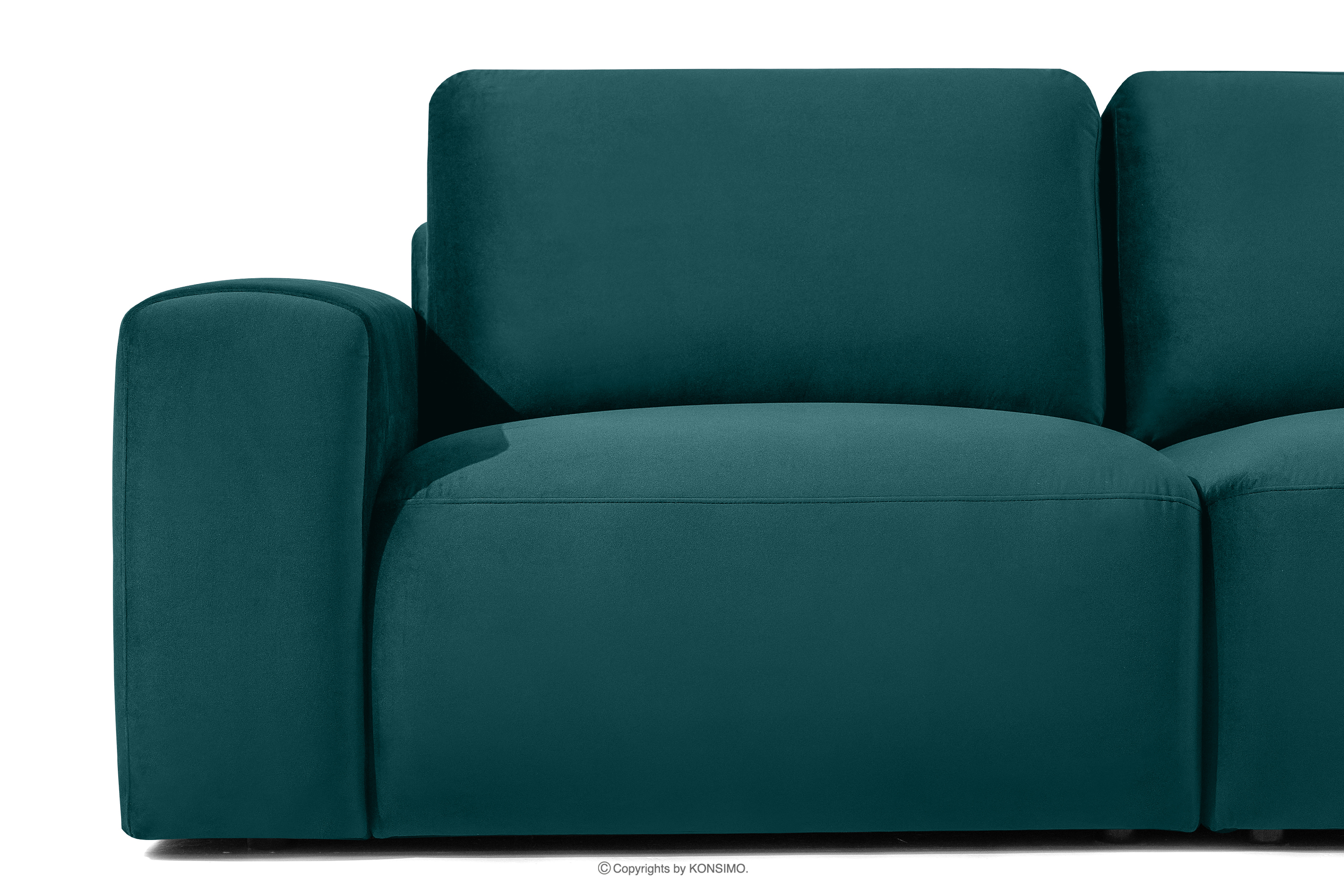 Organická rohová sedacia súprava do obývačky v morskej/mätovej velúrovej látke vpravo je synonymom moderného pohodlia a elegancie. Je vyrobená z najkvalitnejších materiálov a vďaka modulárnosti zaručuje slobodu používania v závislosti od vašich potrieb. Rohová pohovka je čalúnená velúrovou látkou, ktorá jej dodáva luxusný vzhľad a zároveň sa ľahko udržiava v čistote.