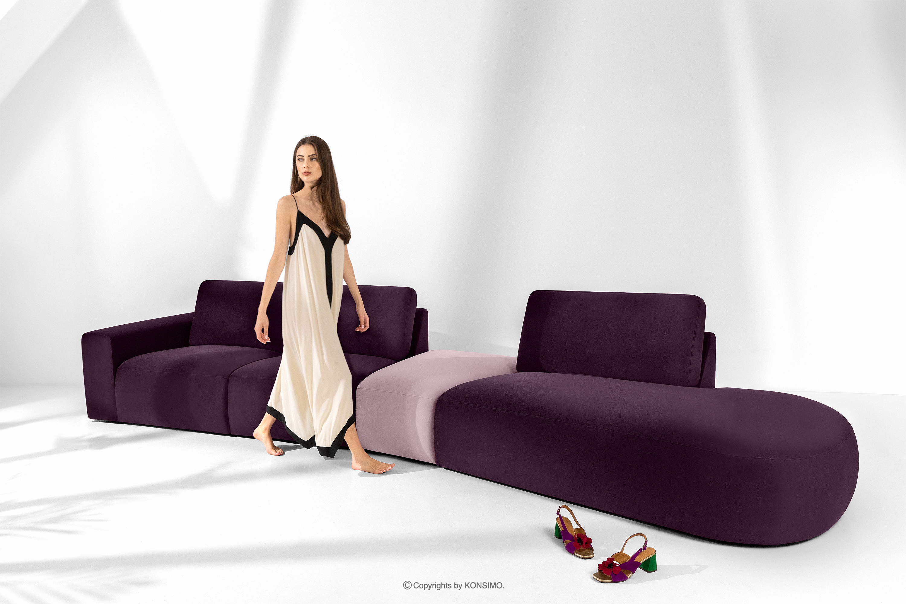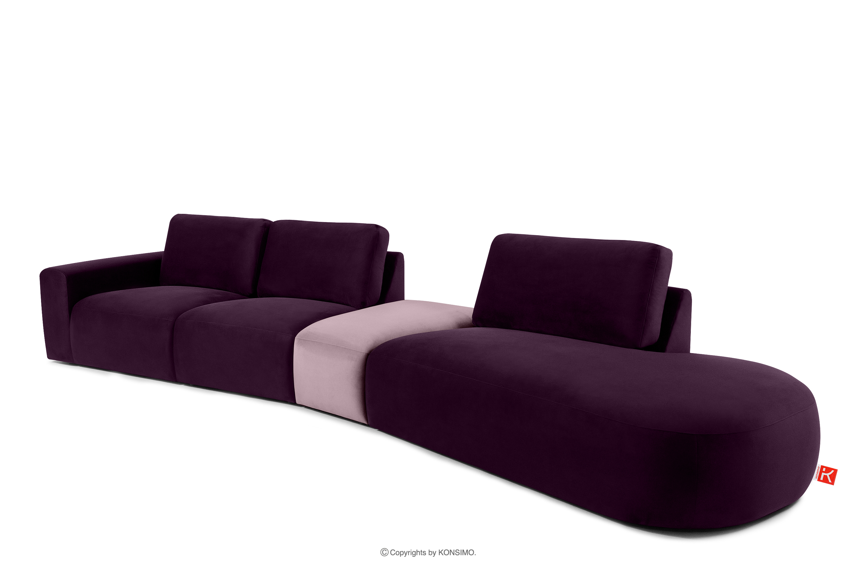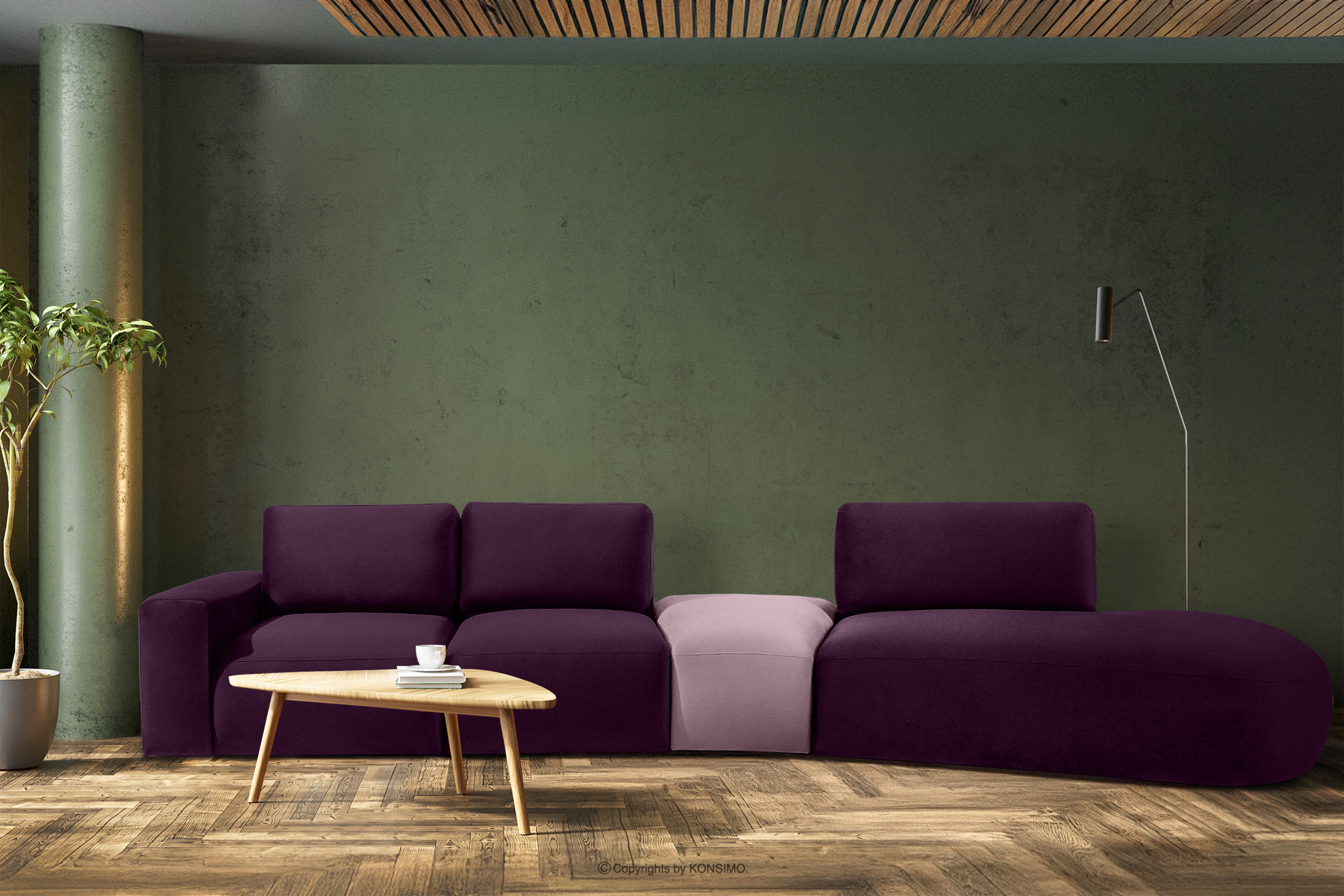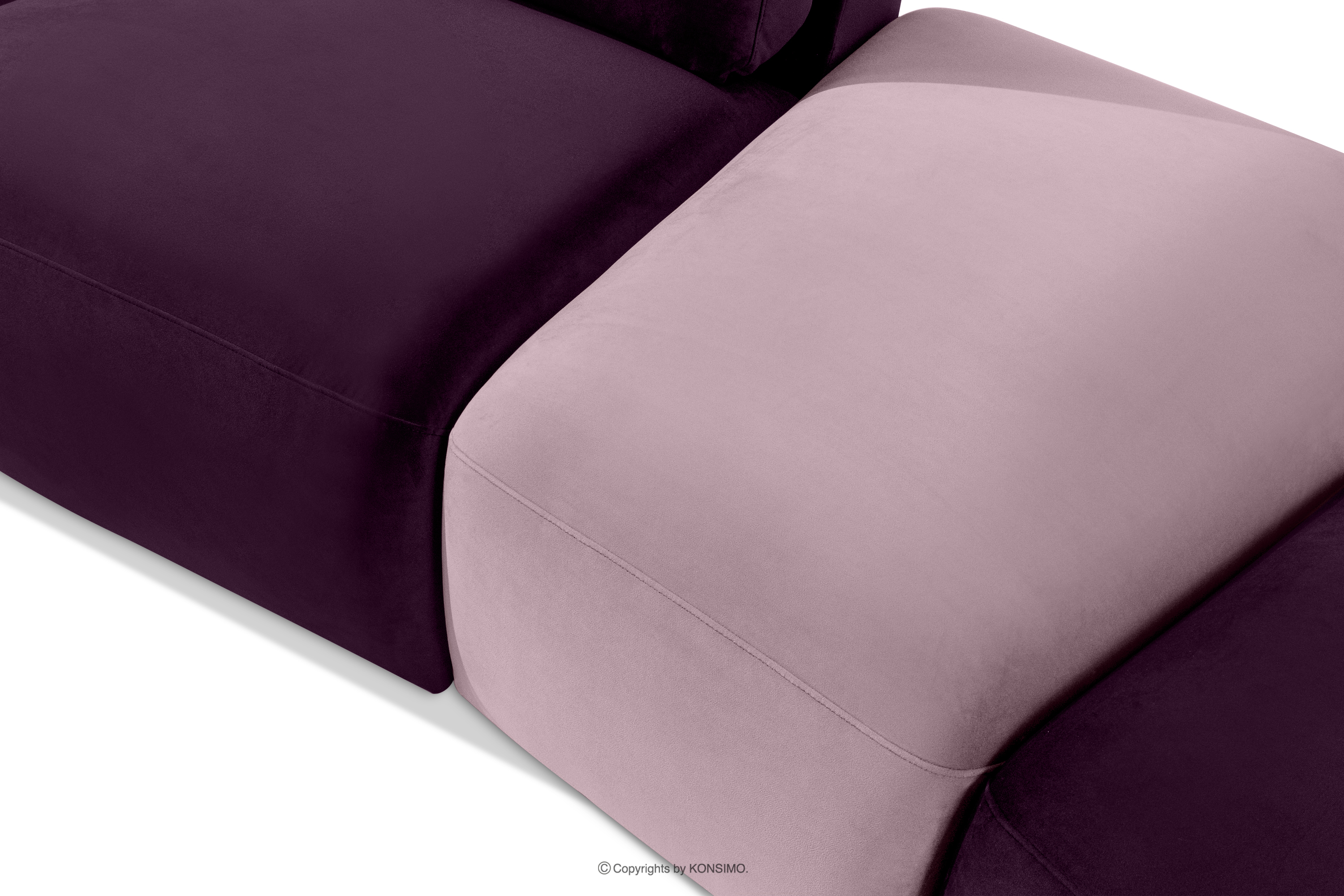 Organická rohová pohovka do obývačky vo fialovo-ružovej velúrovej látke vpravo je synonymom moderného pohodlia a elegancie. Je vyrobená z najkvalitnejších materiálov a jej modulárnosť zaručuje slobodu používania v závislosti od vašich potrieb. Rohová pohovka je čalúnená velúrovou látkou, ktorá jej dodáva luxusný vzhľad a zároveň sa ľahko udržiava v čistote. Moderný štýl, v ktorom je rohová pohovka ZUCCO navrhnutá, dokonale zapadá do súčasných trendov interiérového dizajnu.