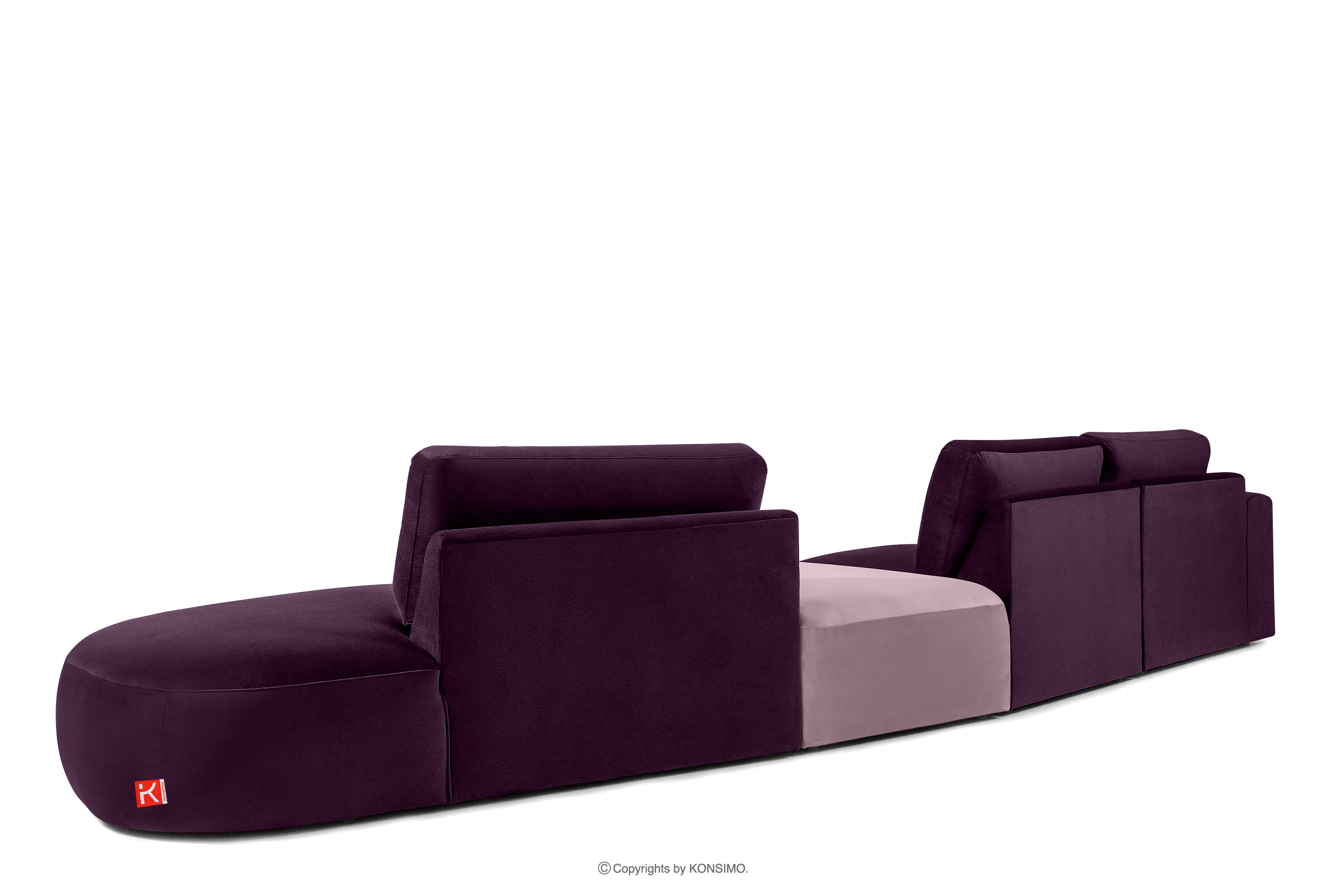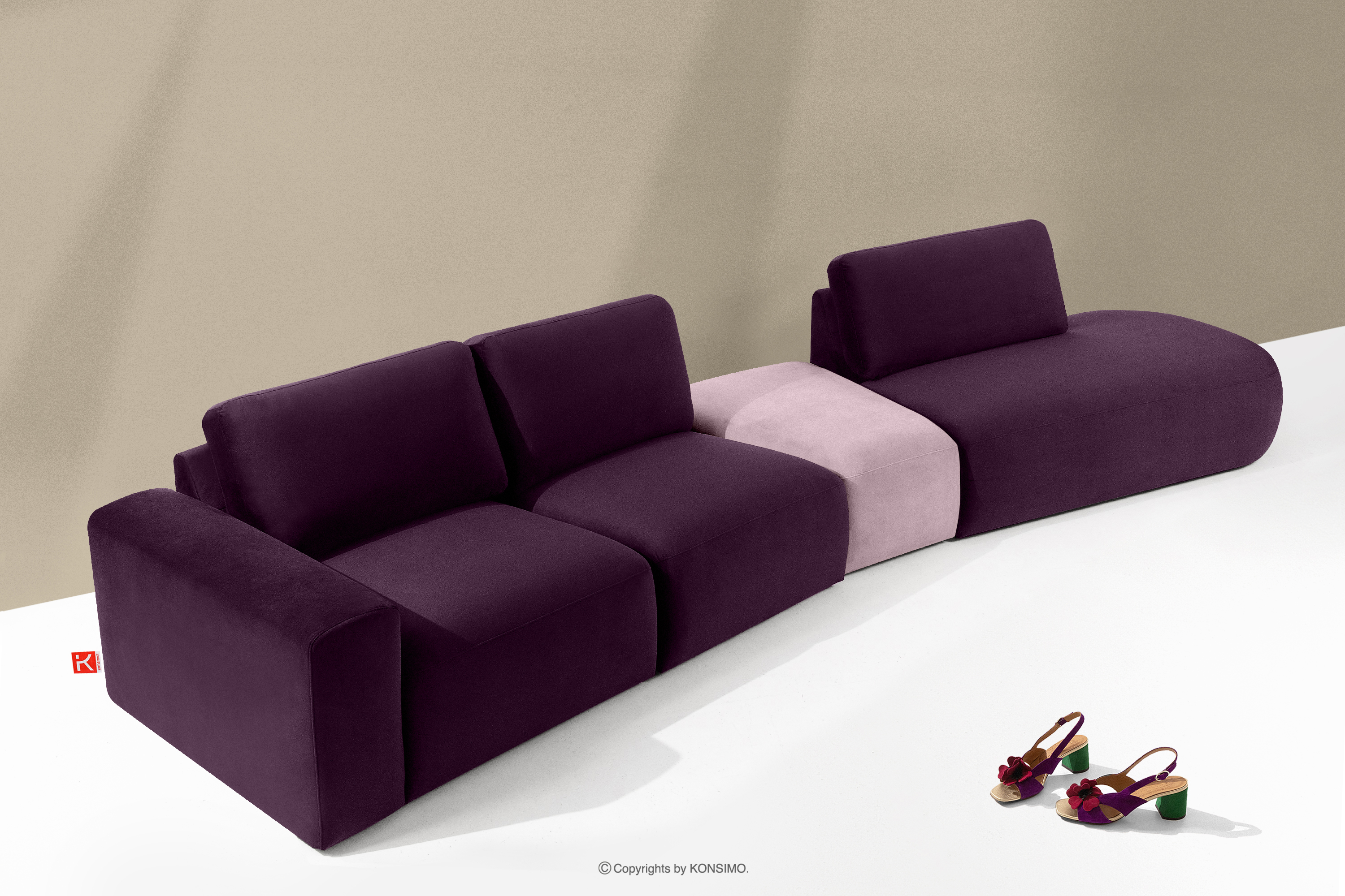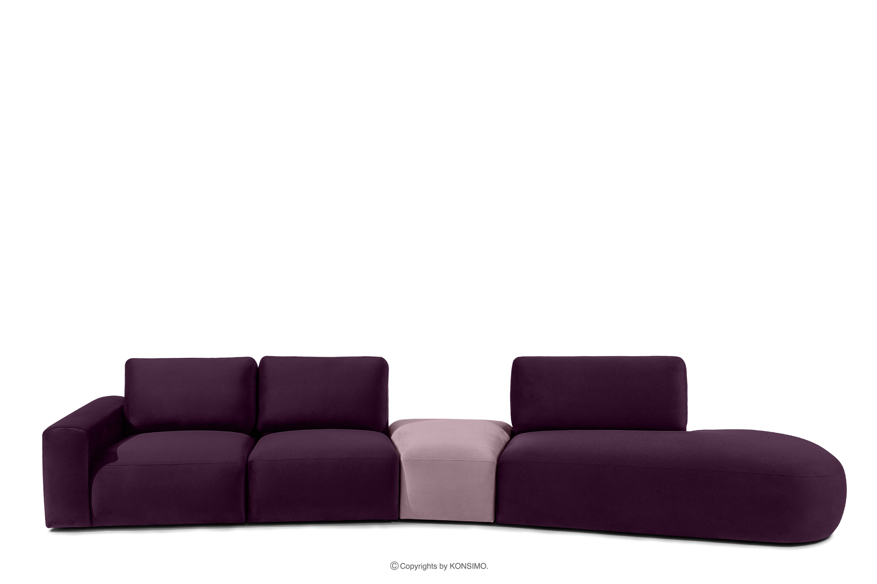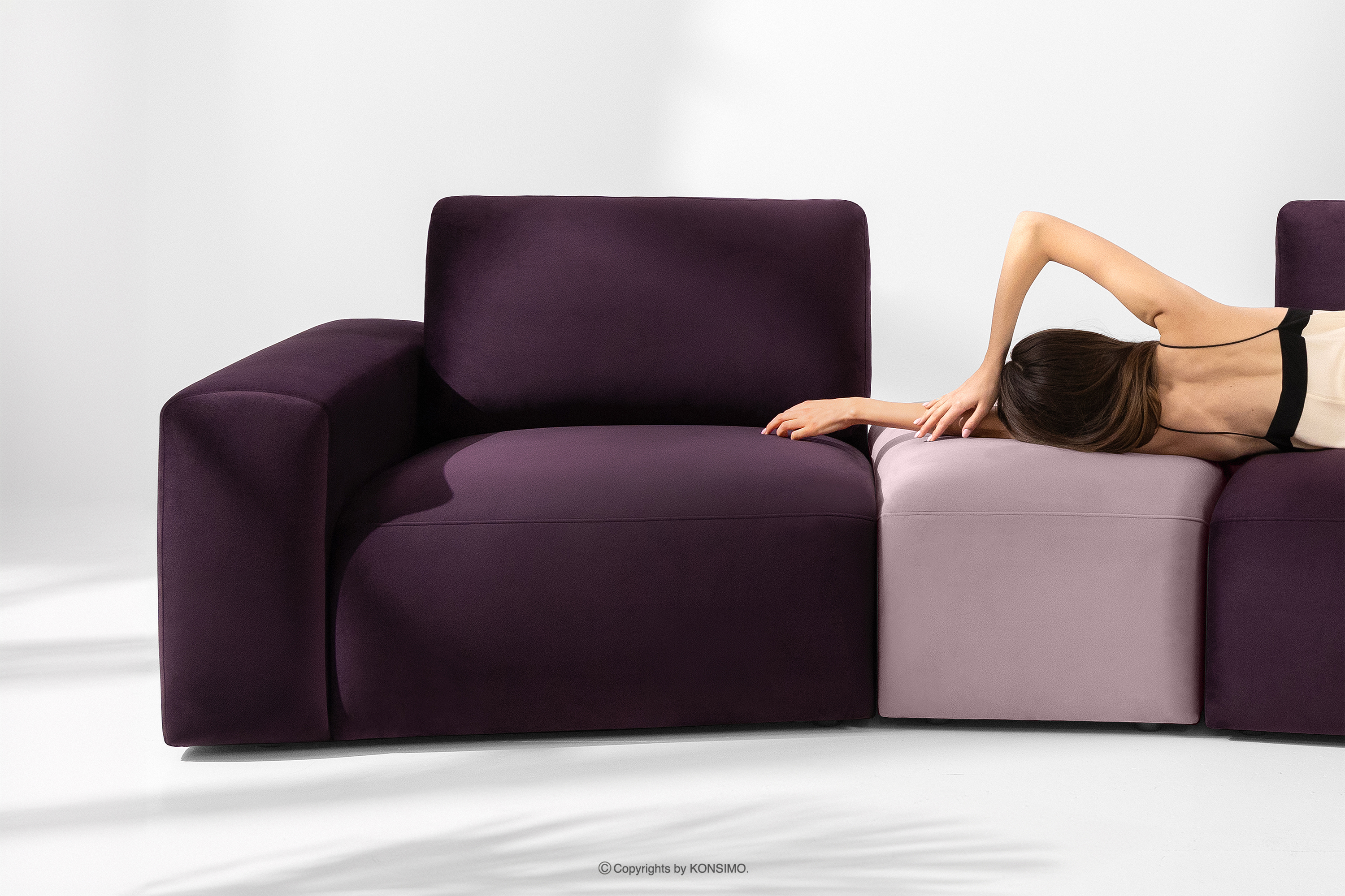 Organická rohová pohovka do obývačky vo fialovo-ružovej velúrovej látke vpravo je synonymom moderného pohodlia a elegancie. Je vyrobená z najkvalitnejších materiálov a jej modulárnosť zaručuje slobodu používania v závislosti od vašich potrieb. Rohová pohovka je čalúnená velúrovou látkou, ktorá jej dodáva luxusný vzhľad a zároveň sa ľahko udržiava v čistote. Moderný štýl, v ktorom je rohová pohovka ZUCCO navrhnutá, dokonale zapadá do súčasných trendov interiérového dizajnu.