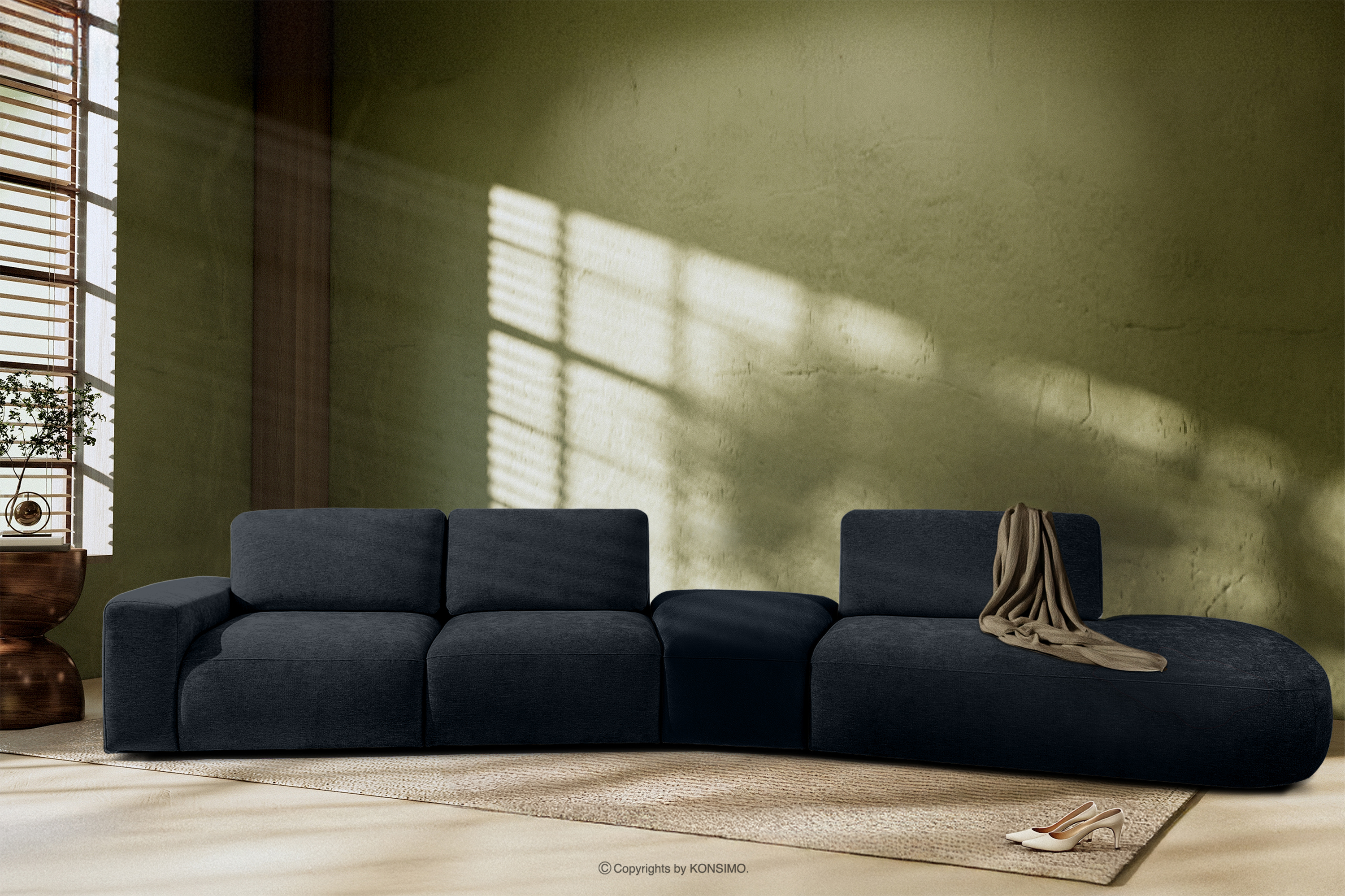 ZUCCO Objav celú kolekciu Organický roh na sedenie v šenilovej/velúrovej látke tmavomodrej farby vpravo- farba námornícka modrá