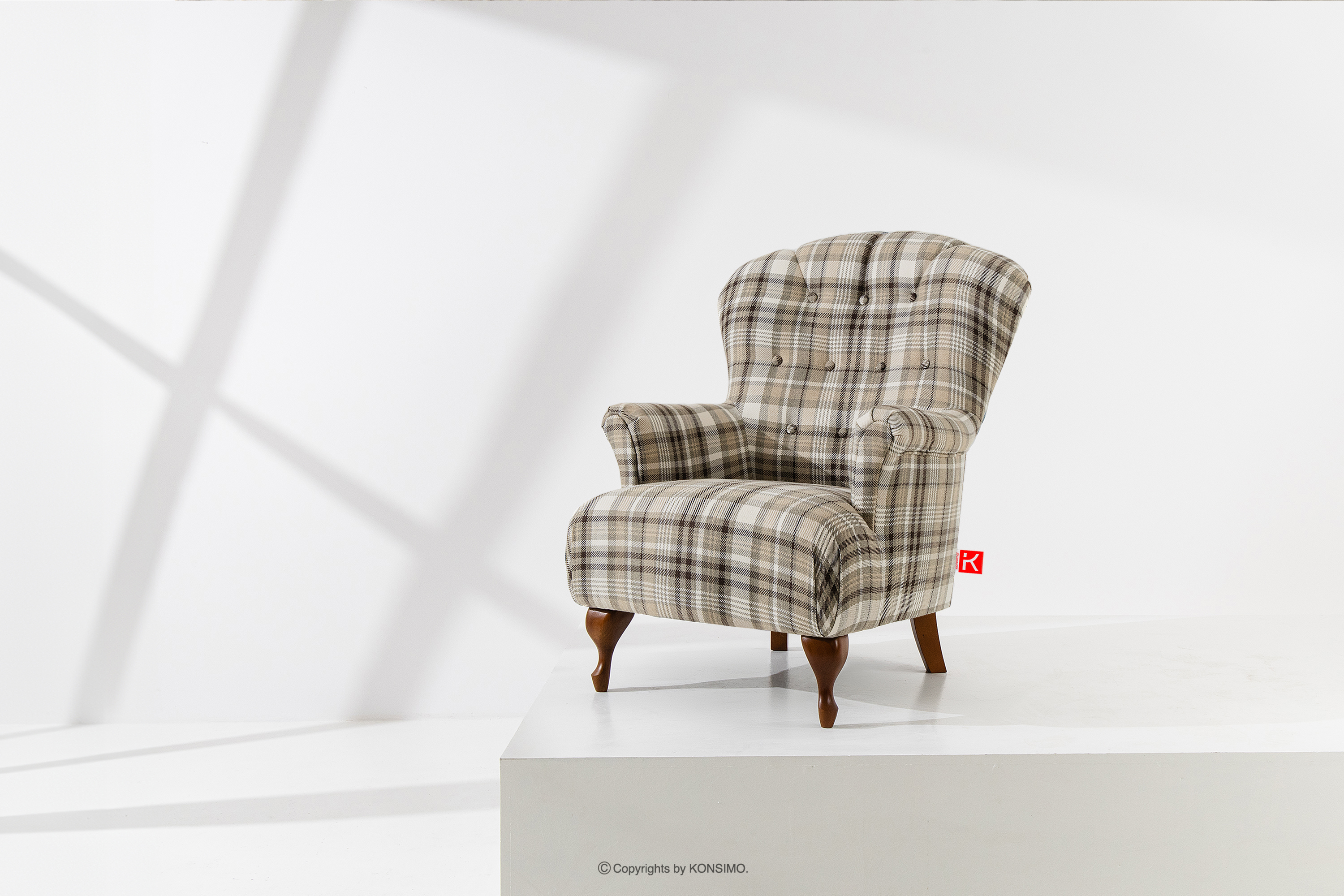 TOMIS Objav celú kolekciu Klasické kockované kreslo do obývačky z tkanej látky- farba hnedá/béžová