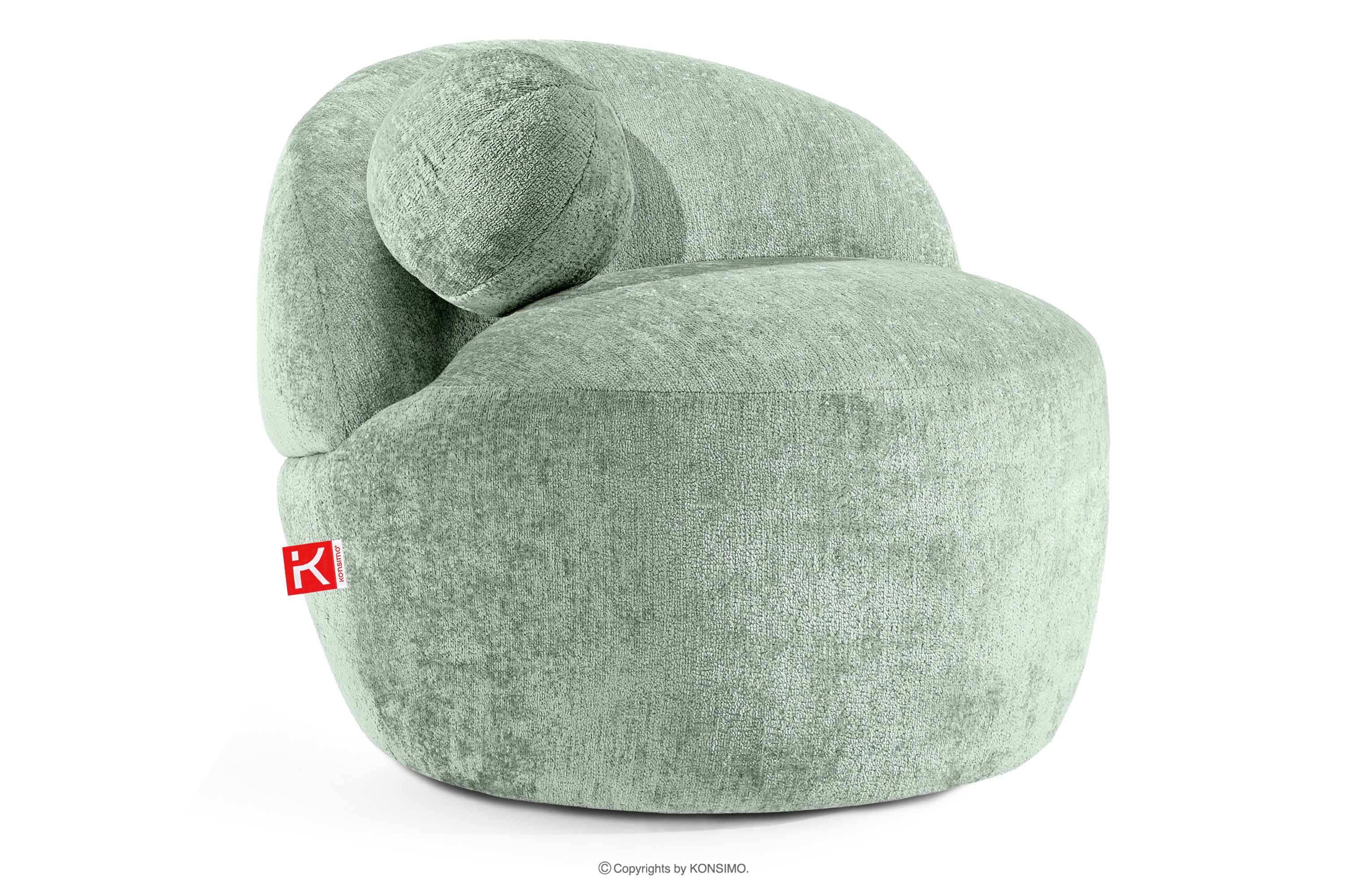 NELUM Objav celú kolekciu Okrúhle kreslo v modernom štýle v mätovej šenilovej látke- farba mätová