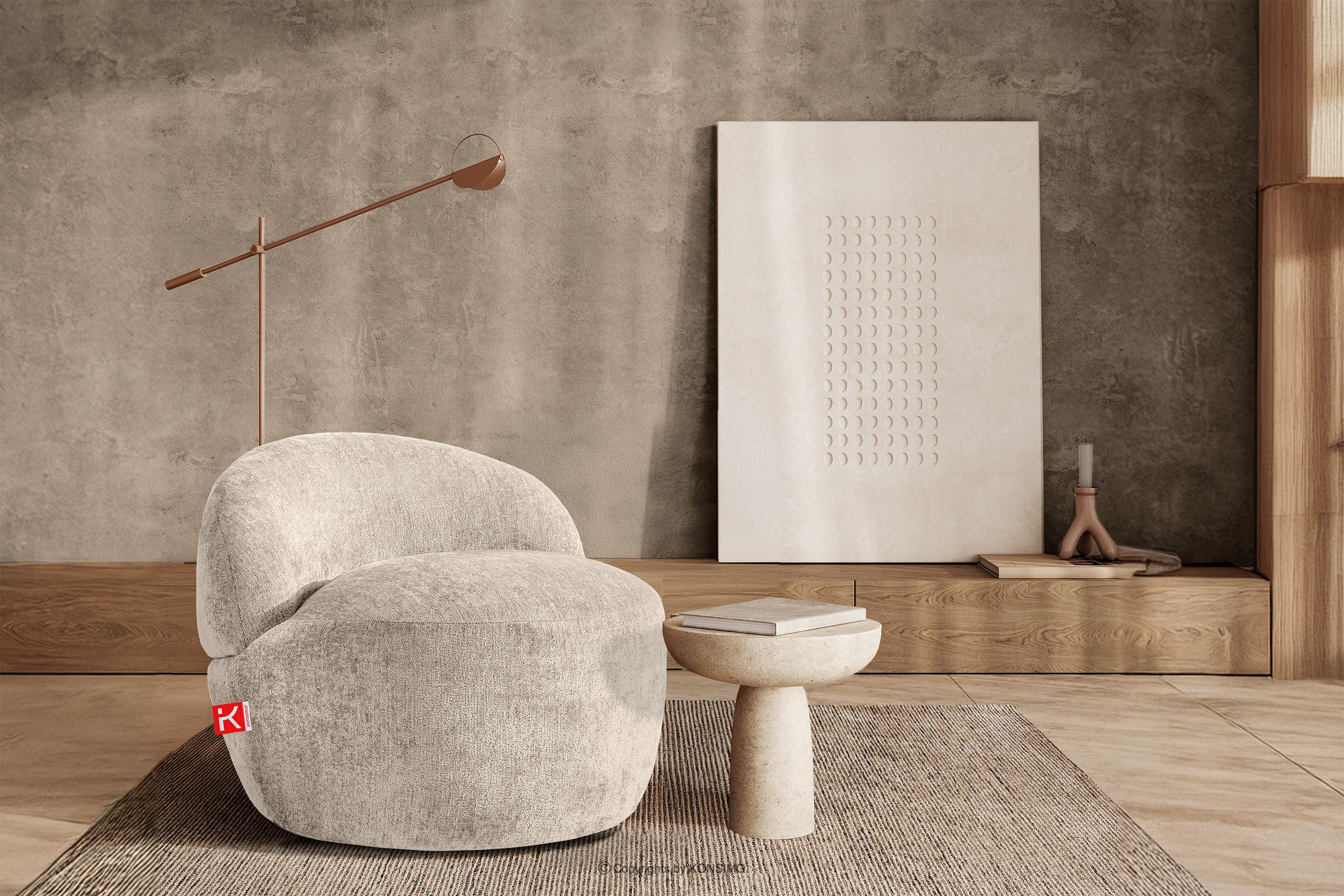 NELUM Objav celú kolekciu Moderné kreslo v látke šenil krémový- farba krémová