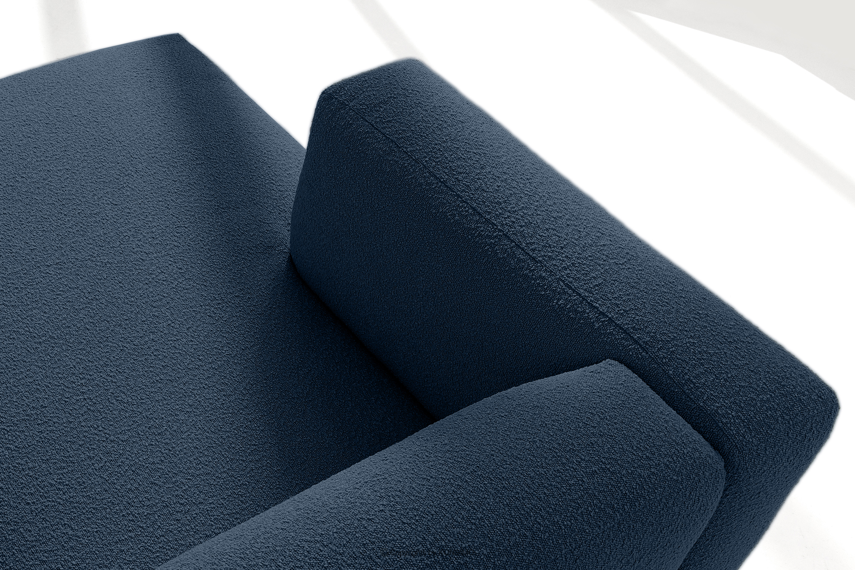 Rohová pohovka v škandinávskom štýle boucle left navy blue na vysokých nožičkách je ideálnou ponukou pre tých, ktorí hľadajú kompaktný kus nábytku, ktorý naplno využije priestor bez toho, aby zahltil interiér. Je určená do malých obývacích izieb, garsóniek alebo jednoizbových bytov a ponúka pohodlné miesto na odpočinok pri zachovaní elegancie a jednoduchosti škandinávskeho štýlu.