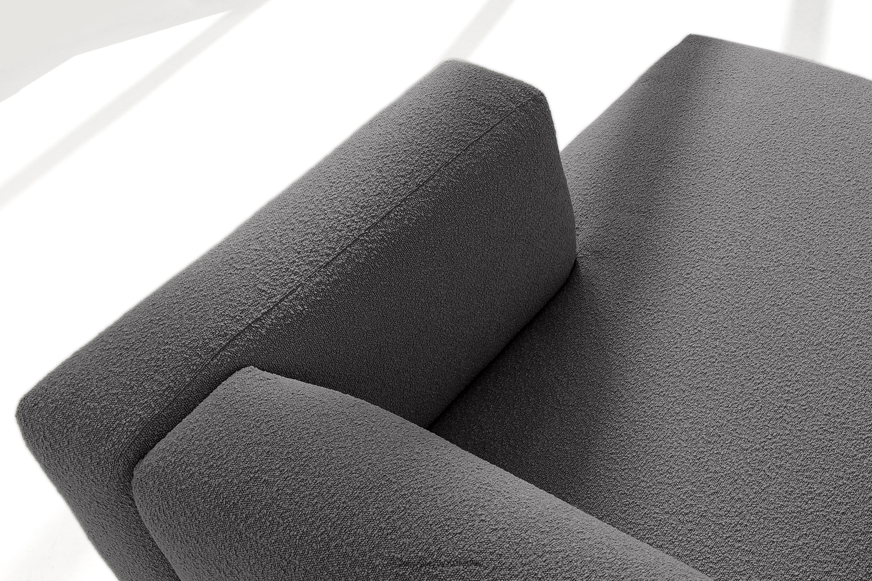 Rohová pohovka v škandinávskom štýle boucle right tmavosivej farby na vysokých nožičkách je ideálnou ponukou pre tých, ktorí hľadajú kompaktný kus nábytku, ktorý naplno využije priestor bez toho, aby zahltil interiér. Je určená do malých obývacích izieb, garsóniek alebo jednoizbových bytov a ponúka pohodlné miesto na odpočinok pri zachovaní elegancie a jednoduchosti škandinávskeho štýlu.