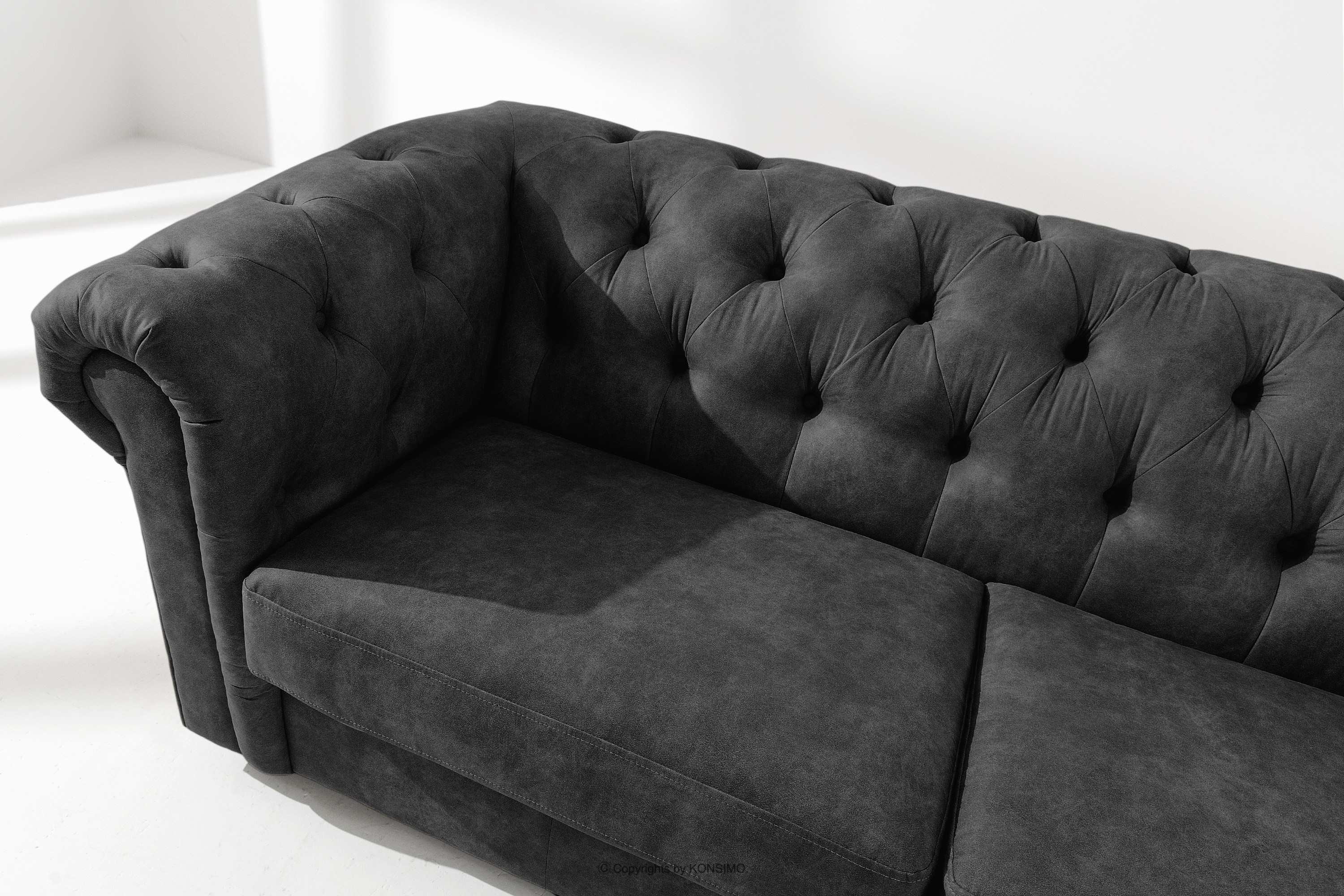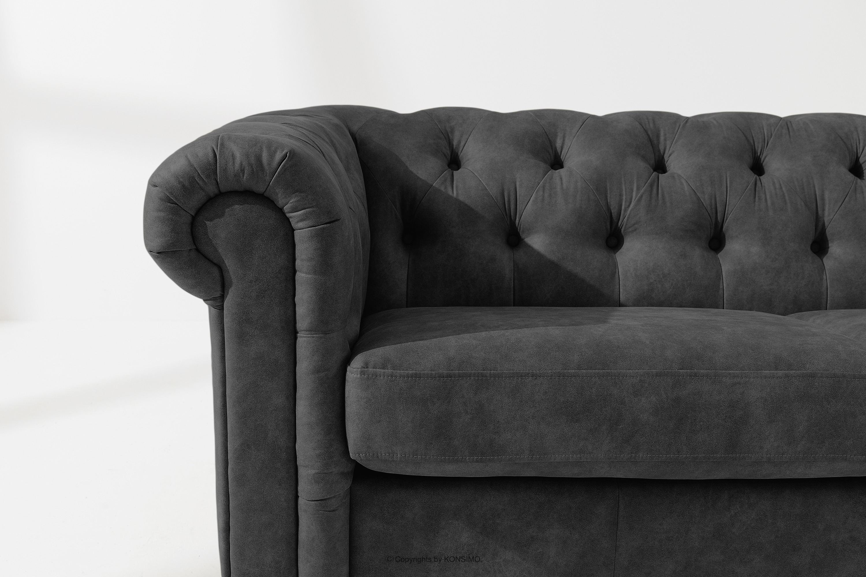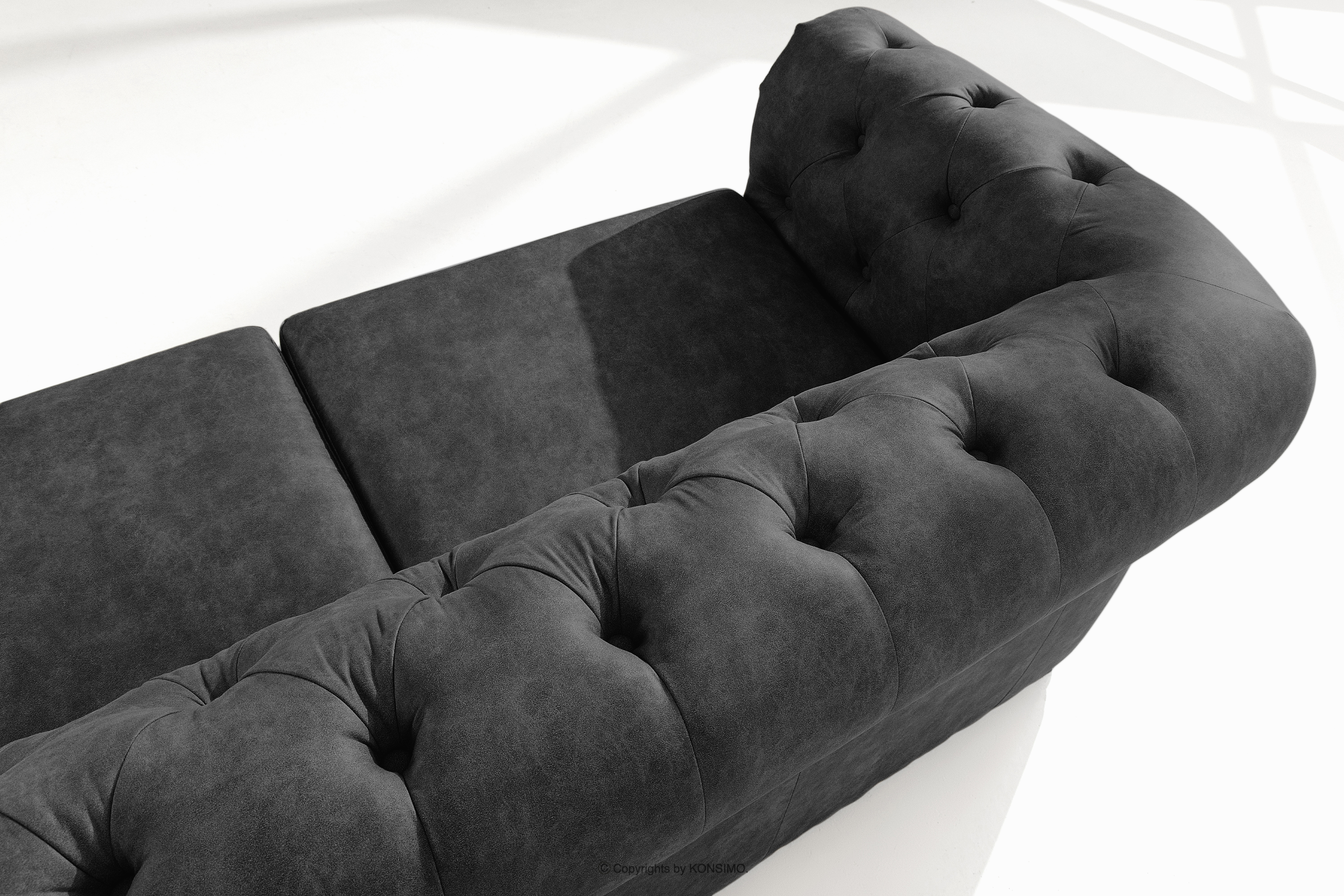 Klasická pohovka chesterfield v antracitovej ekokoži je kombináciou klasickej elegancie a moderného pohodlia, ktoré dokonale ladia s estetikou luxusných interiérov. Ich výrazný dizajn chesterfield, sa vyznačuje mimoriadnym zmyslom pre štýl a funkčnosť. Prešívanie, ktoré zdobí operadlá, nielenže zdôrazňuje elegantný vzhľad nábytku, ale má aj dôležitú praktickú funkciu - zabraňuje rozťahovaniu látky a zabezpečuje jej dlhodobú odolnosť.