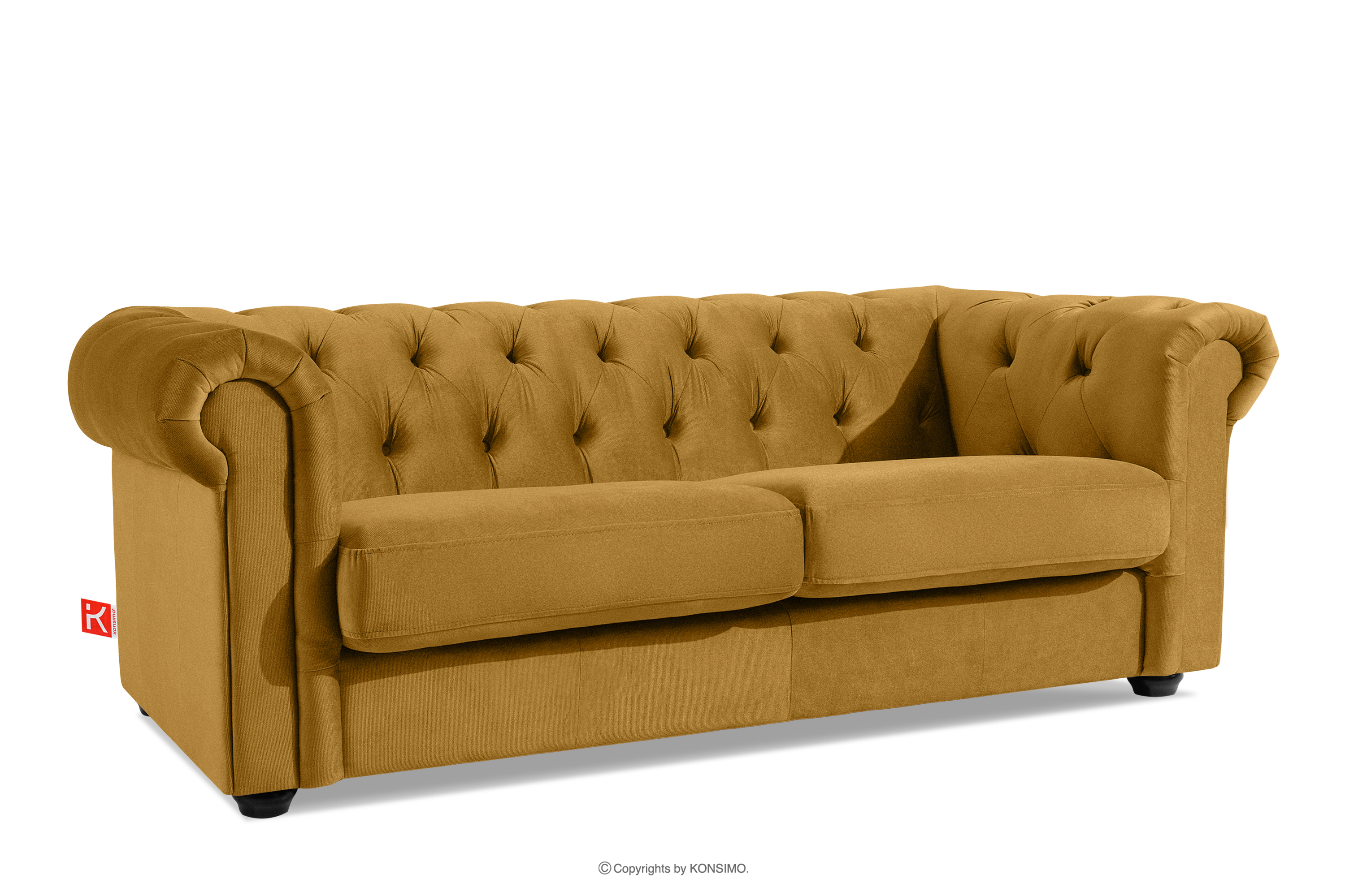 GRAVO Objav celú kolekciu Trojmiestna pohovka chesterfield vo velúrovej žltej farbe- farba žltá