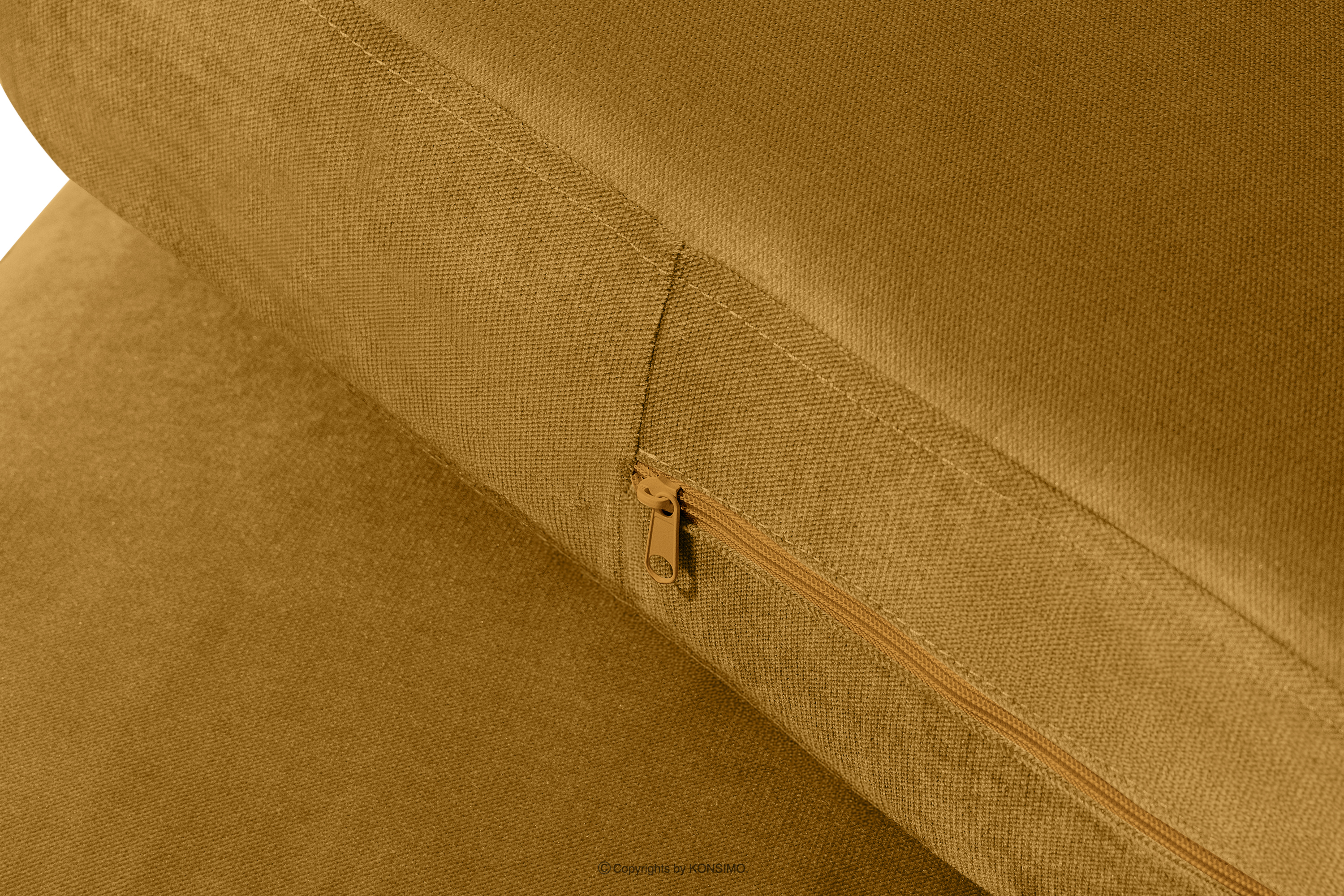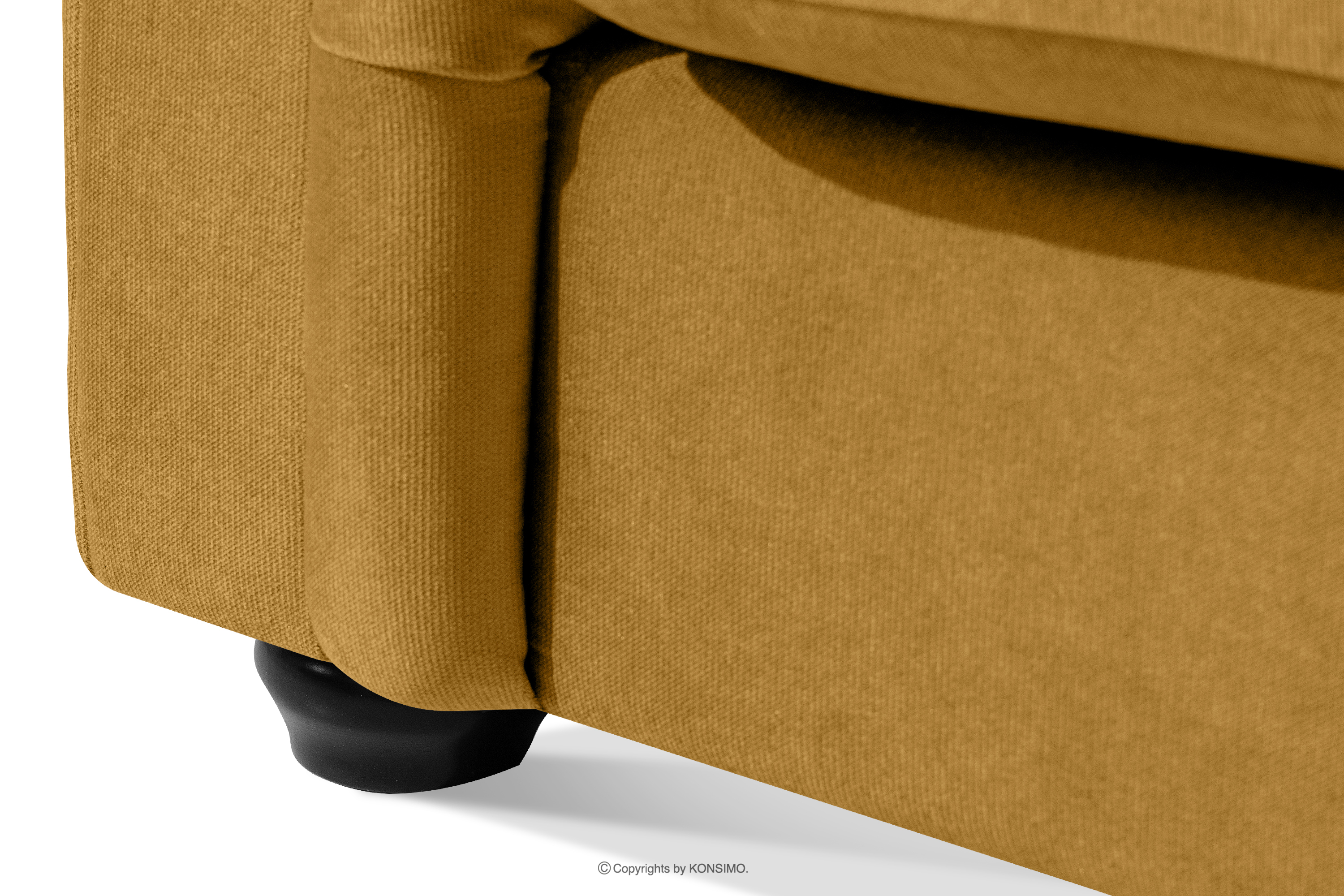 Trojmiestna pohovka chesterfield v žltom velúre je kombináciou klasickej elegancie a moderného pohodlia, ktoré dokonale ladia s estetikou luxusných interiérov. Ich výrazný dizajn chesterfield, sa vyznačuje mimoriadnym zmyslom pre štýl a funkčnosť. Prešívanie, ktoré zdobí operadlá, nielenže zdôrazňuje elegantný vzhľad nábytku, ale má aj dôležitú praktickú funkciu - zabraňuje rozťahovaniu látky a zabezpečuje jej dlhodobú odolnosť.