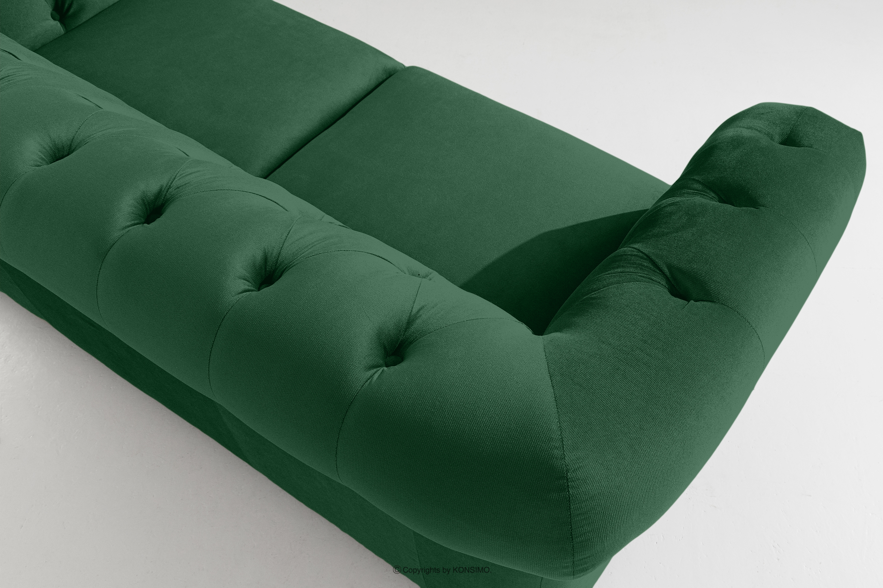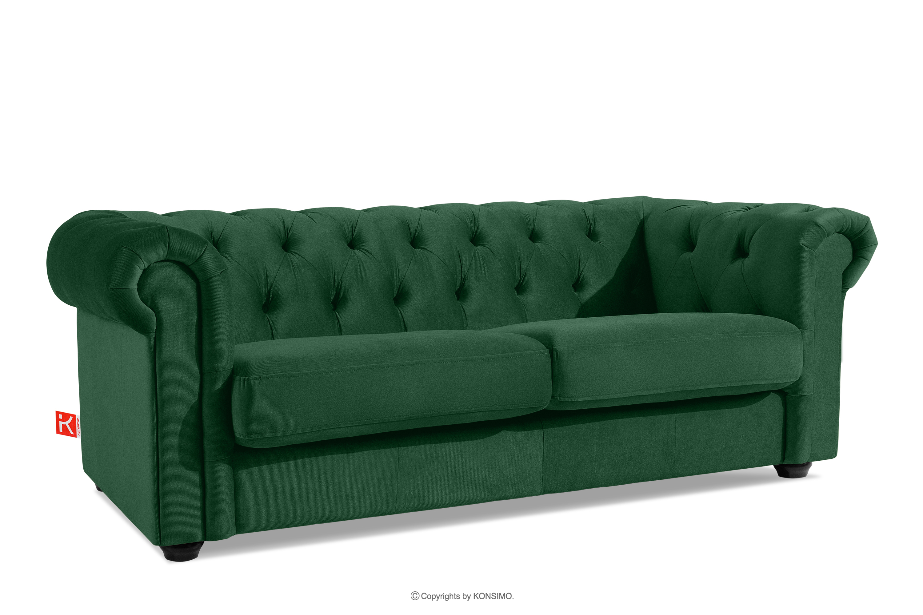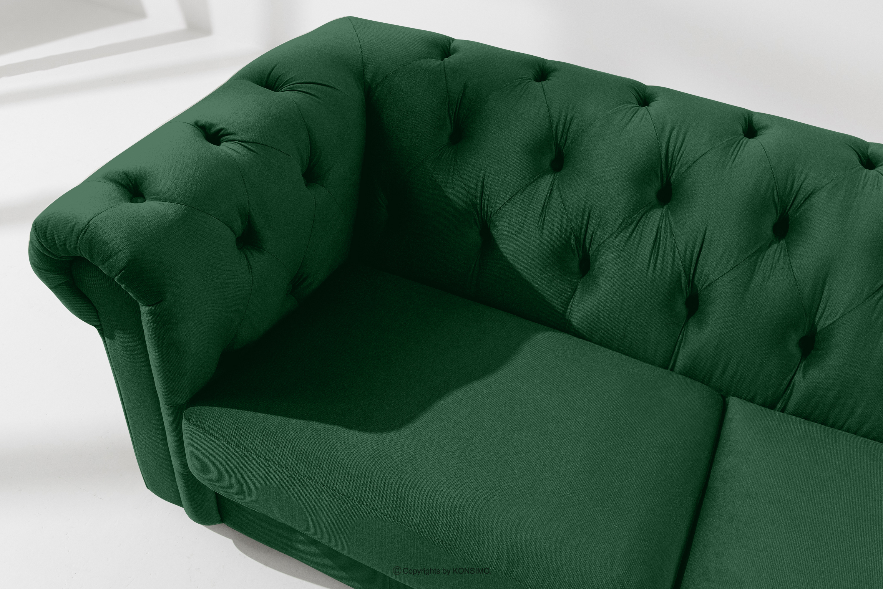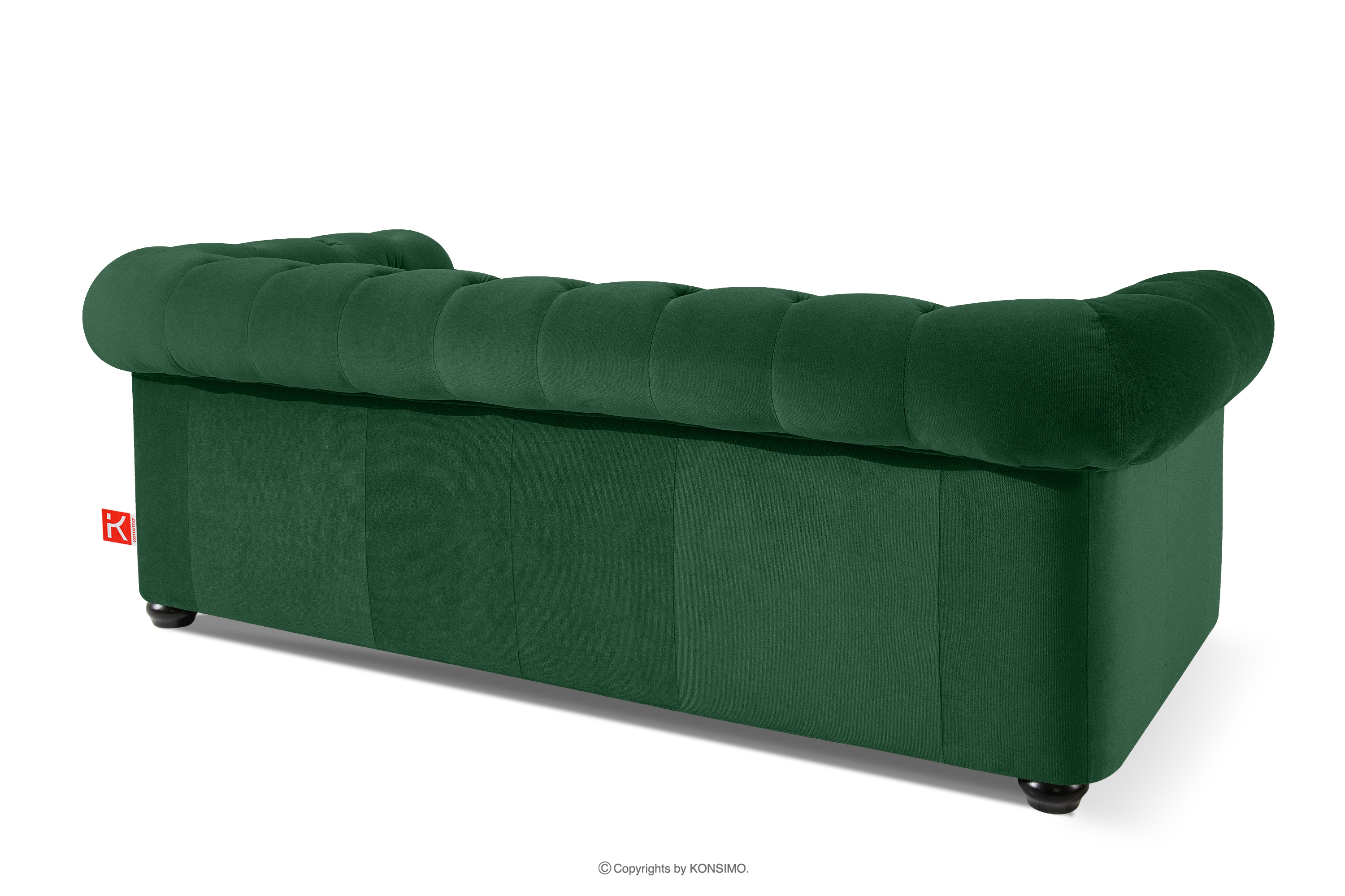 GRAVO Klasická trojmiestna pohovka chesterfield zo zamatu tmavozelenej farby