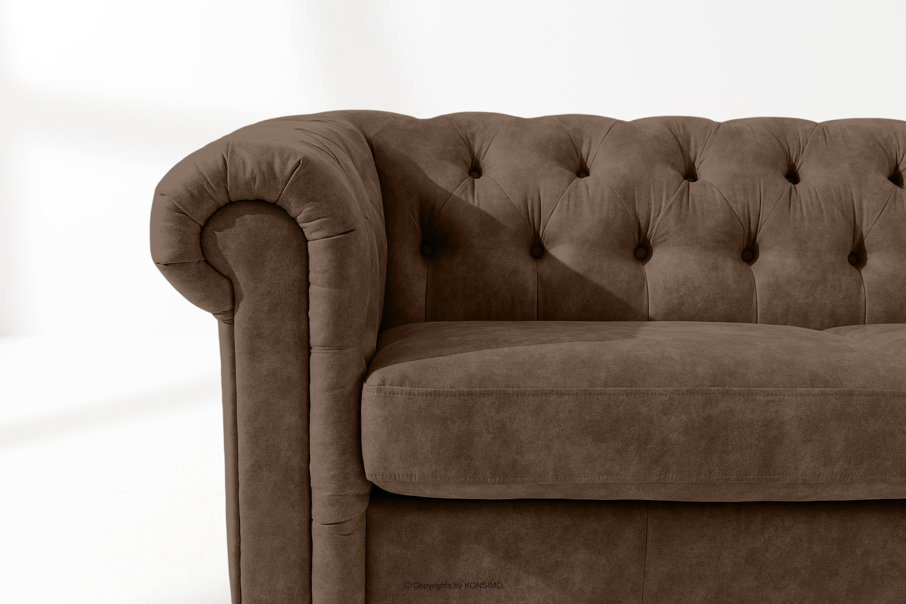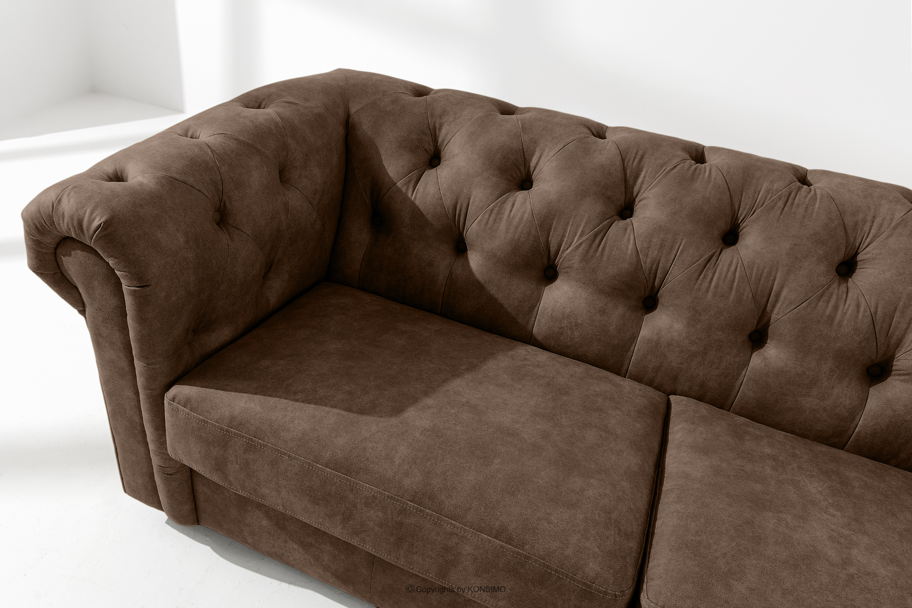 GRAVO Objav celú kolekciu Klasická pohovka chesterfield v ekokoži tmavohnedej farby- farba tmavohnedá