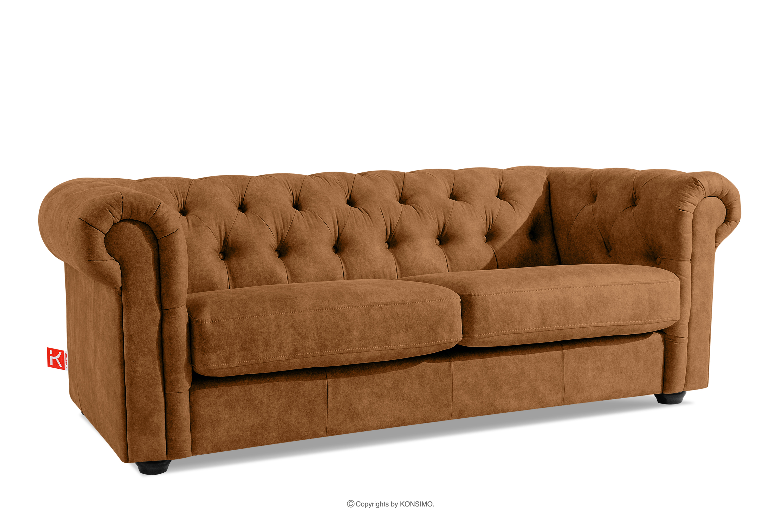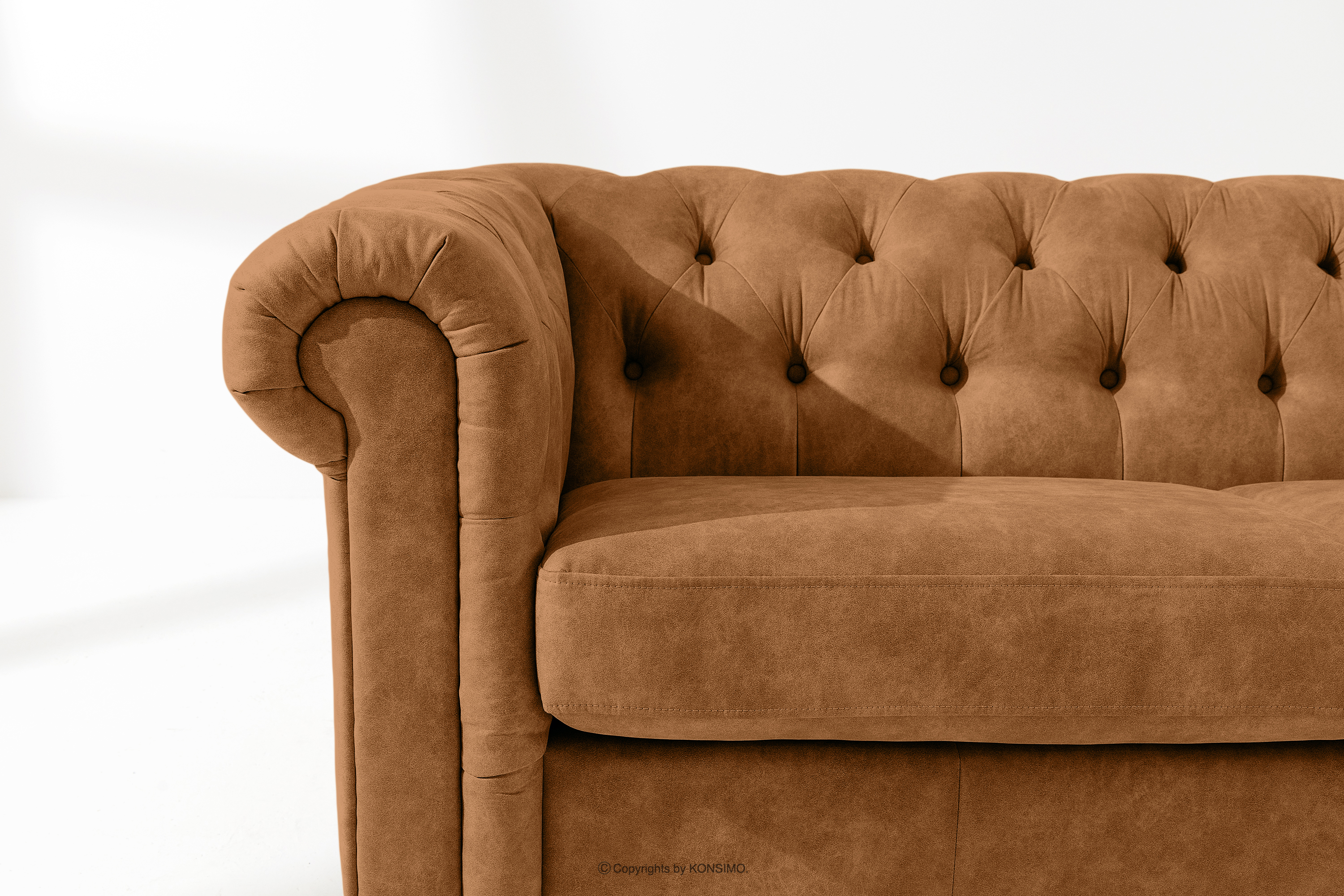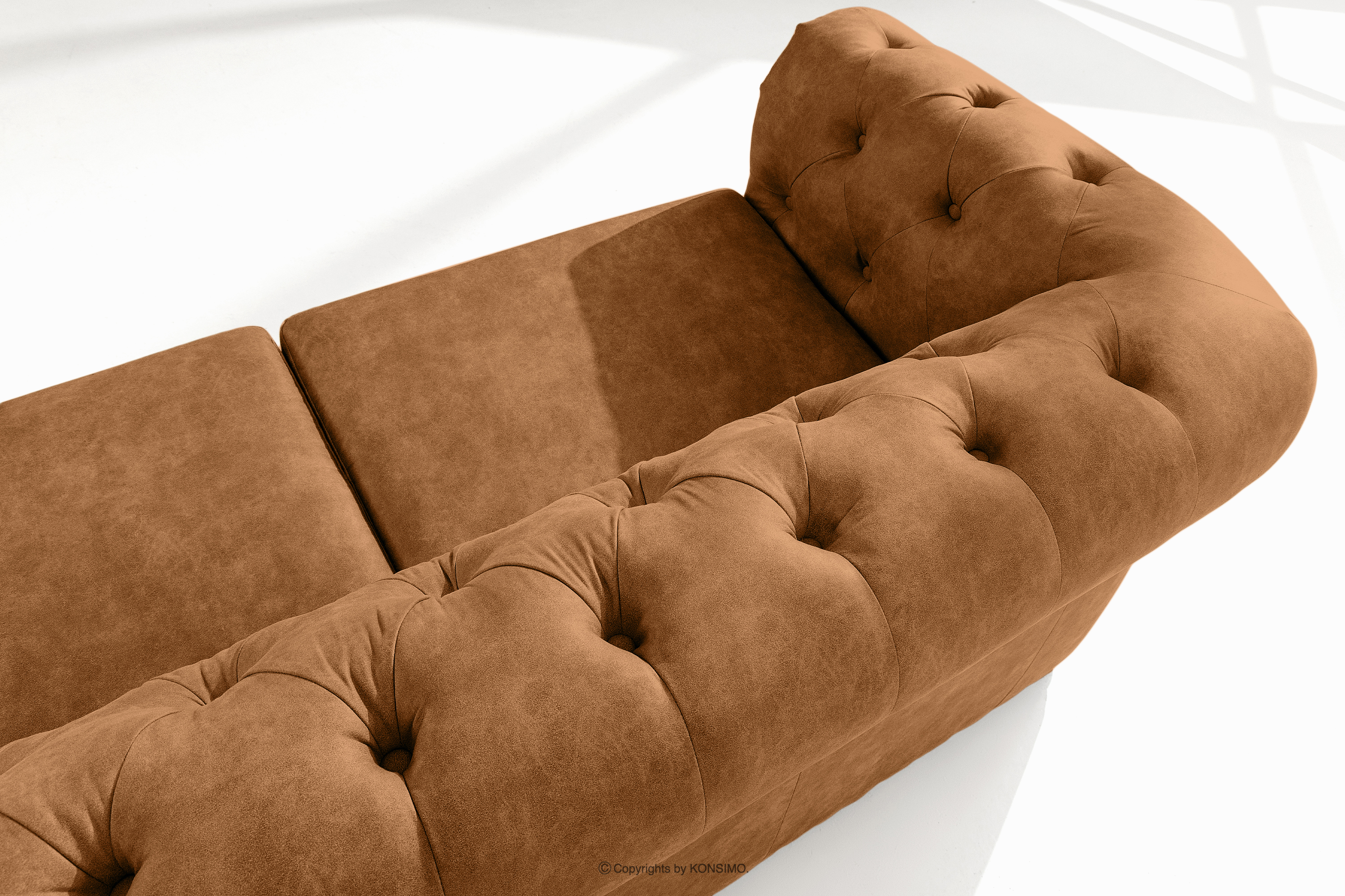 Pohovka chesterfield v ekokoži rudka je kombináciou klasickej elegancie a moderného pohodlia, ktoré dokonale ladia s estetikou luxusných interiérov. Ich výrazný dizajn chesterfield, sa vyznačuje mimoriadnym zmyslom pre štýl a funkčnosť. Prešívanie, ktoré zdobí operadlá, nielenže zdôrazňuje elegantný vzhľad nábytku, ale má aj dôležitú praktickú funkciu - zabraňuje rozťahovaniu látky a zabezpečuje jej dlhodobú odolnosť.
