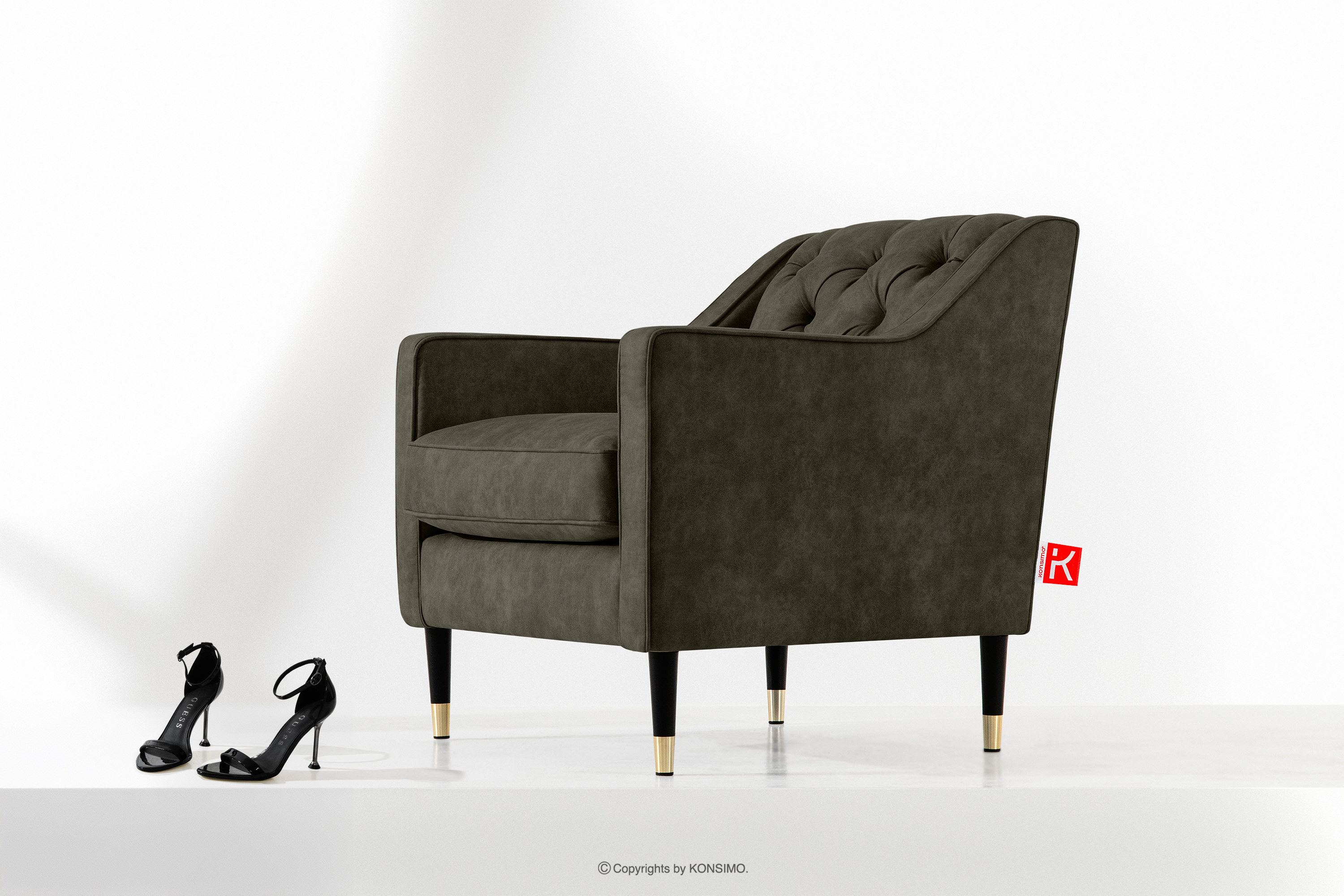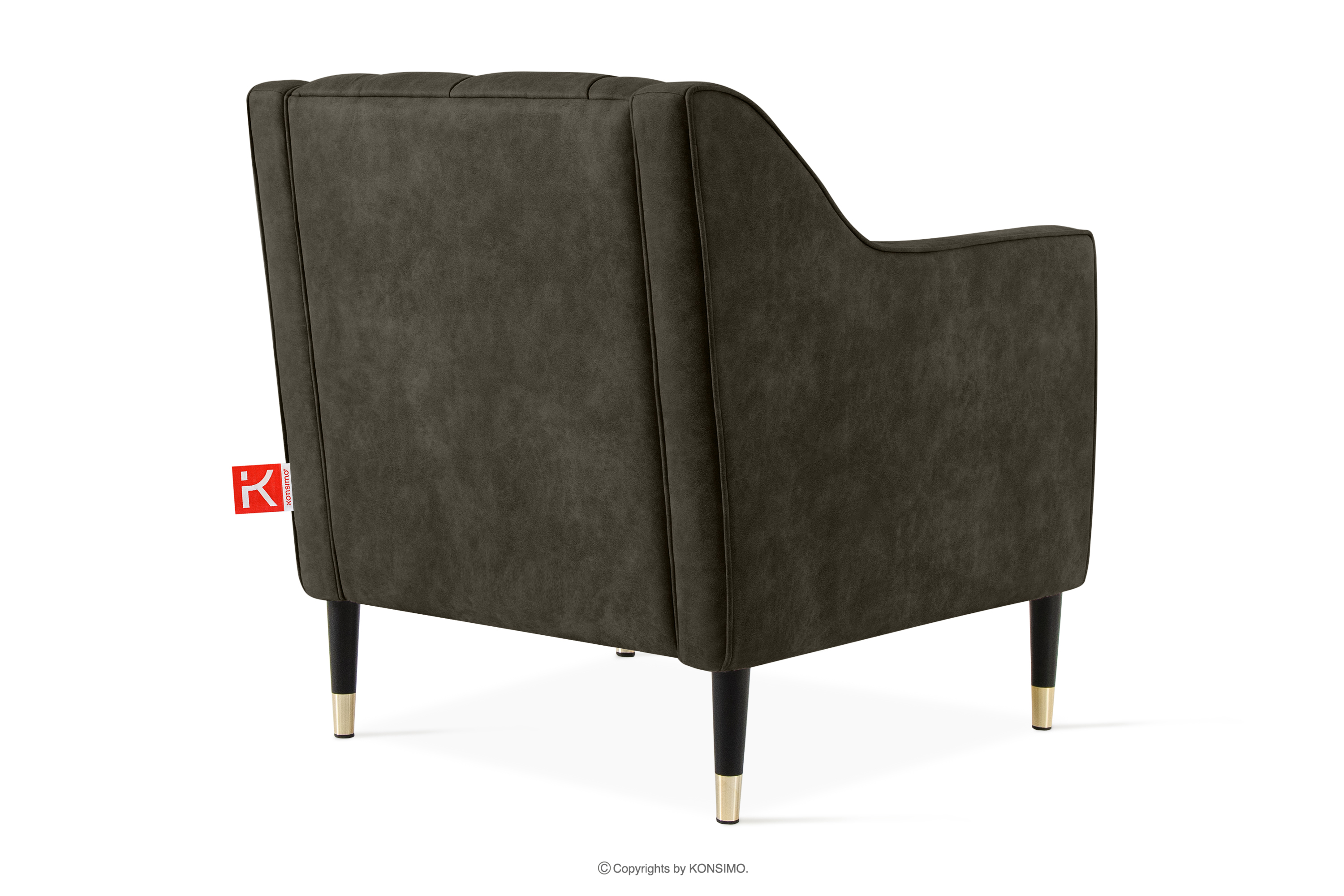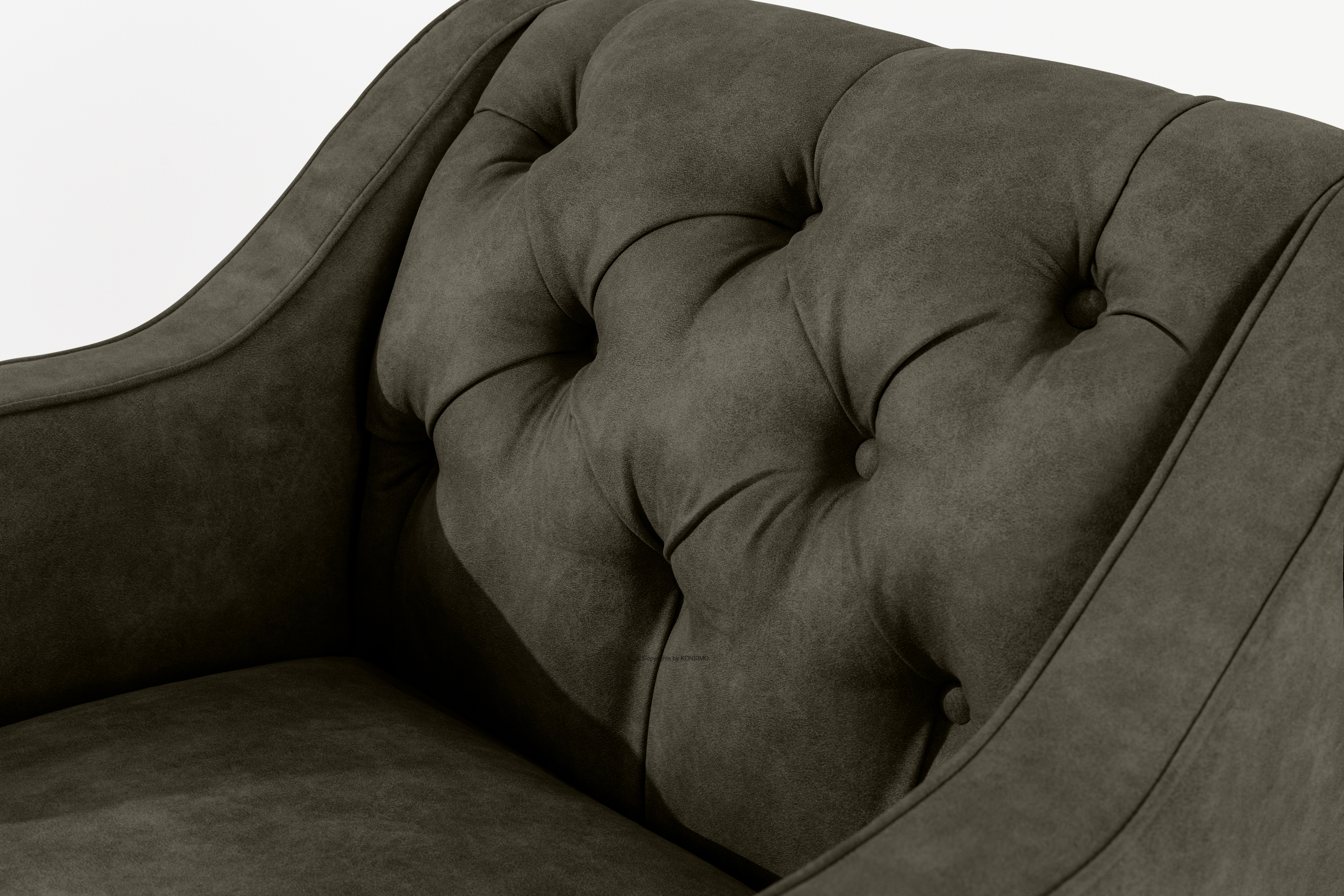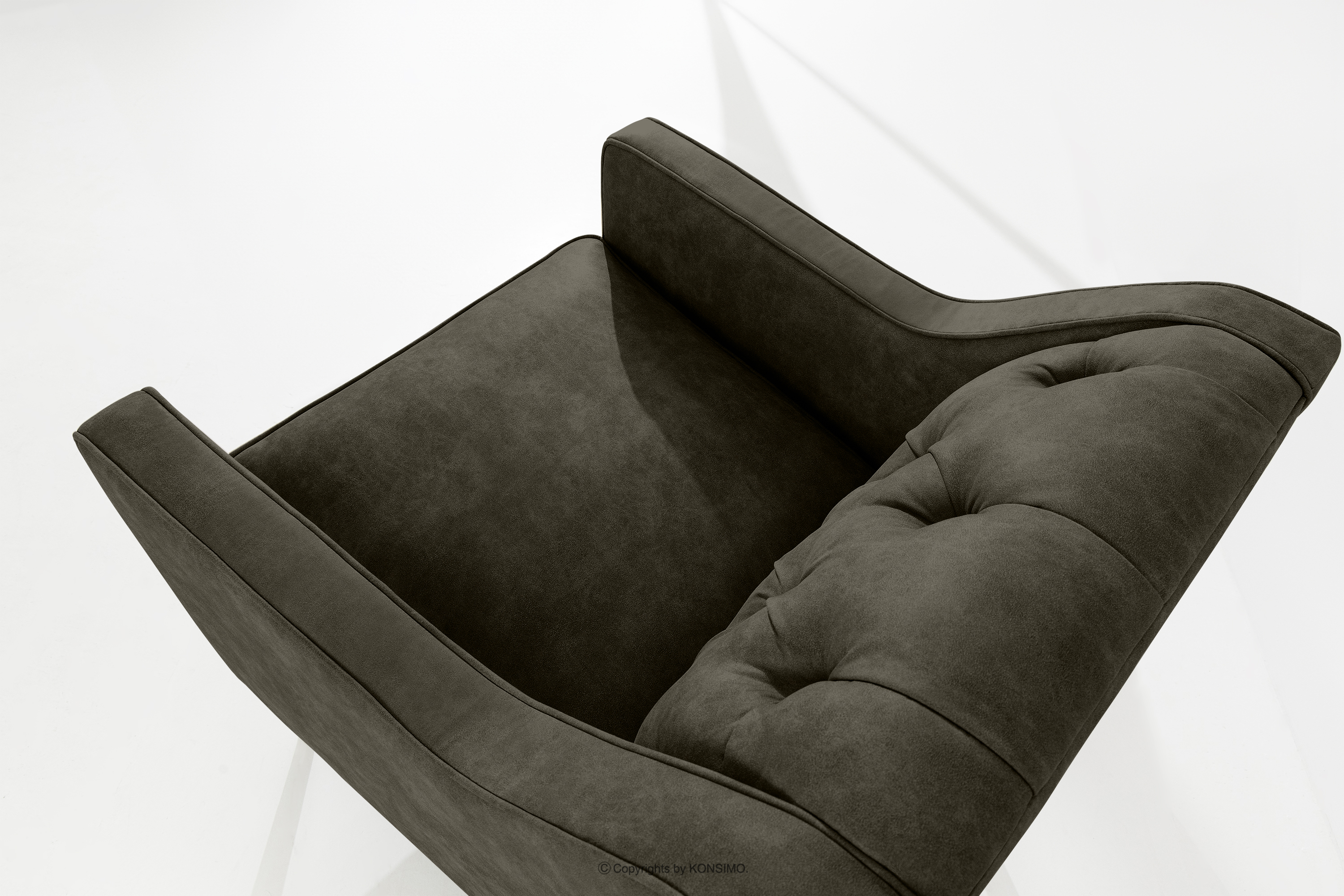 Kreslo v elegantnom štýle v grafitovej ekokoži je jedinečným kusom nábytku, ktorý sa dokonale hodí do štýlu glamour. Jedinečné prešívanie mu dodáva elegantný vzhľad a odlišuje ho od ostatného nábytku. Vďaka čalúneniu z ekokože je kreslo krásne a zároveň sa ľahko udržiava v čistote, čo z neho robí praktické riešenie na každodenné používanie.