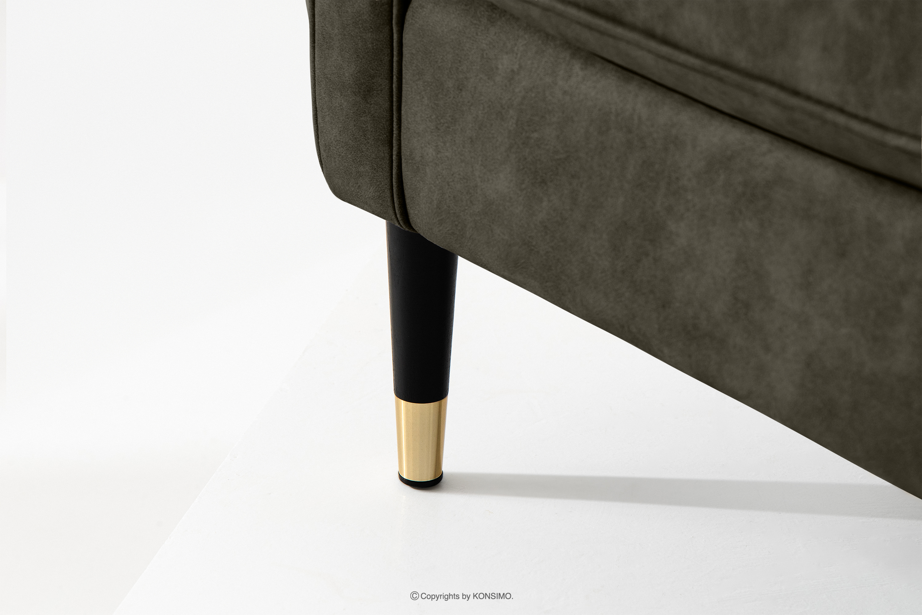 Výborne sa bude vynímať v elegantnej obývačke aj v prestížnej kancelárii či exkluzívnej čakárni. Vysoké nohy z tmavého wenge s jemným zlatým akcentom sú elegantným detailom, ktorý dodáva pohovke ľahkosť a triedu. To však nie je jediná výhoda, pretože uľahčujú aj udržiavanie čistoty pod ňou - vysávanie alebo vytieranie podlahy je oveľa jednoduchšie.