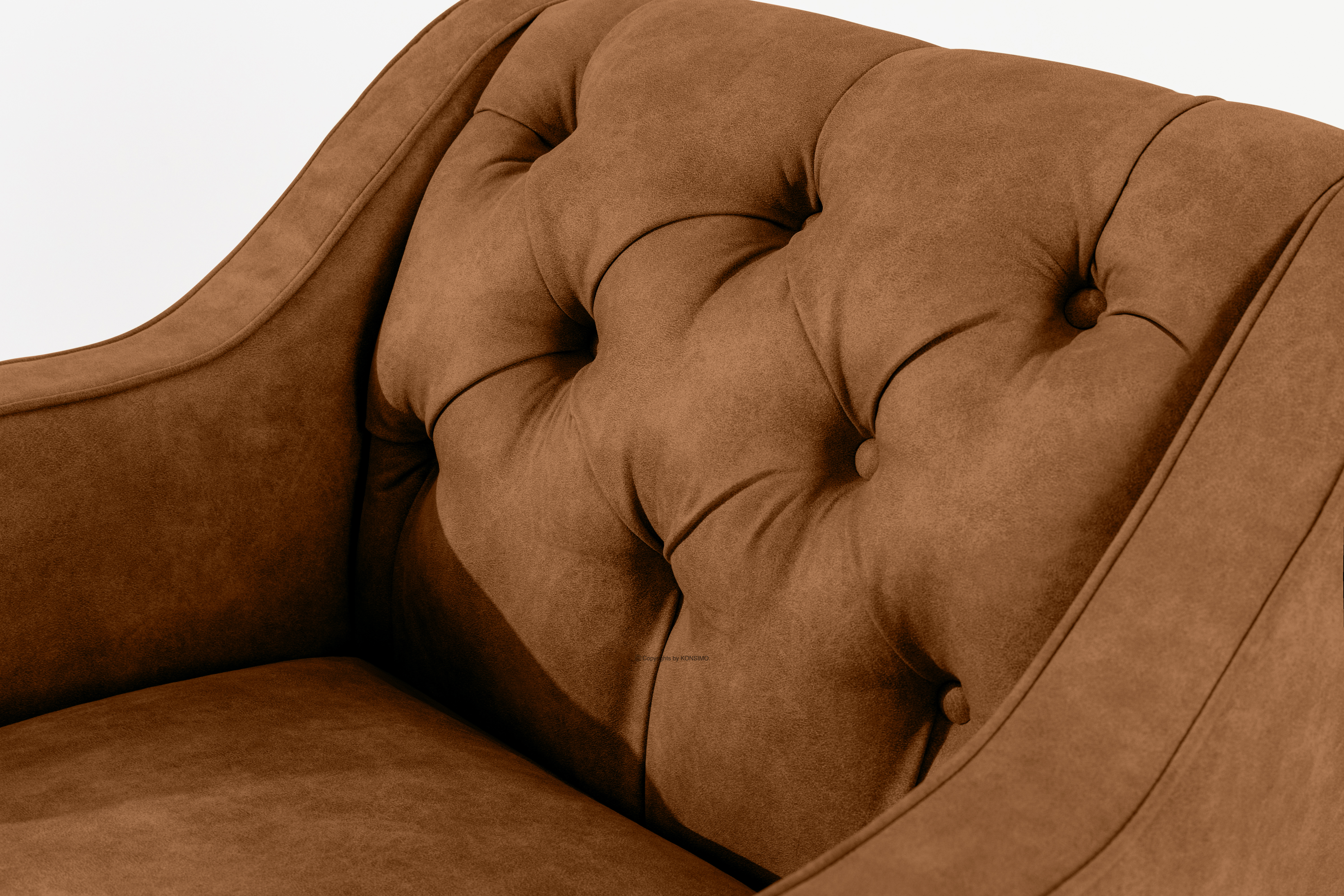 Výborne sa bude vynímať v elegantnej obývačke aj v prestížnej kancelárii či exkluzívnej čakárni. Vysoké nohy z tmavého wenge s jemným zlatým akcentom sú elegantným detailom, ktorý dodáva pohovke ľahkosť a triedu. To však nie je jediná výhoda, pretože uľahčujú aj udržiavanie čistoty pod ňou - vysávanie alebo vytieranie podlahy je oveľa jednoduchšie.