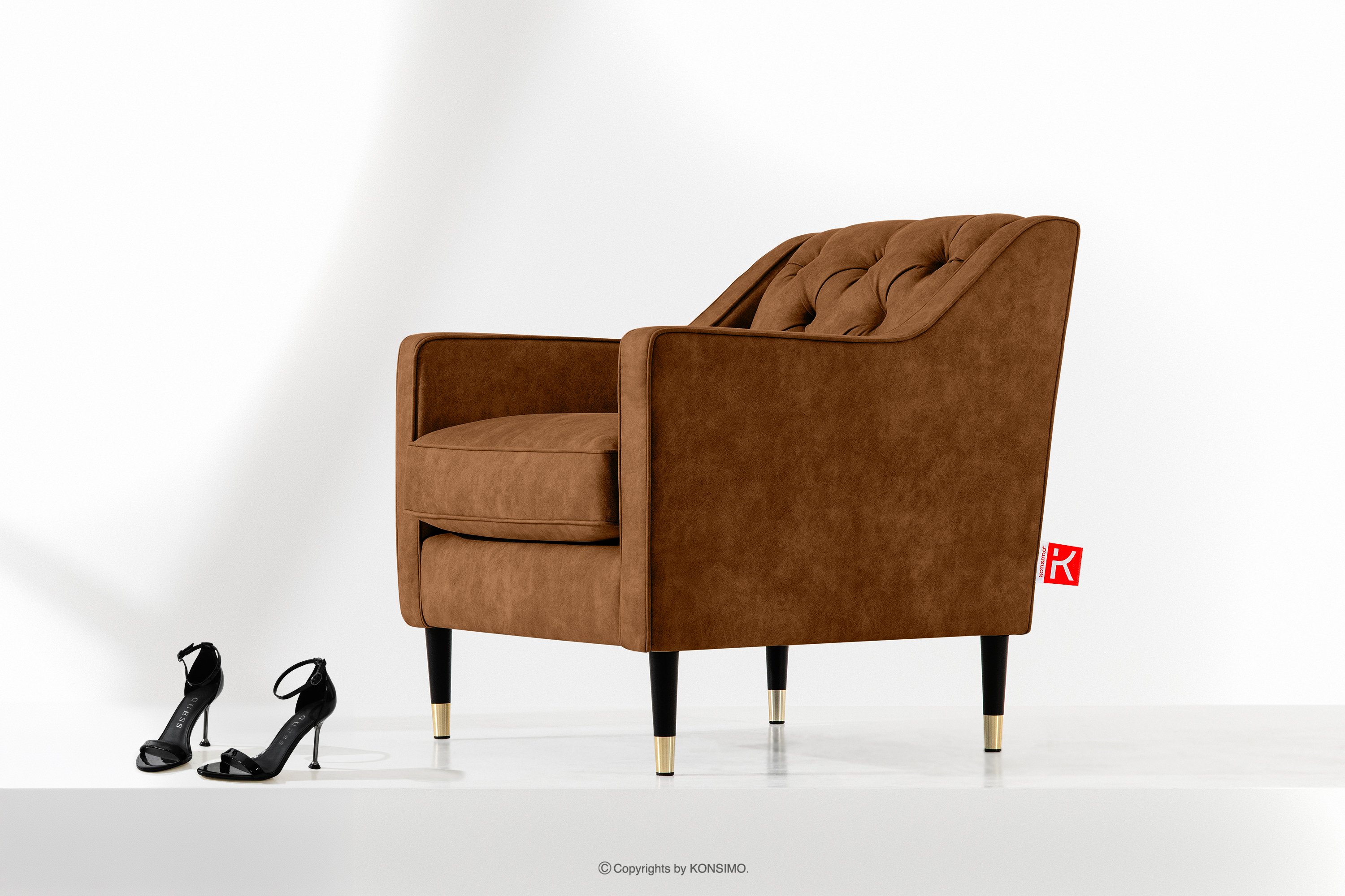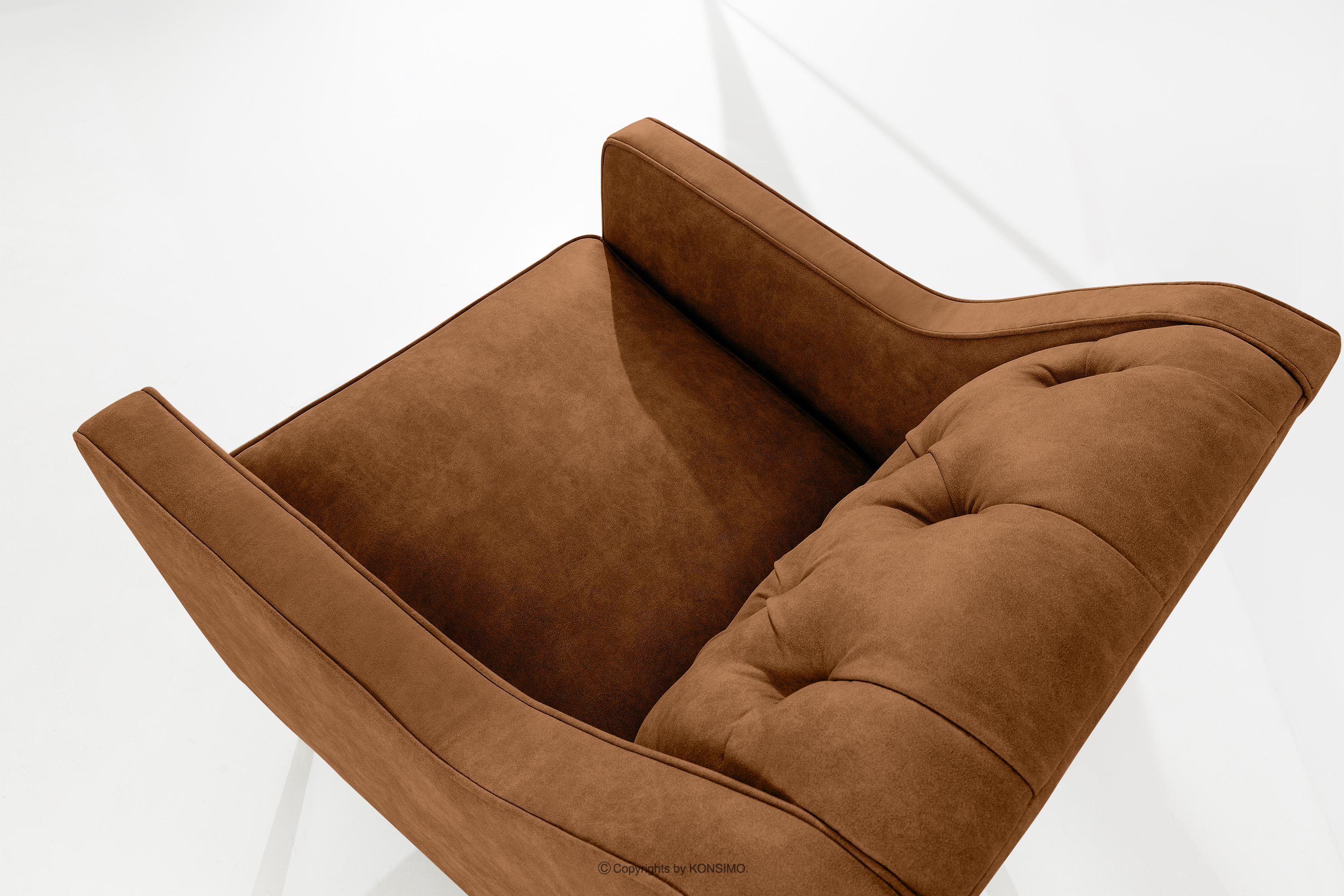 Elegantné štýlové kreslo v ekokoži rudka je jedinečným kusom nábytku, ktorý dokonale zapadá do štýlu glamour. Jedinečné prešívanie mu dodáva elegantný vzhľad a odlišuje ho od ostatného nábytku. Vďaka čalúneniu z ekokože je kreslo krásne a zároveň sa ľahko udržiava v čistote, čo z neho robí praktické riešenie na každodenné používanie.