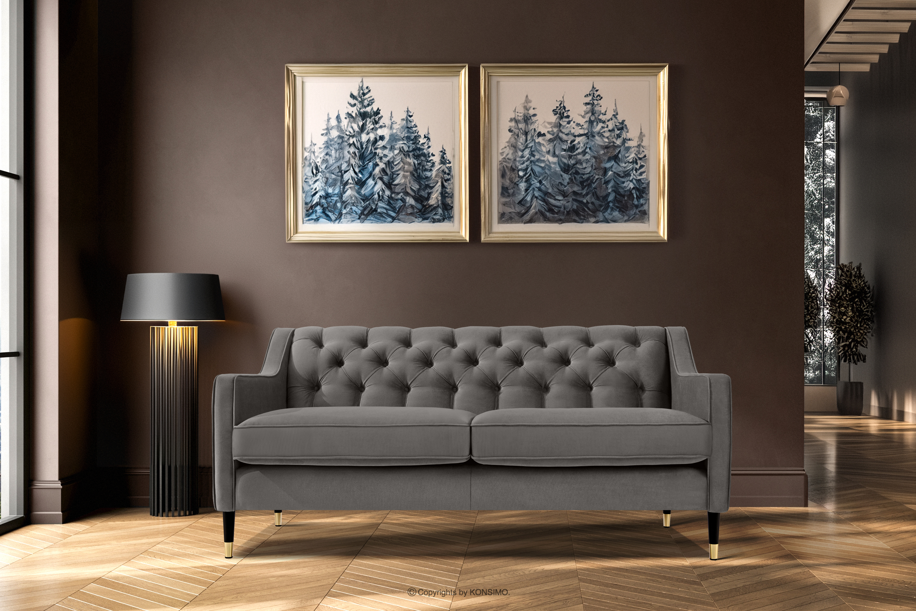 NOMUS Objav celú kolekciu Elegantná dvojmiestna pohovka s prešívaním z velúrovej sivej látky- farba sivá