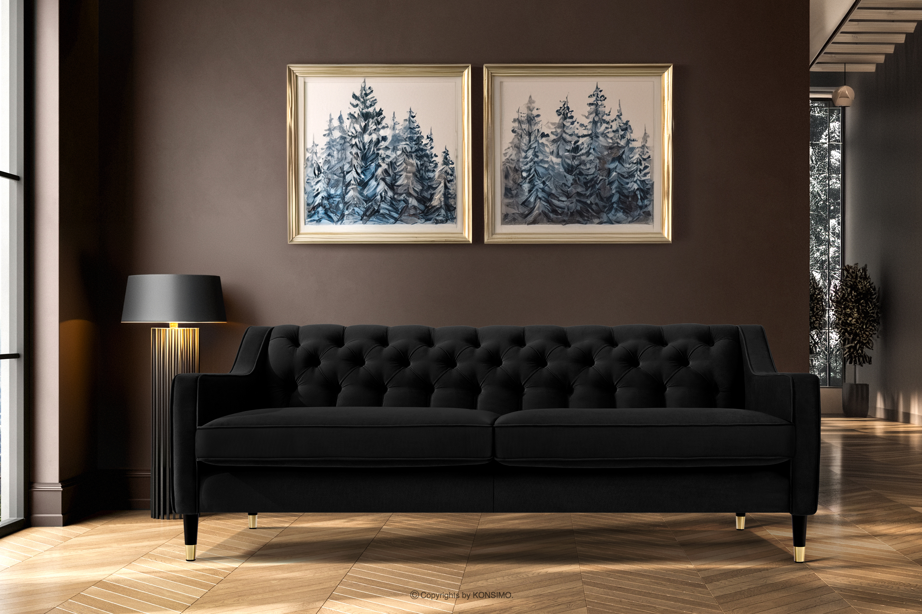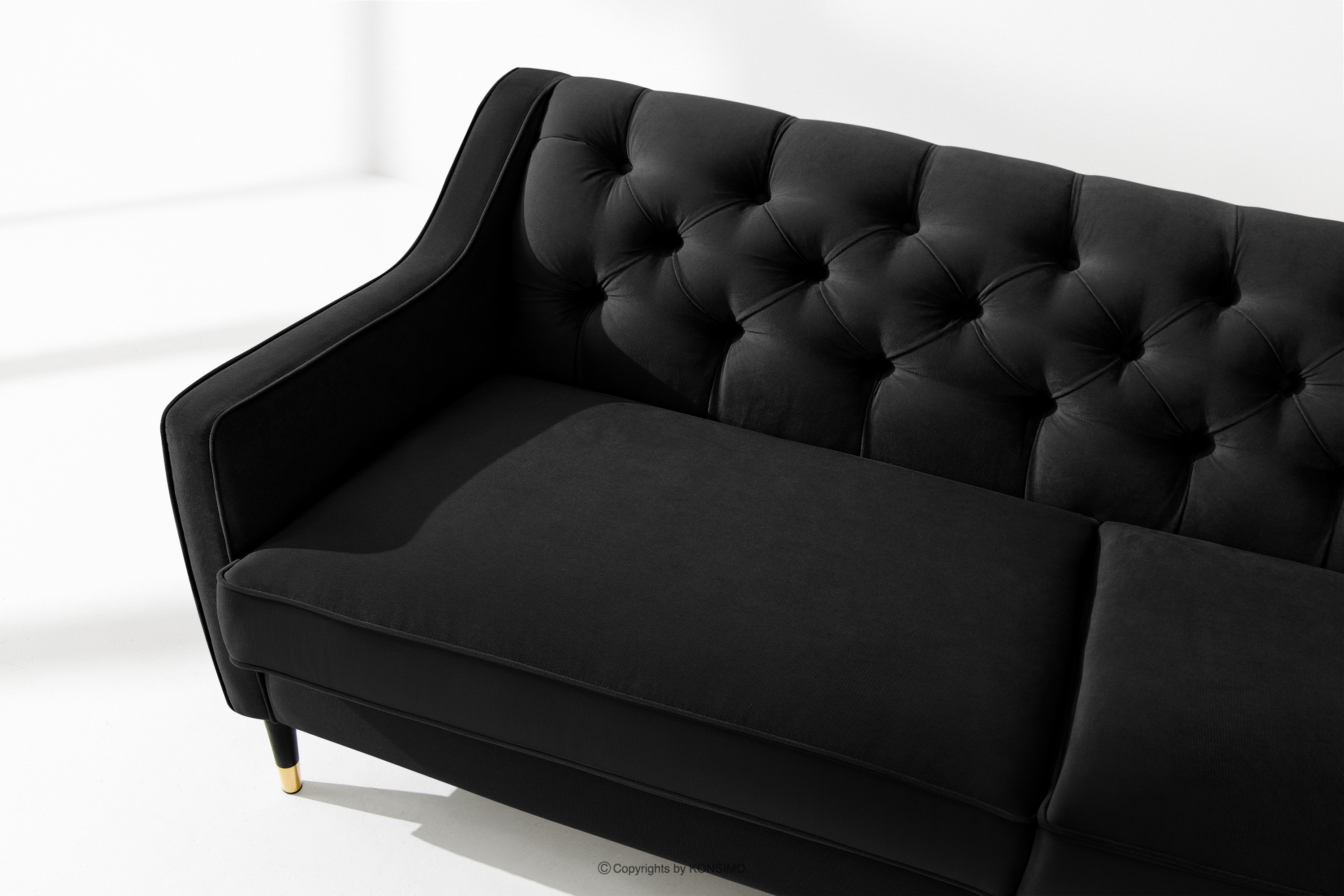 NOMUS Objav celú kolekciu Elegantná trojmiestna pohovka, prešívaný velúr čierna- farba čierna