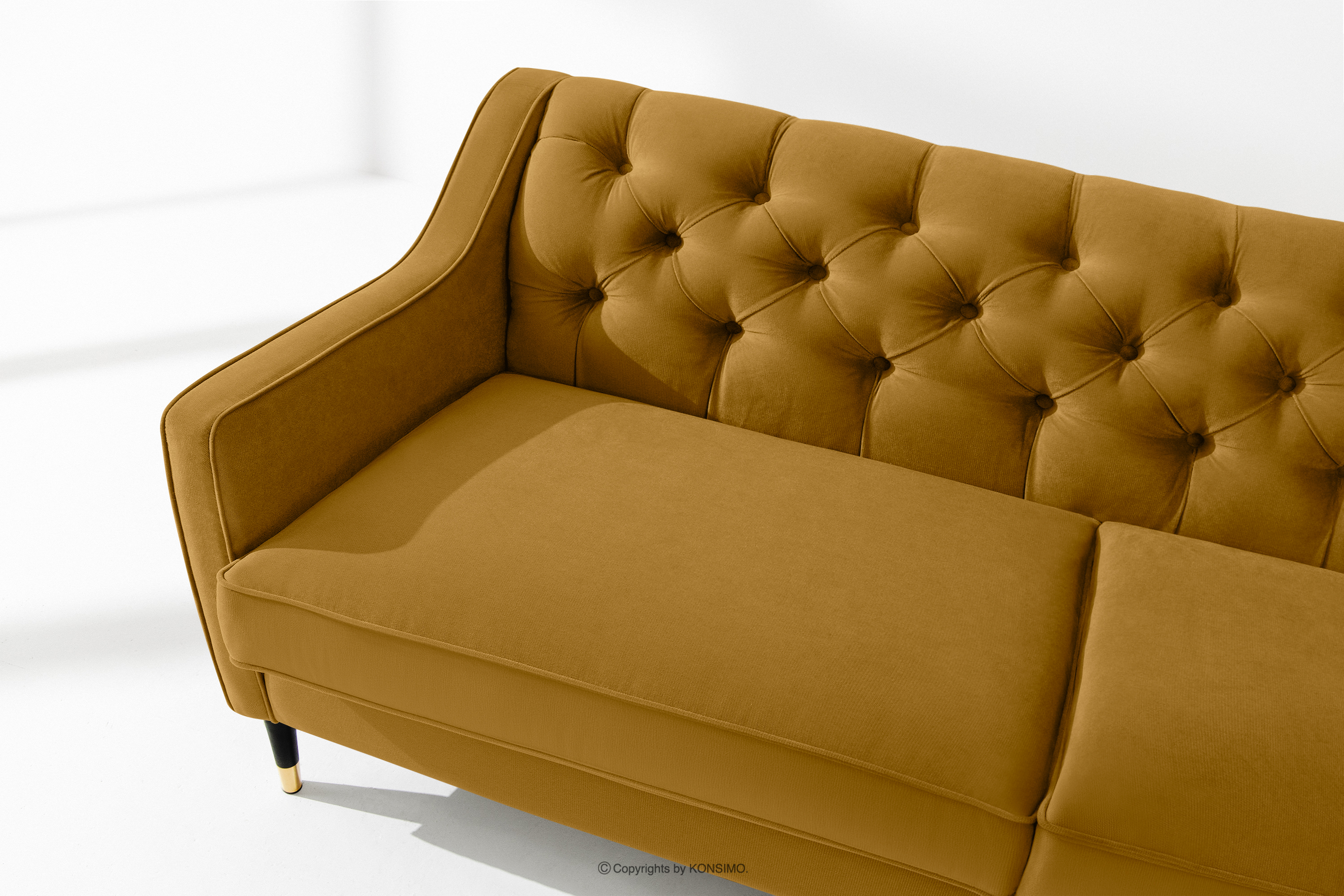 NOMUS Objav celú kolekciu Elegantná trojmiestna pohovka velúr s prešívaním žltá- farba žltá