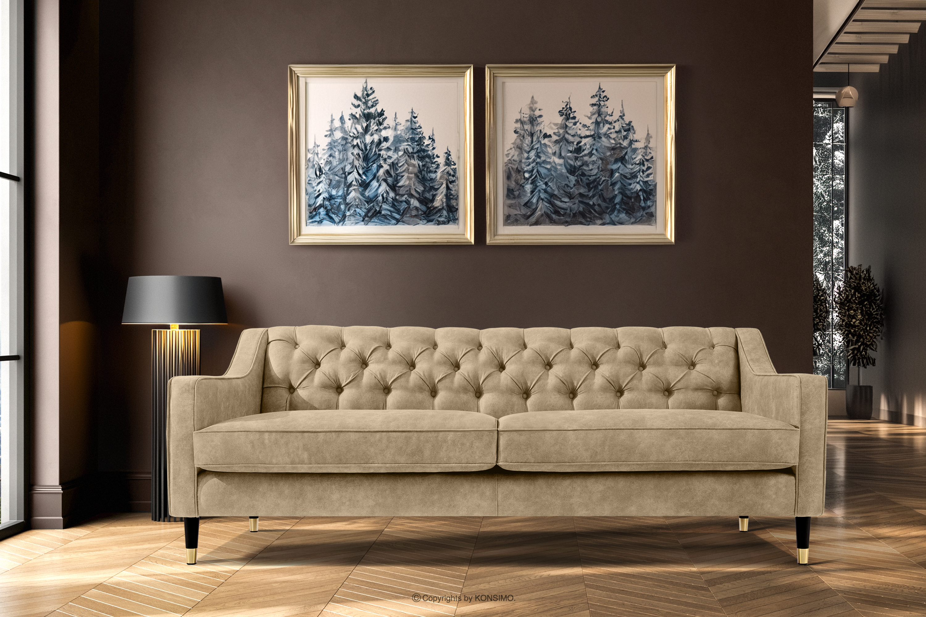 NOMUS Objav celú kolekciu Elegantná štýlová trojmiestna pohovka s prešívaním z ekokože svetlo béžová- farba svetlo béžová