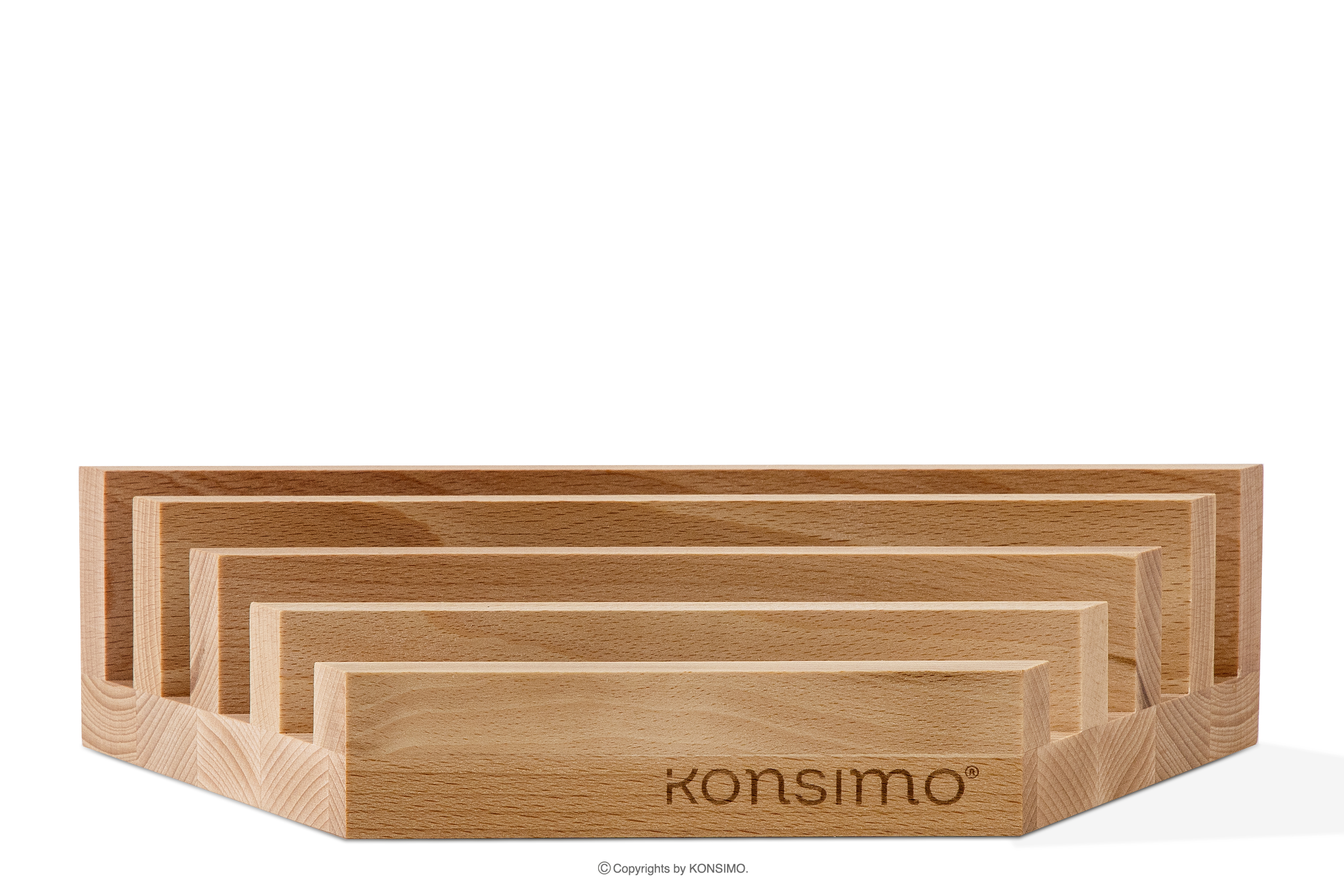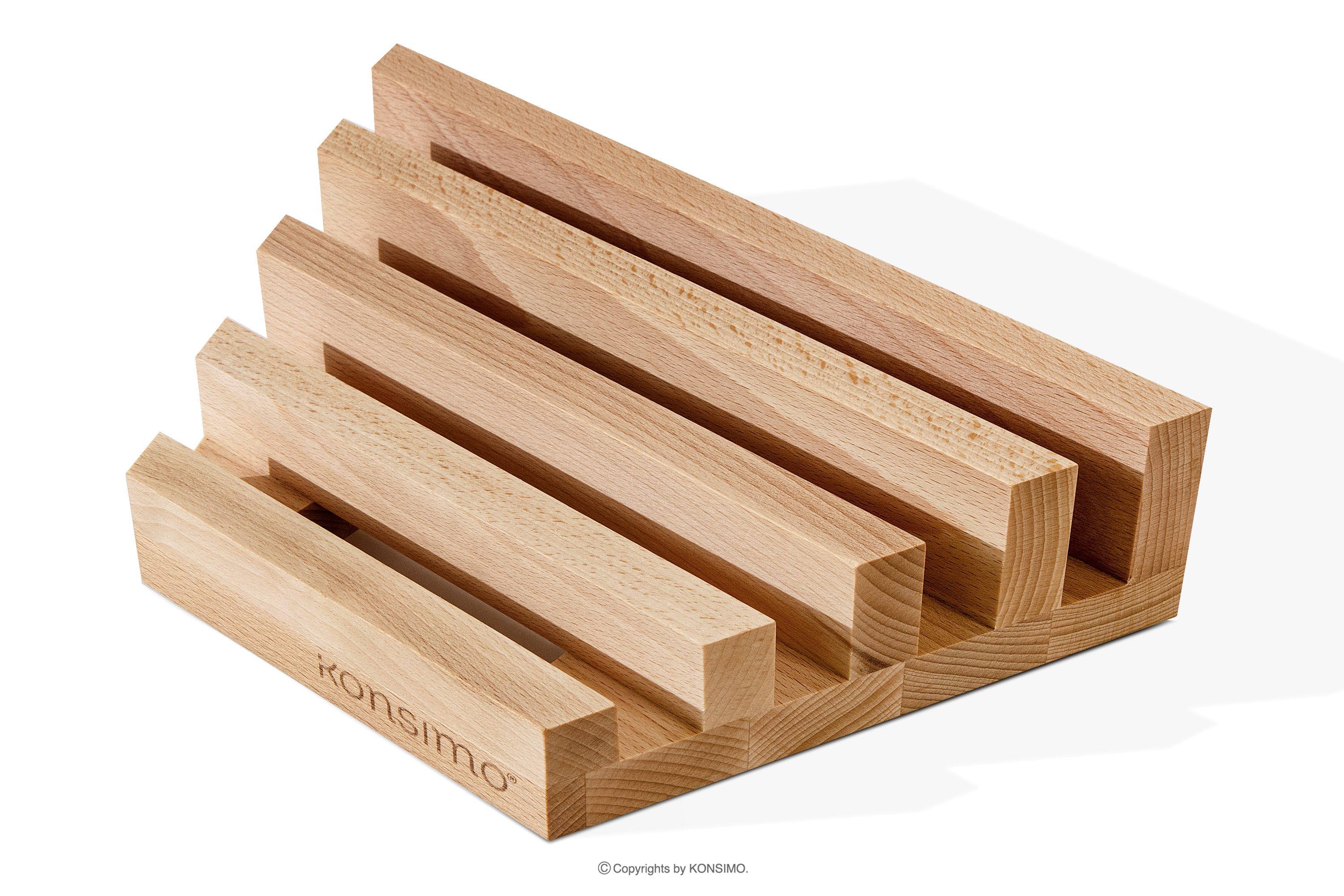 Stojan z bukového dreva na 4 kuchynské dosky je nielen praktickým kuchynským vybavením, ale aj štýlovým doplnkom, ktorý pomáha organizovať a esteticky ukladať kuchynské dosky. Je vyrobený z najkvalitnejšieho bukového dreva, vyzerá elegantne a je mimoriadne odolný. Jeho pevná konštrukcia zaručuje stabilitu, zatiaľ čo vďaka prírodnej povrchovej úprave sa dokonale hodí do rôznych interiérov.
