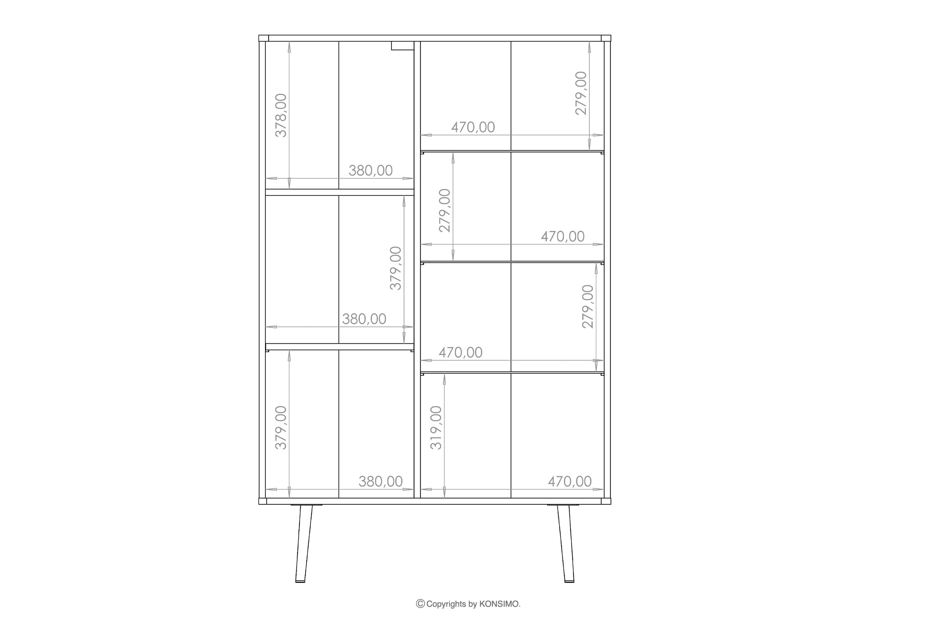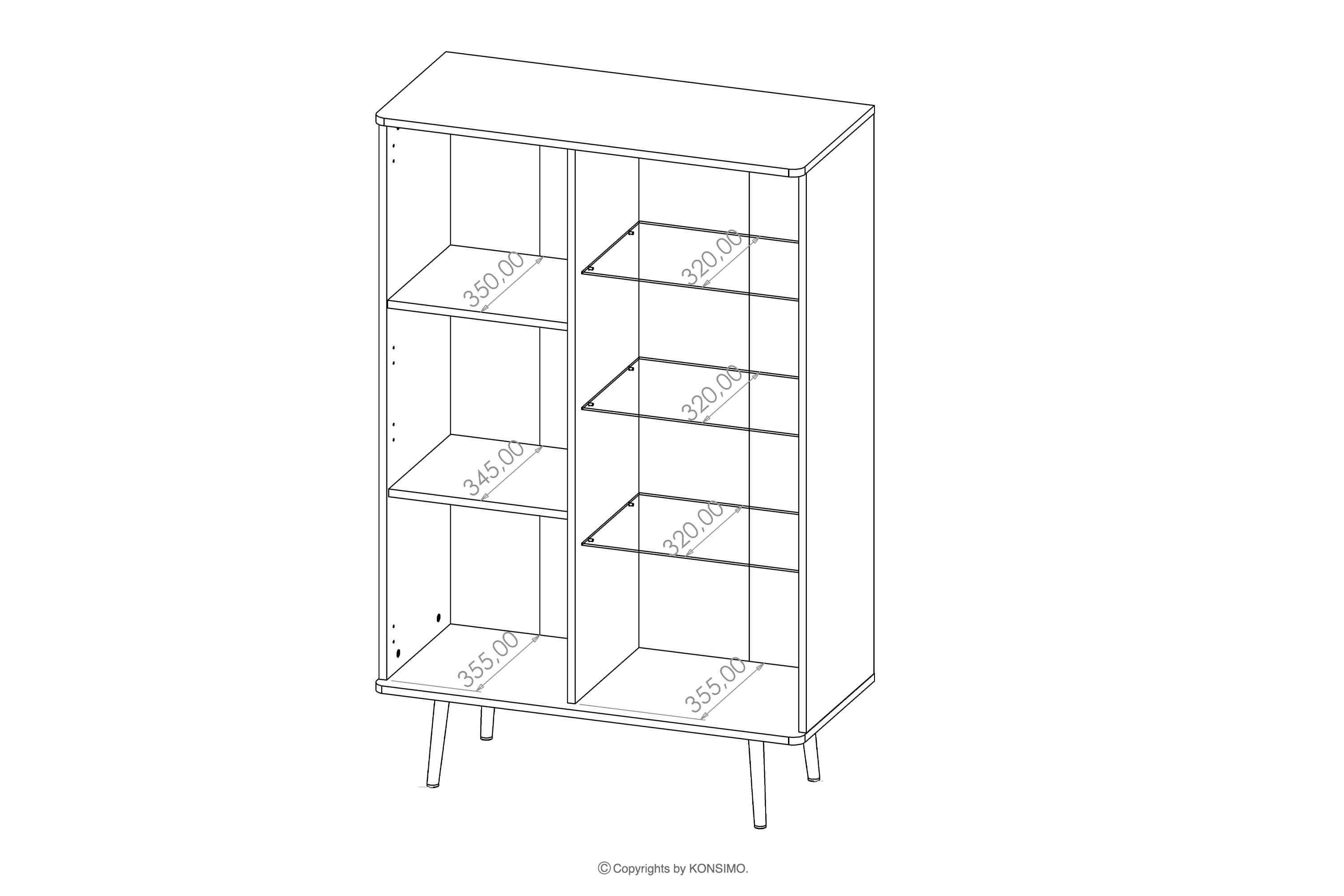 Veľká vitrína na vysokých nohách je kvintesenciou klasického dizajnu a praktickosti, ideálna pre tých, ktorí vo svojom interiéri ocenia estetiku aj funkčnosť. Je vyrobená z vysokokvalitných materiálov a má korpus z pevnej laminovanej dosky, ktorá zaručuje trvanlivosť a odolnosť voči mechanickému poškodeniu a každodennému opotrebovaniu. Tento materiál sa ľahko udržiava v čistote, vďaka čomu je tento kus nábytku nielen krásny, ale aj praktický.