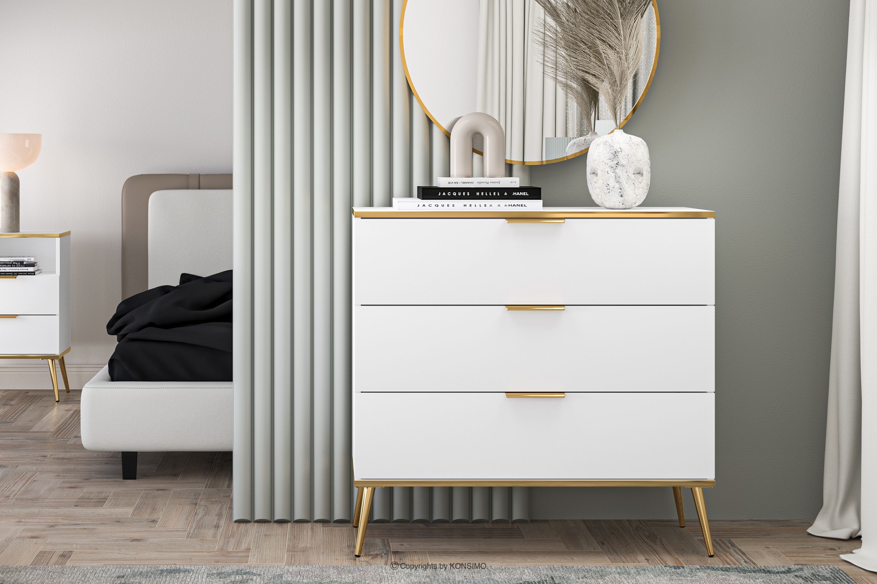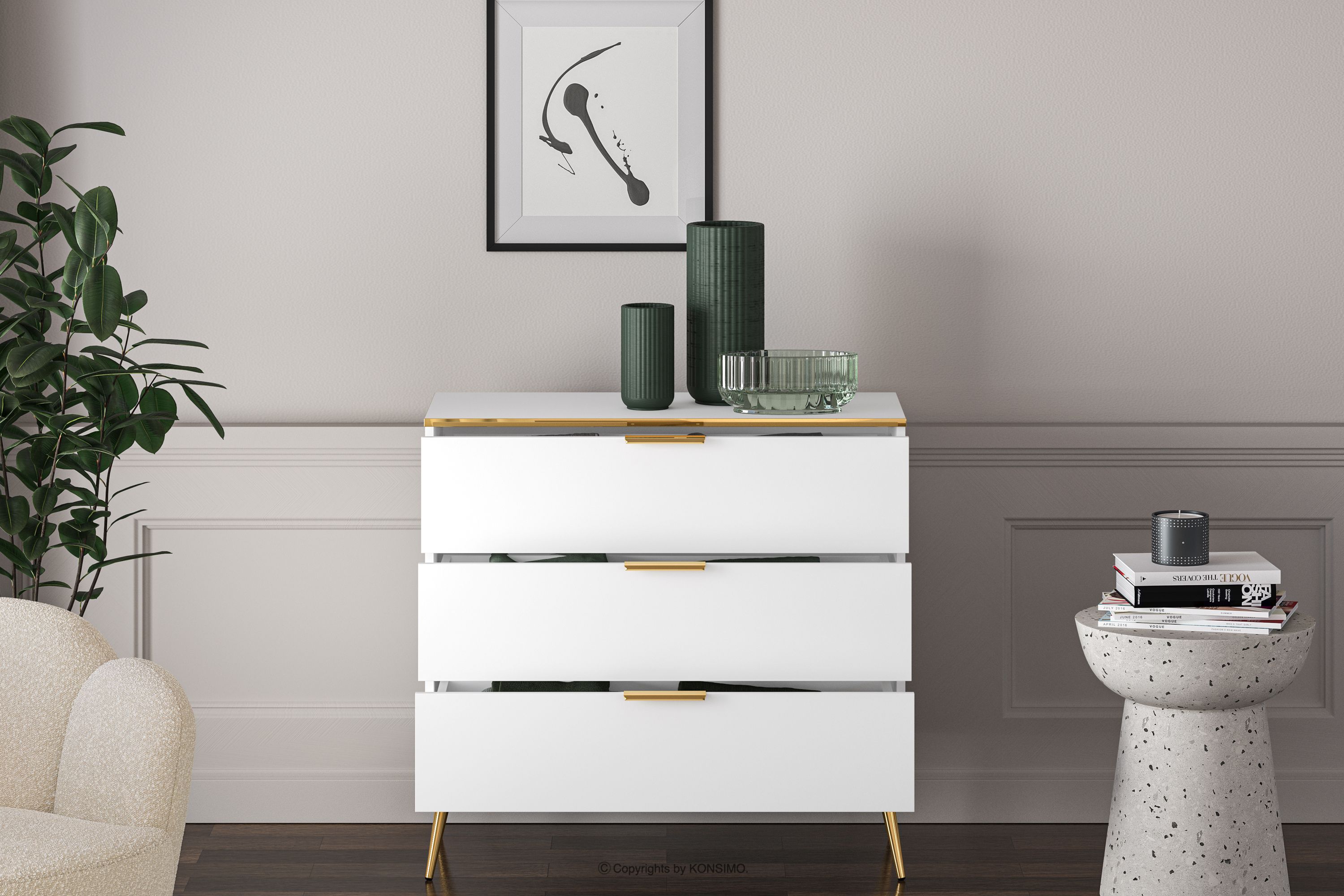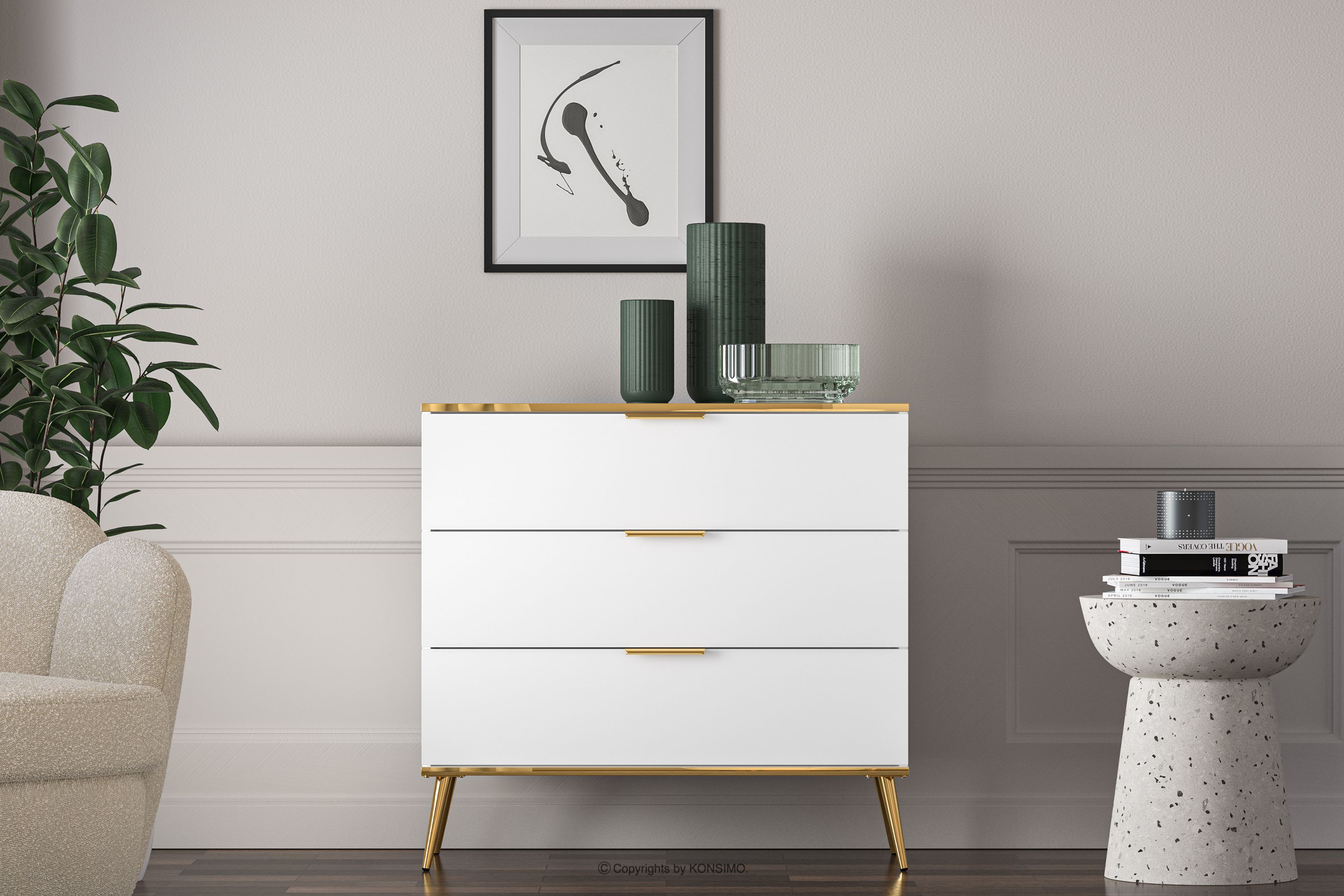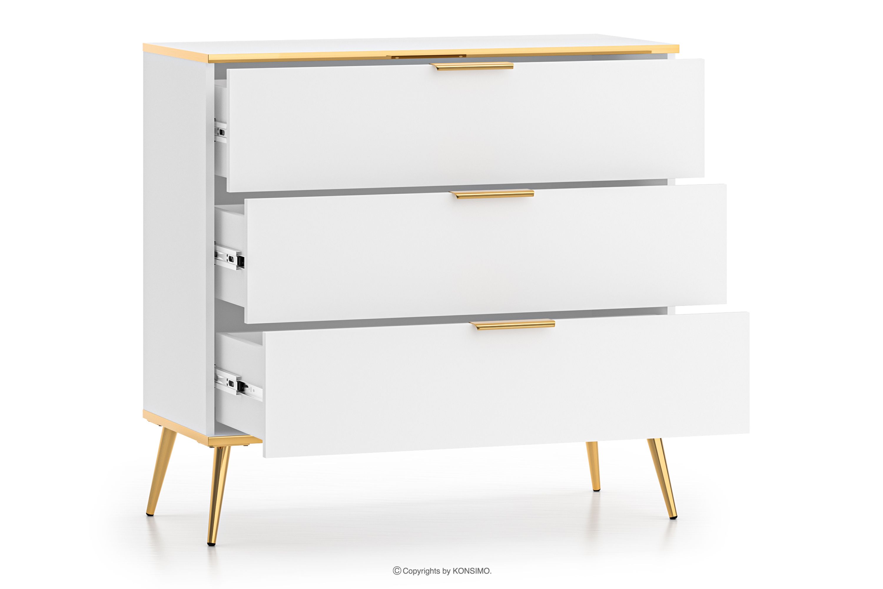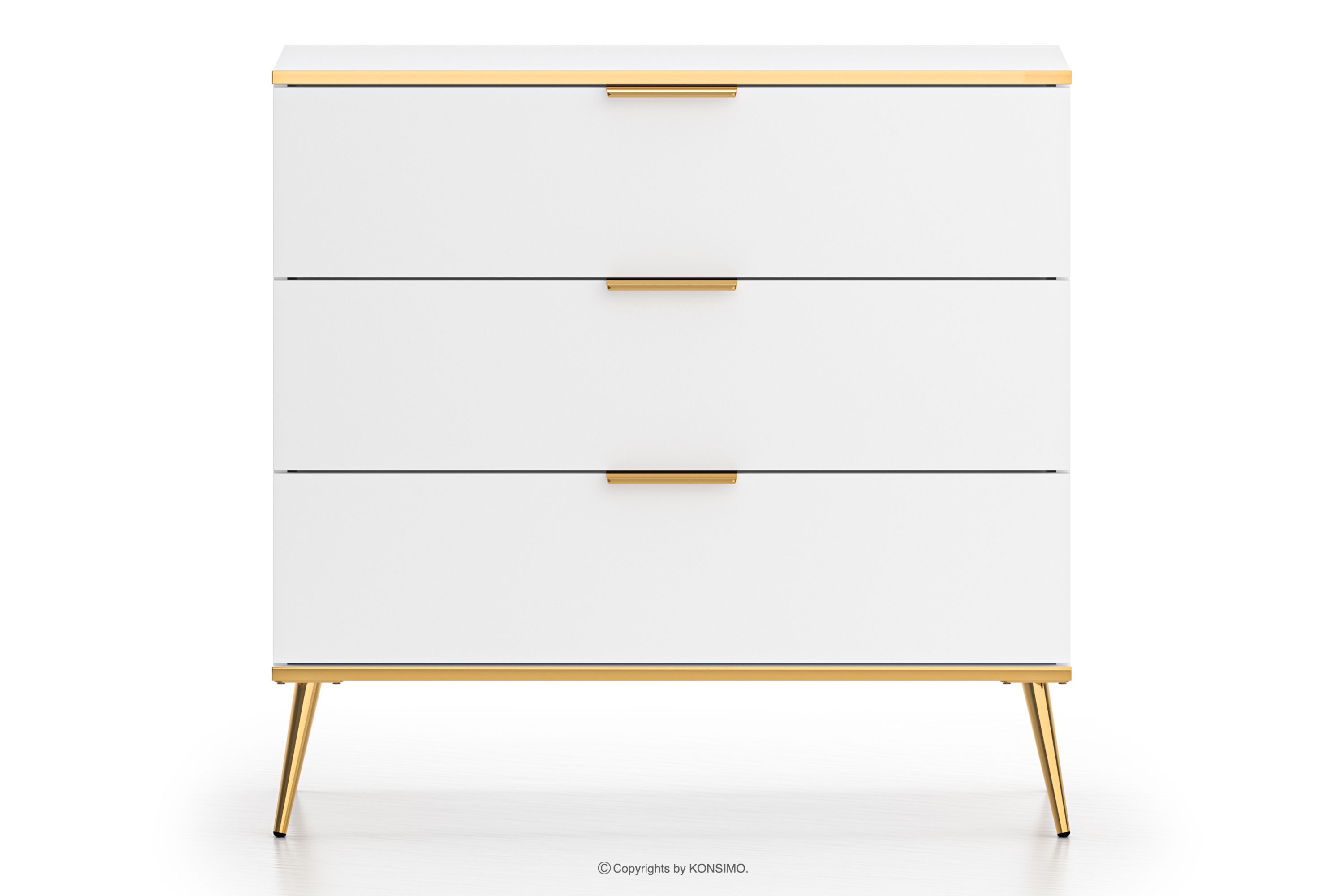 Elegantná biela komoda na zlatých nožičkách VELTI - farba bílý
