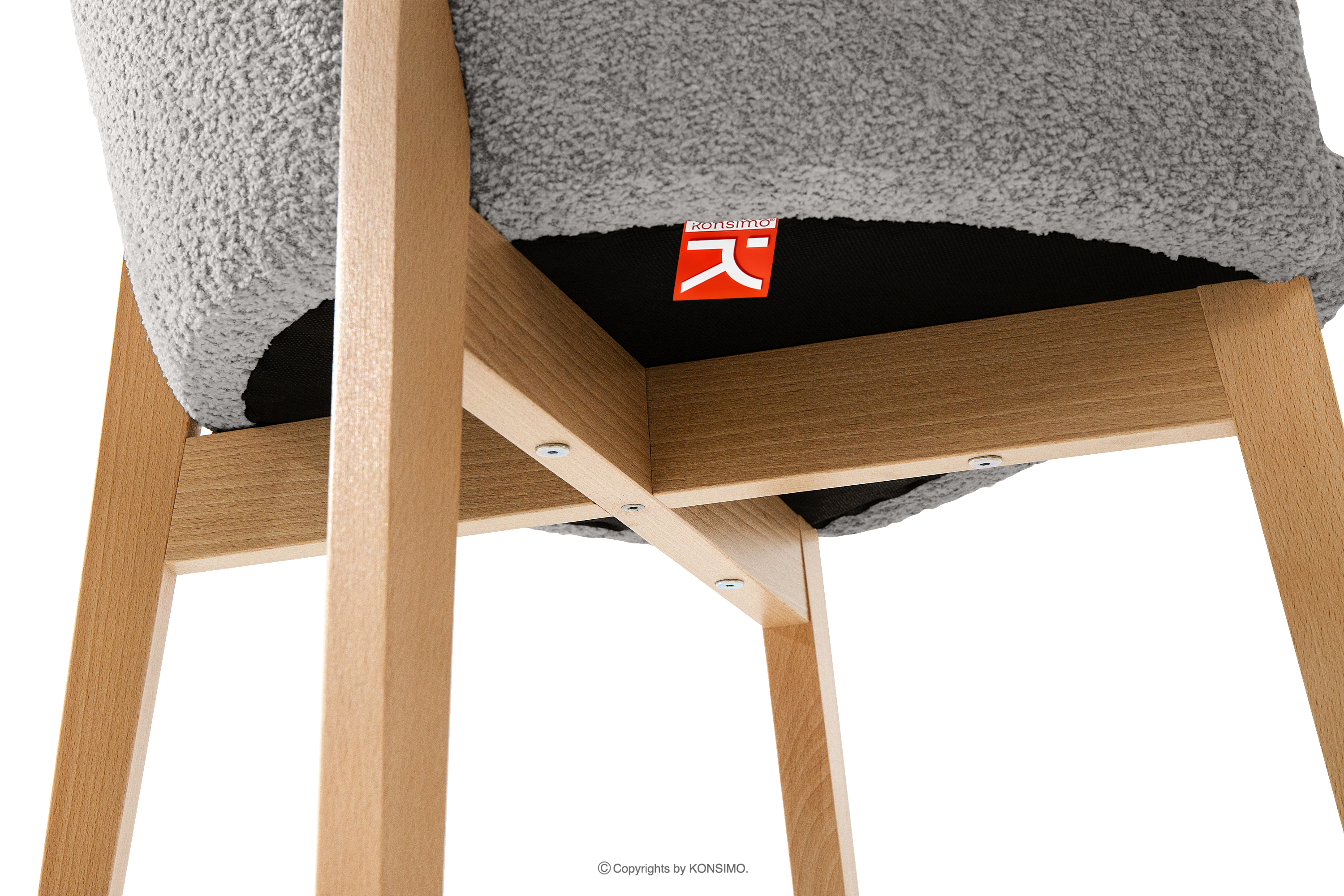 Čalúnená stolička na drevených nohách látka boucle oceľová 2 ks. LONIS - farba oceľ