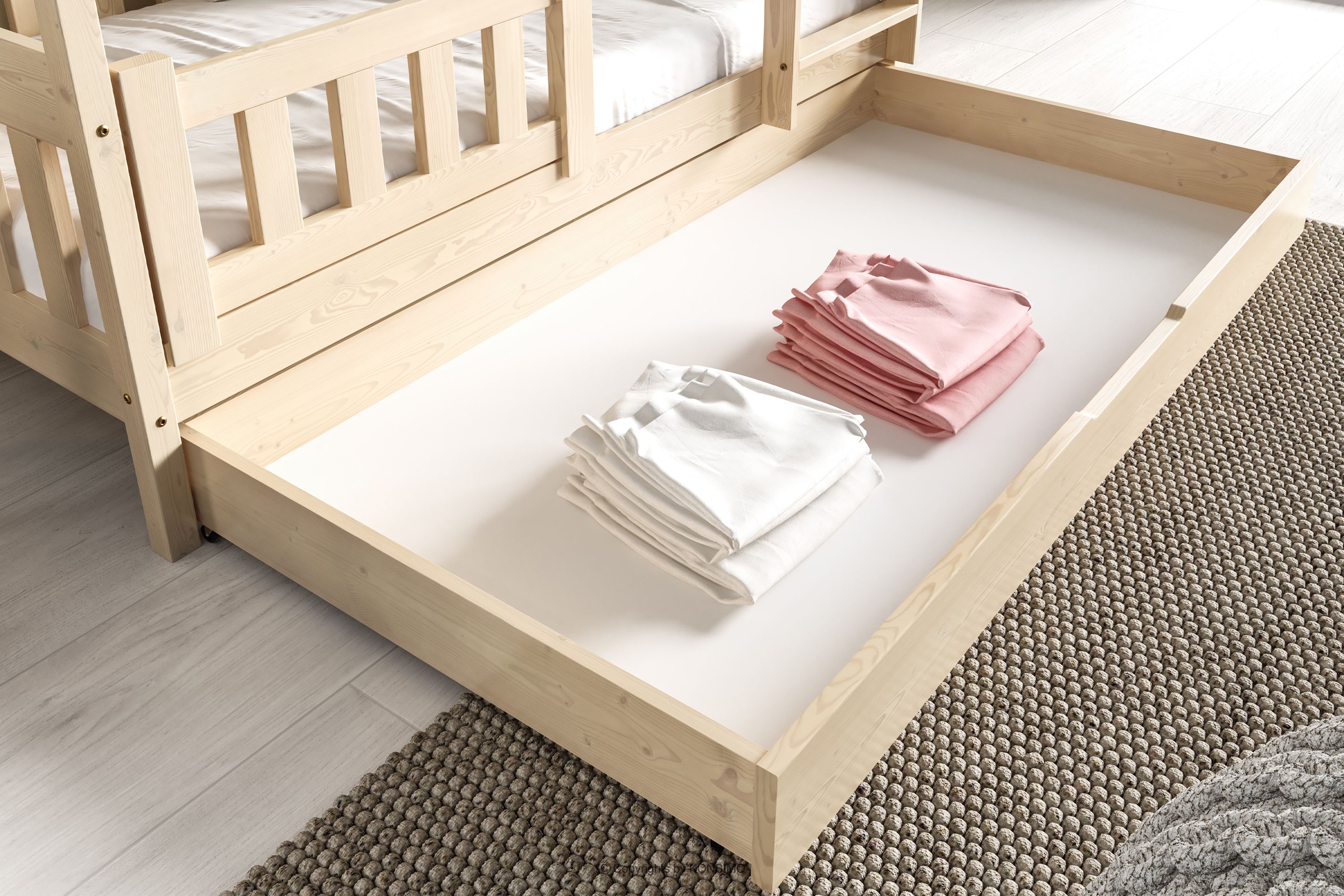 Posteľ z tejto kolekcie je nielen miestom na spanie, ale aj priestorom, ktorý deti inšpiruje k tvorivej hre. Tvar domčeka podnecuje fantáziu a nabáda ich k vytváraniu vlastných jedinečných svetov - od tajomných hradov až po útulné domčeky na stromoch.