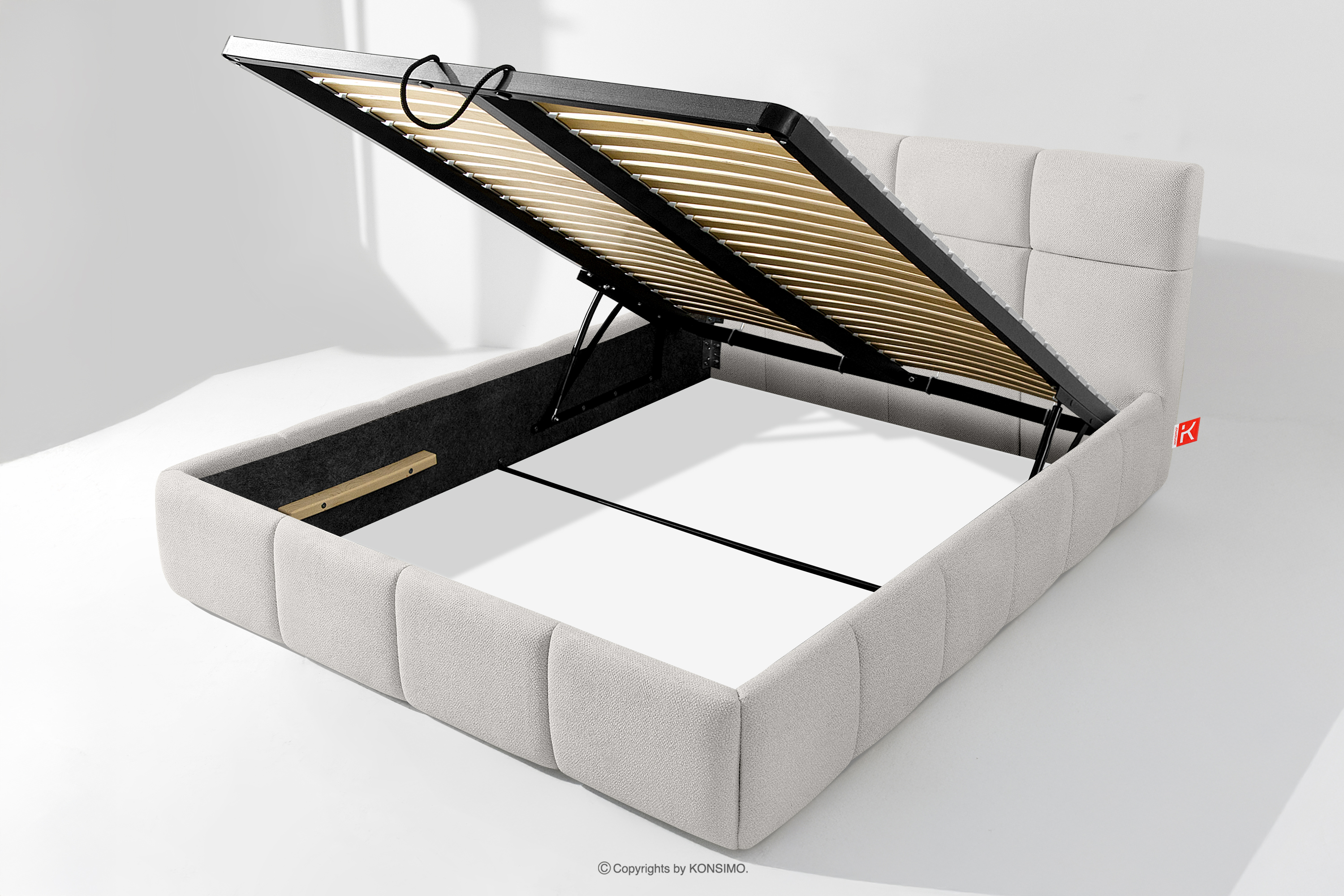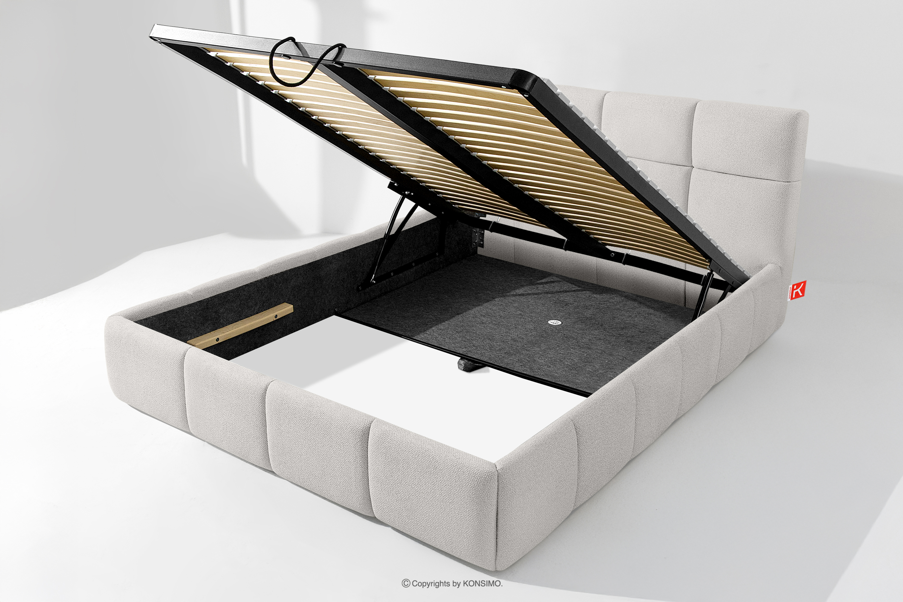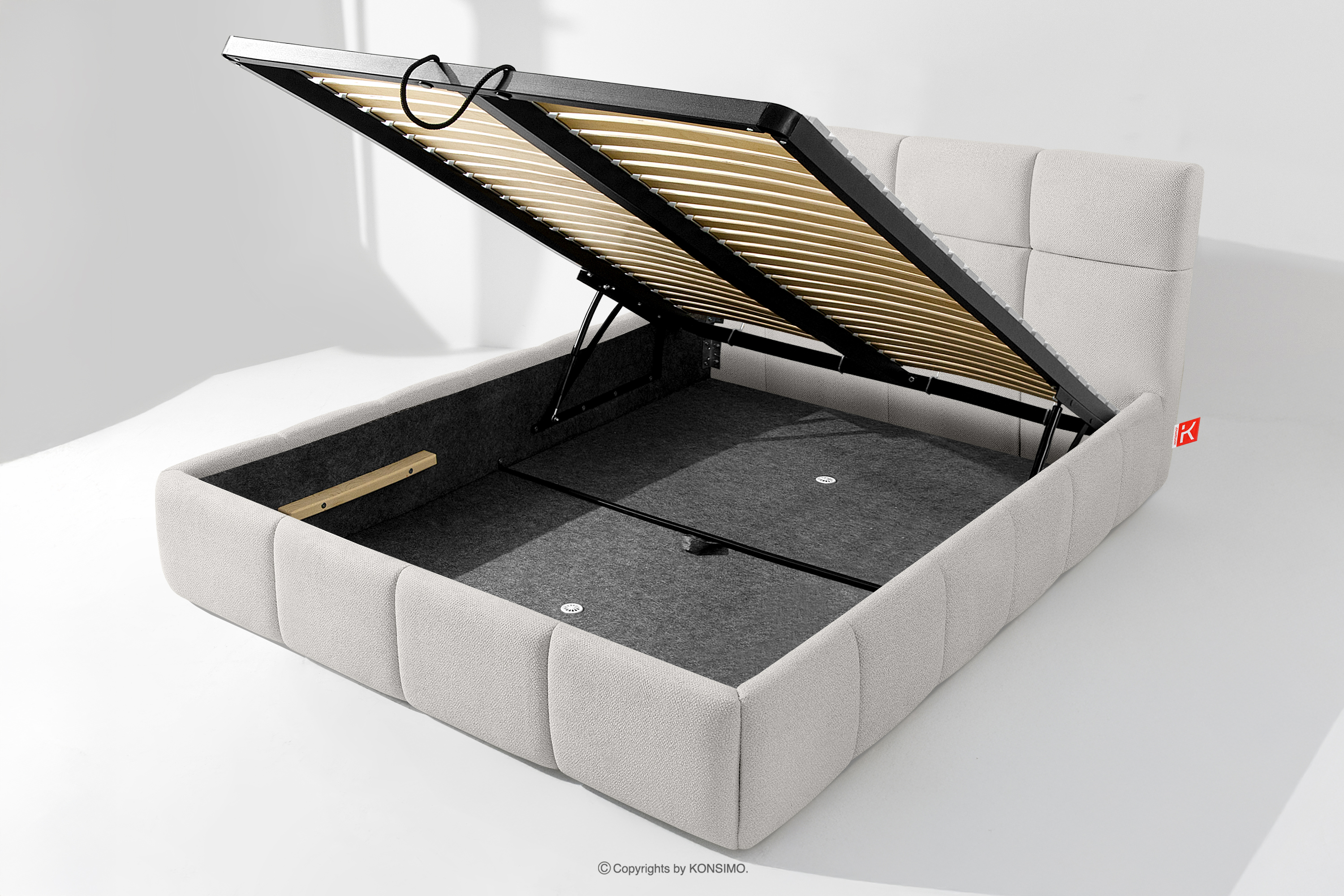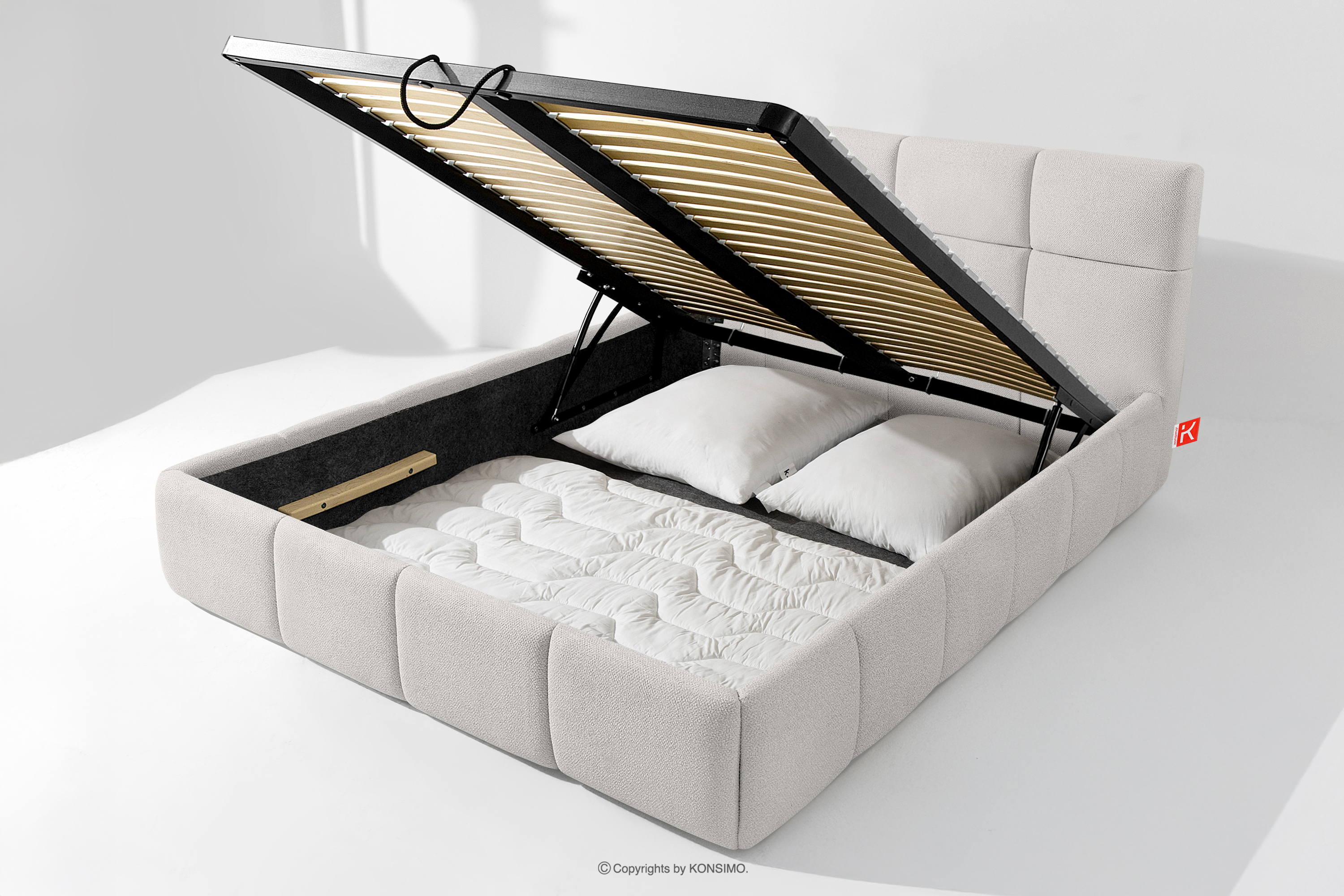 Používateľ má navyše možnosť prispôsobiť si tvrdosť postele - vďaka odnímateľným lamelám možno dosiahnuť mäkší alebo tvrdší základ. Ďalším komfortom je pohodlný kontajner na lôžkoviny, ktorý sa otvára vďaka moderným plynovým fľašiam - bez námahy a plne automaticky. Toto praktické riešenie umožňuje rýchly prístup k uloženej posteľnej bielizni bez nutnosti ručného zdvíhania ťažkého matraca.