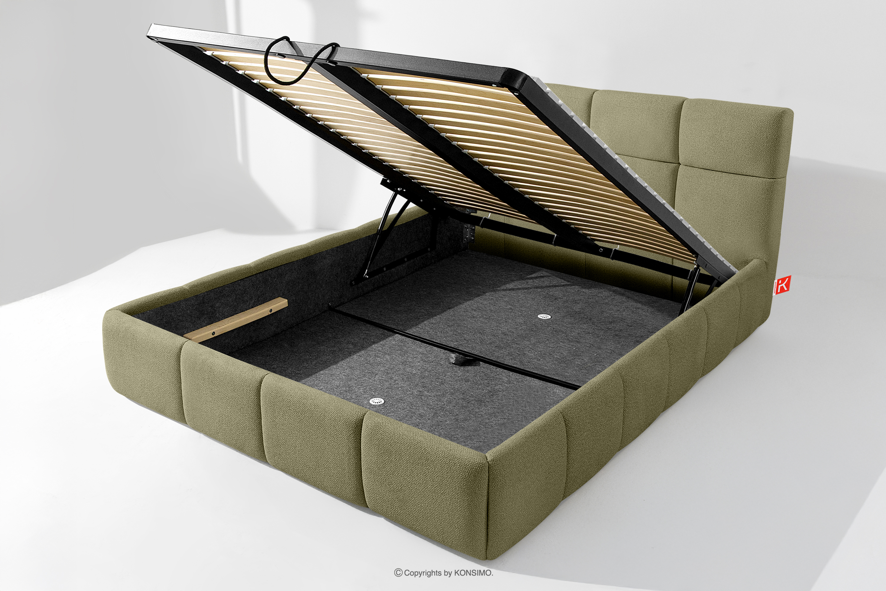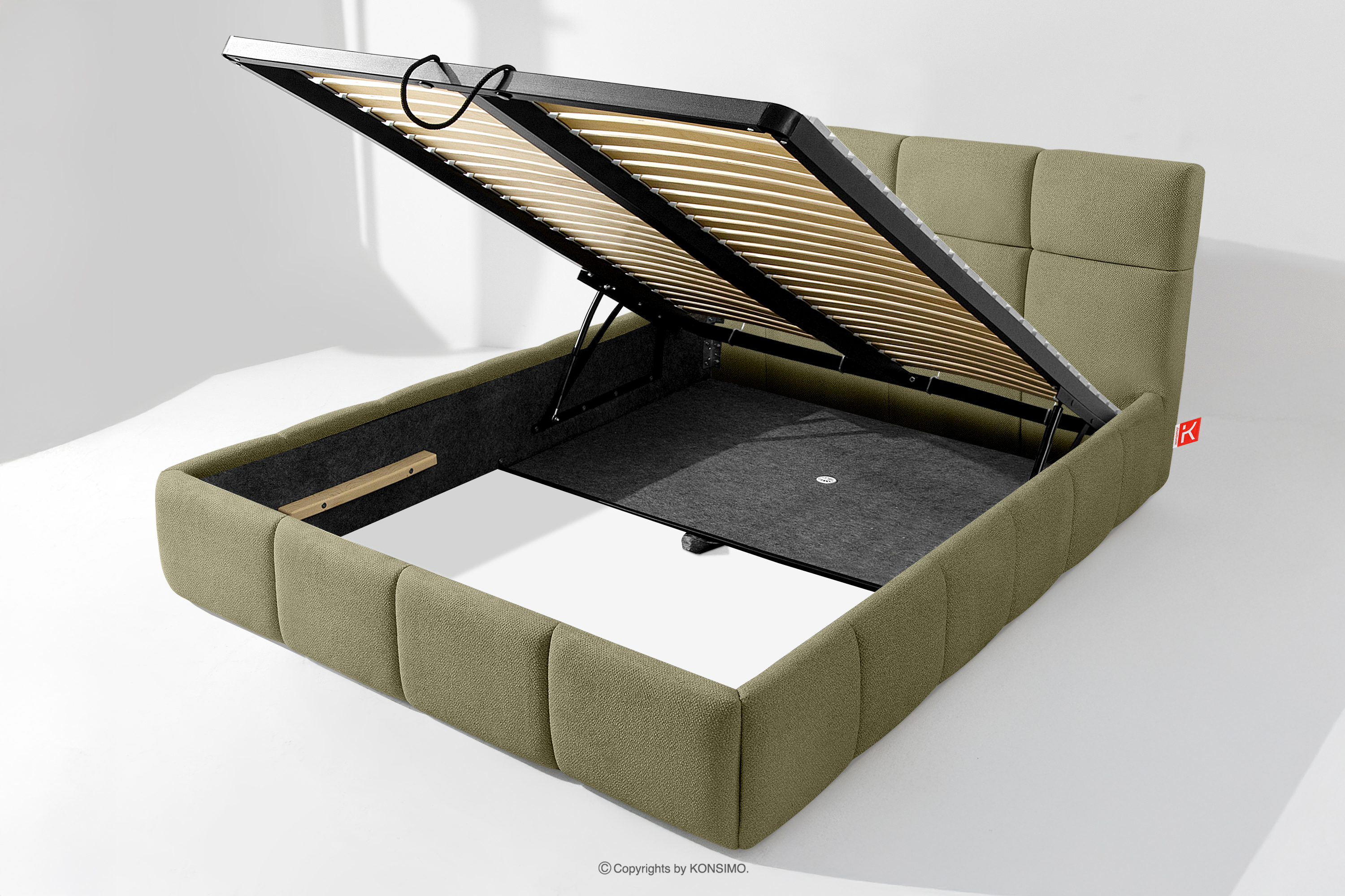 Ďalším komfortom je pohodlný kontajner na lôžkoviny, ktorý sa otvára vďaka moderným plynovým fľašiam - bez námahy a plne automaticky. Toto praktické riešenie umožňuje rýchly prístup k uloženej posteľnej bielizni bez nutnosti ručného zdvíhania ťažkého matraca.