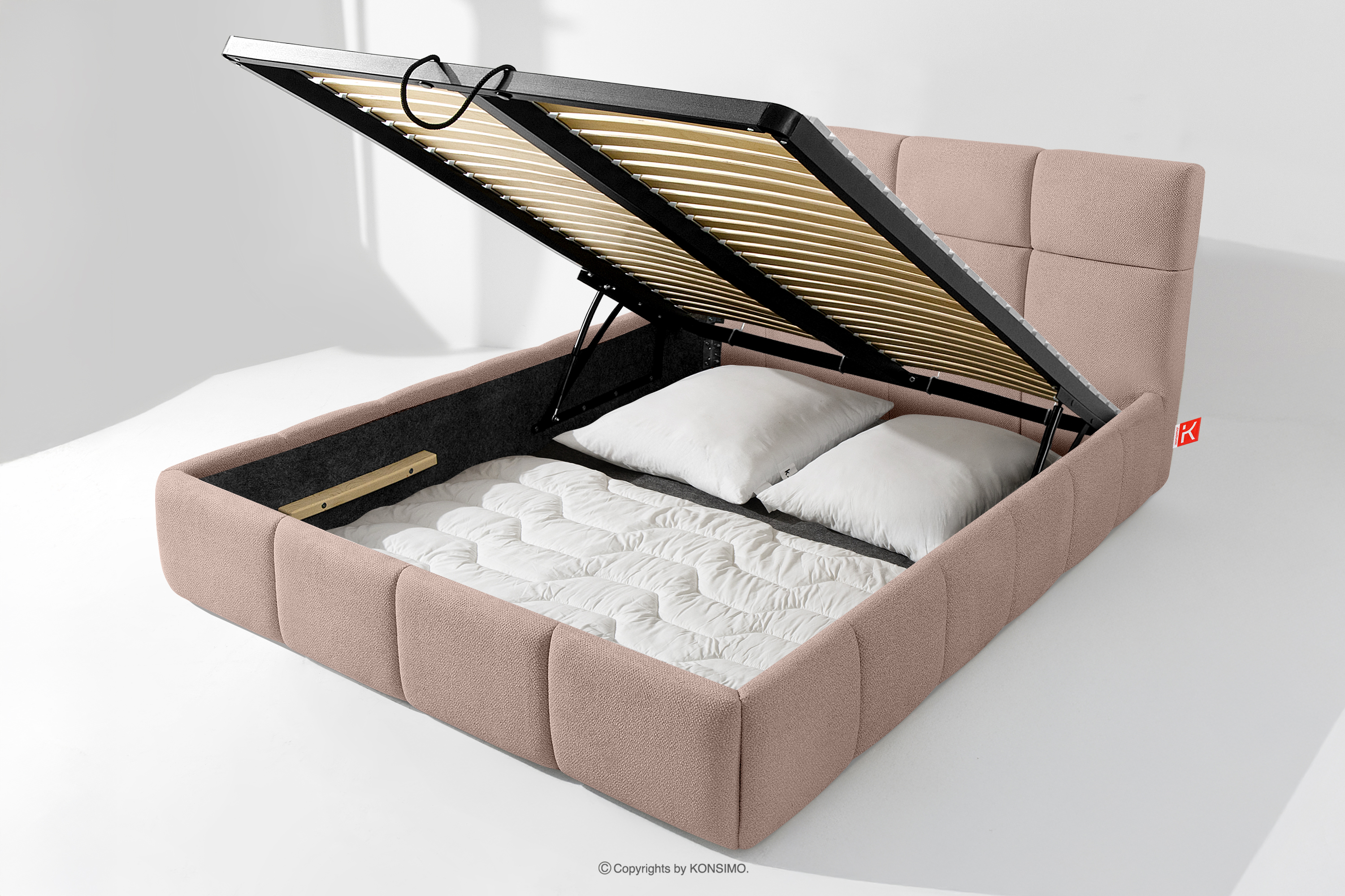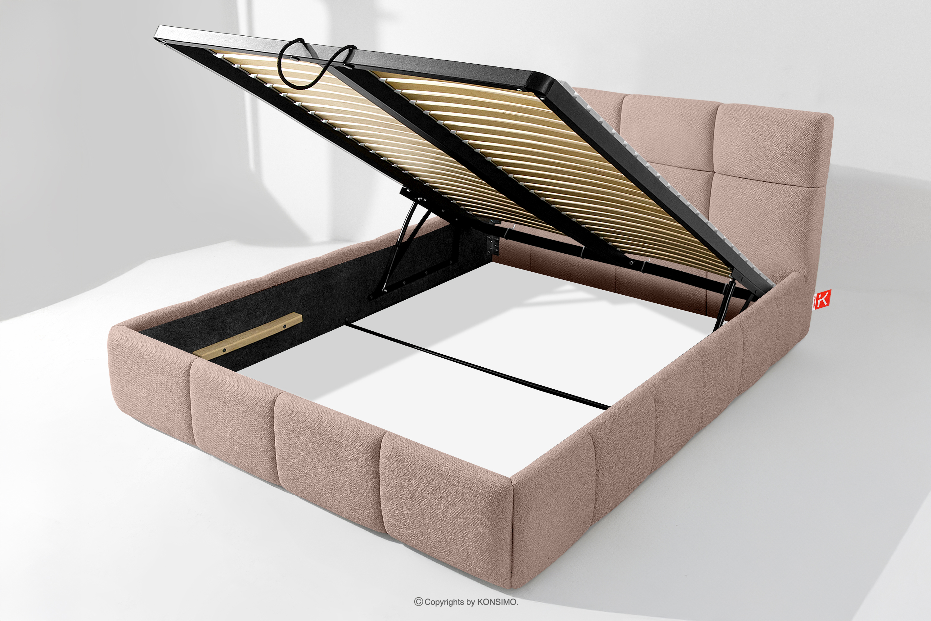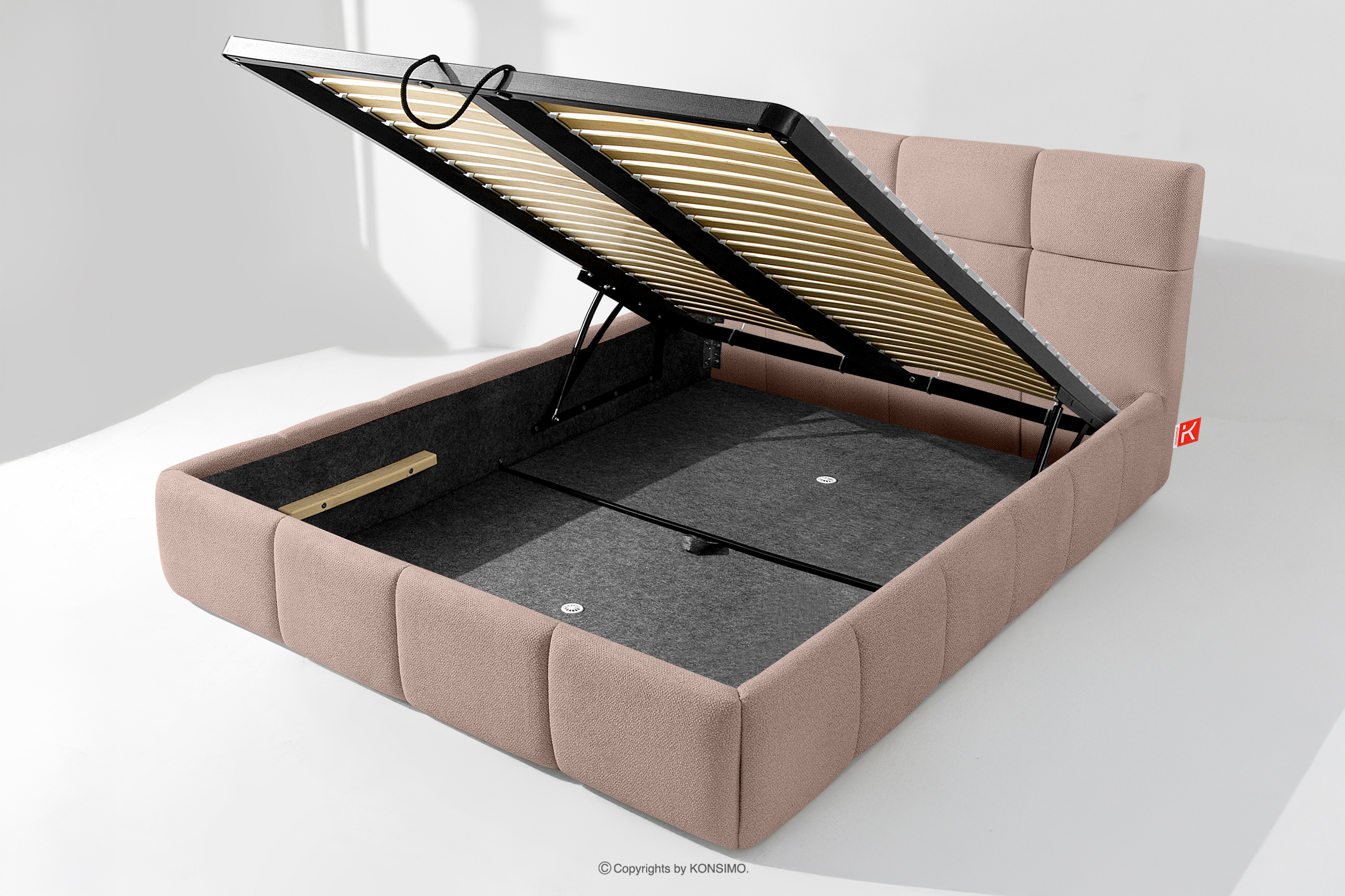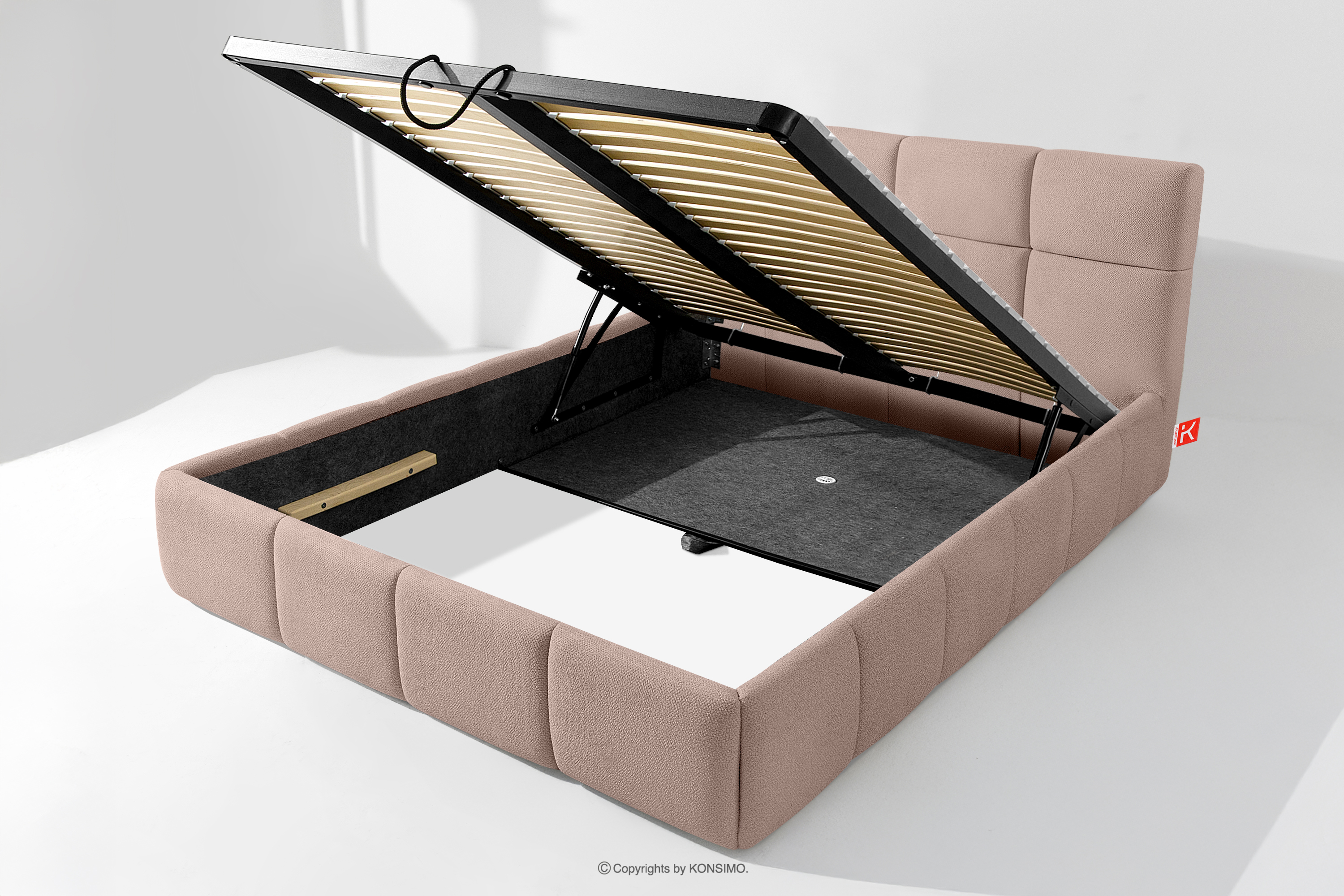 Používateľ má navyše možnosť prispôsobiť si tvrdosť postele - vďaka odnímateľným lamelám možno dosiahnuť mäkší alebo tvrdší základ. Ďalším komfortom je pohodlný kontajner na lôžkoviny, ktorý sa otvára vďaka moderným plynovým fľašiam - bez námahy a plne automaticky. Toto praktické riešenie umožňuje rýchly prístup k uloženej posteľnej bielizni bez nutnosti ručného zdvíhania ťažkého matraca.