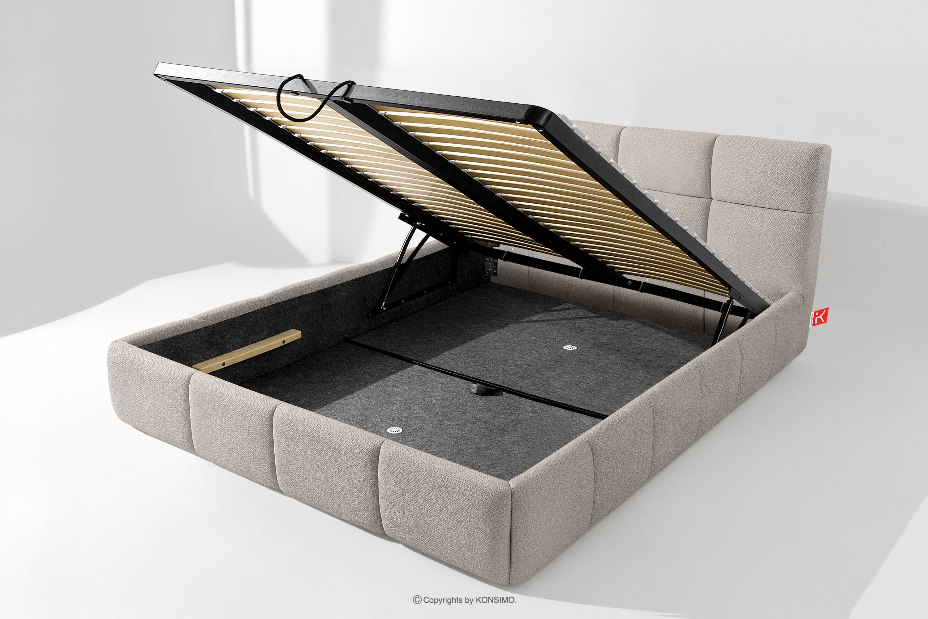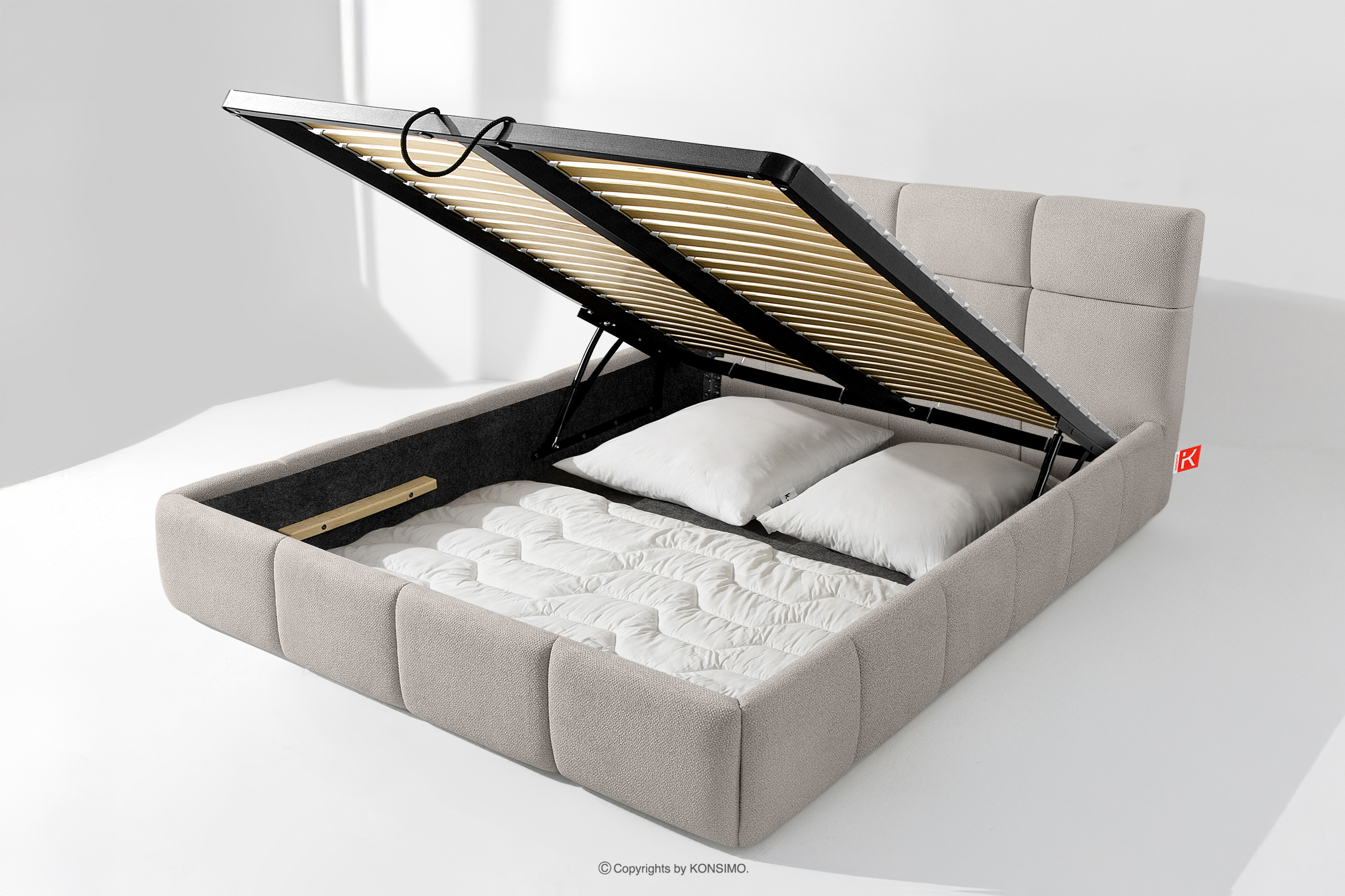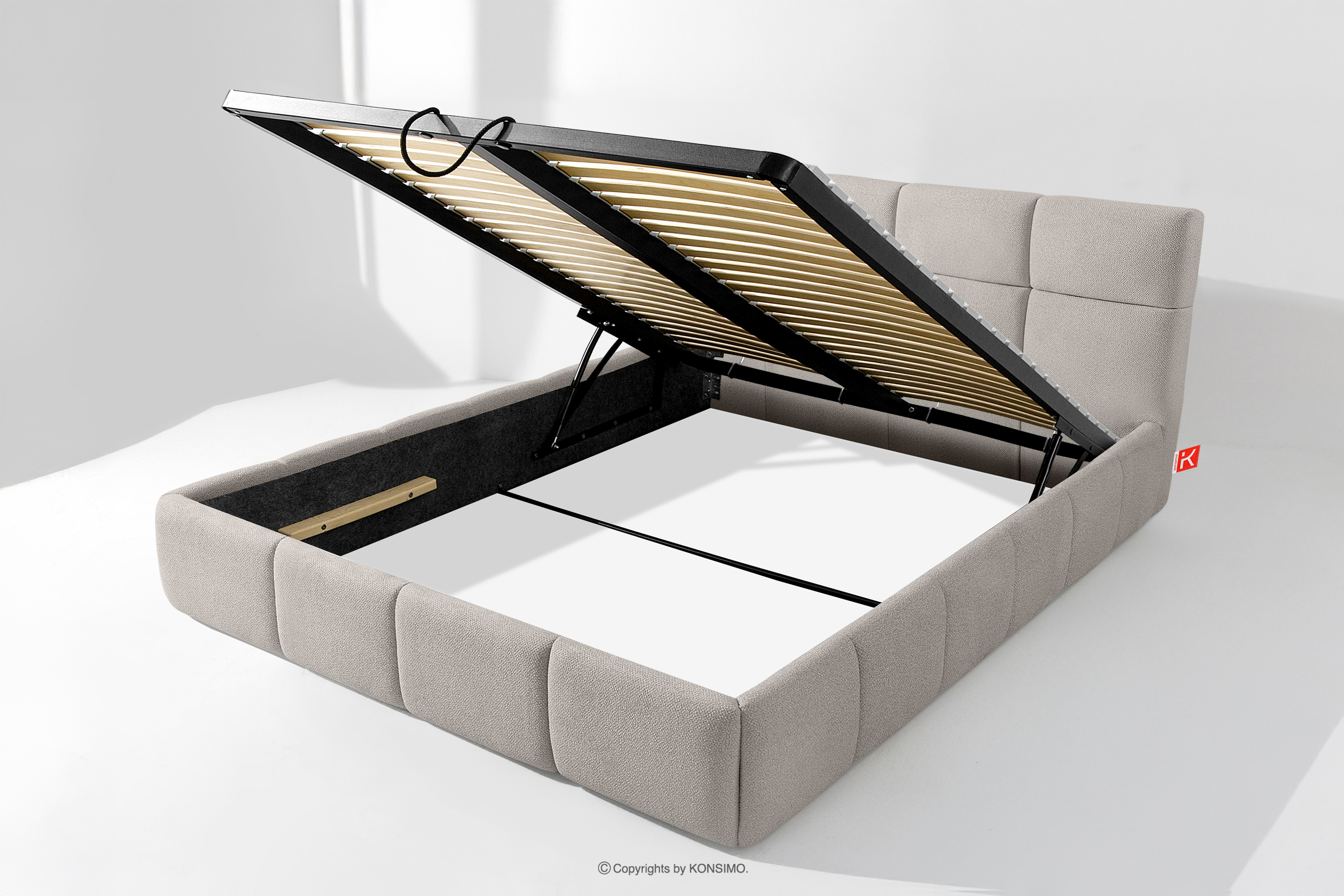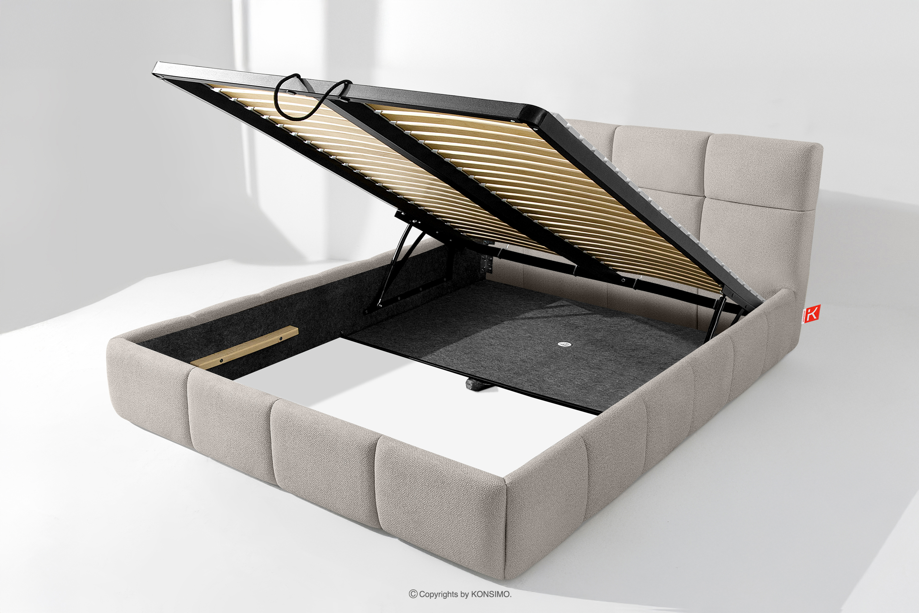 Navyše má používateľ možnosť prispôsobiť si tvrdosť postele - vďaka odnímateľným lamelám možno dosiahnuť mäkší alebo tvrdší základ. Ďalším komfortom je pohodlný kontajner na lôžkoviny, ktorý sa otvára vďaka moderným plynovým fľašiam - bez námahy a plne automaticky. Toto praktické riešenie umožňuje rýchly prístup k uloženej posteľnej bielizni bez nutnosti ručného zdvíhania ťažkého matraca.