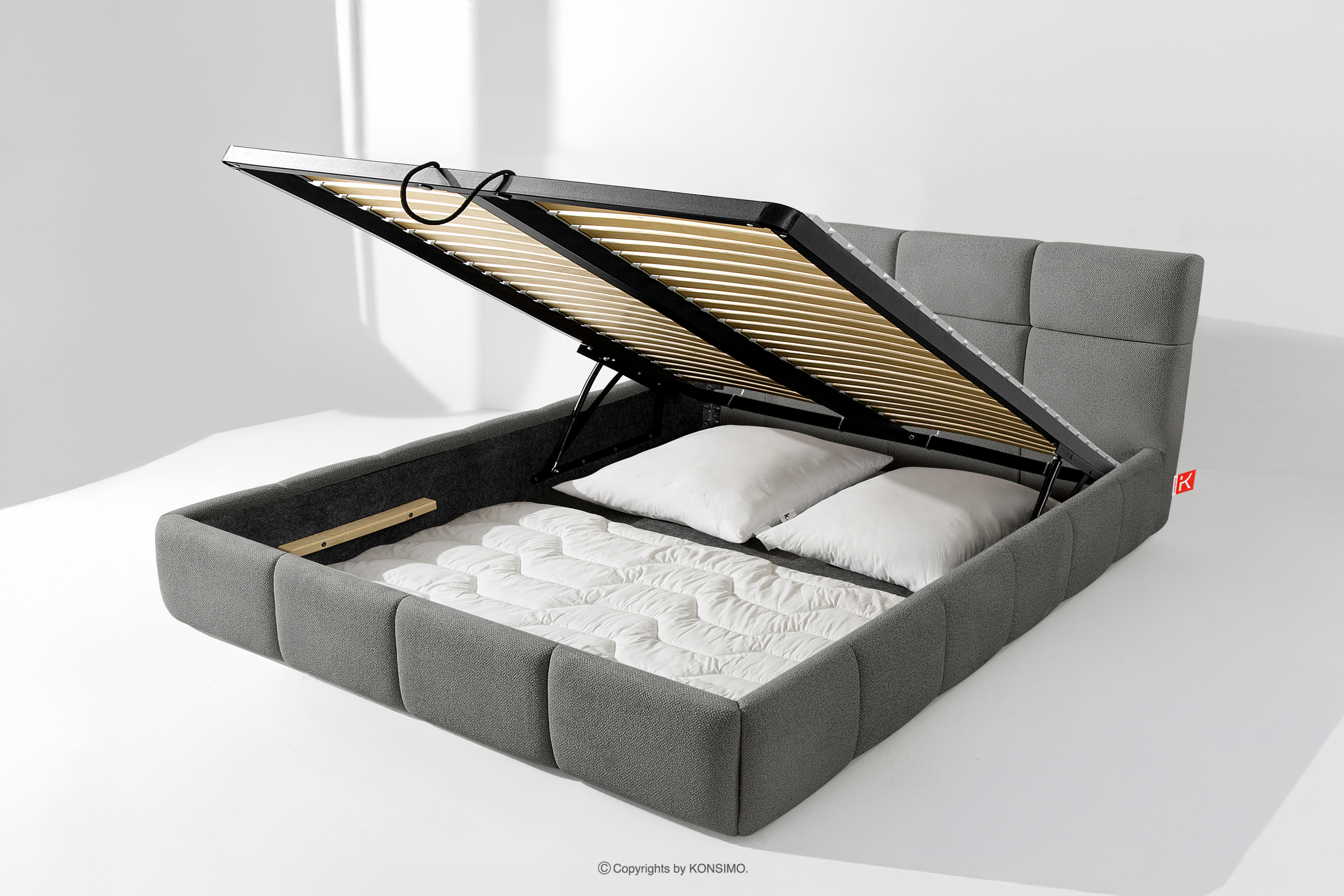 Používateľ má navyše možnosť prispôsobiť si tvrdosť postele - vďaka odnímateľným lamelám možno dosiahnuť mäkší alebo tvrdší základ. Ďalším komfortom je pohodlný kontajner na lôžkoviny, ktorý sa otvára vďaka moderným plynovým fľašiam - bez námahy a plne automaticky. Toto praktické riešenie umožňuje rýchly prístup k uloženej posteľnej bielizni bez nutnosti ručného zdvíhania ťažkého matraca.