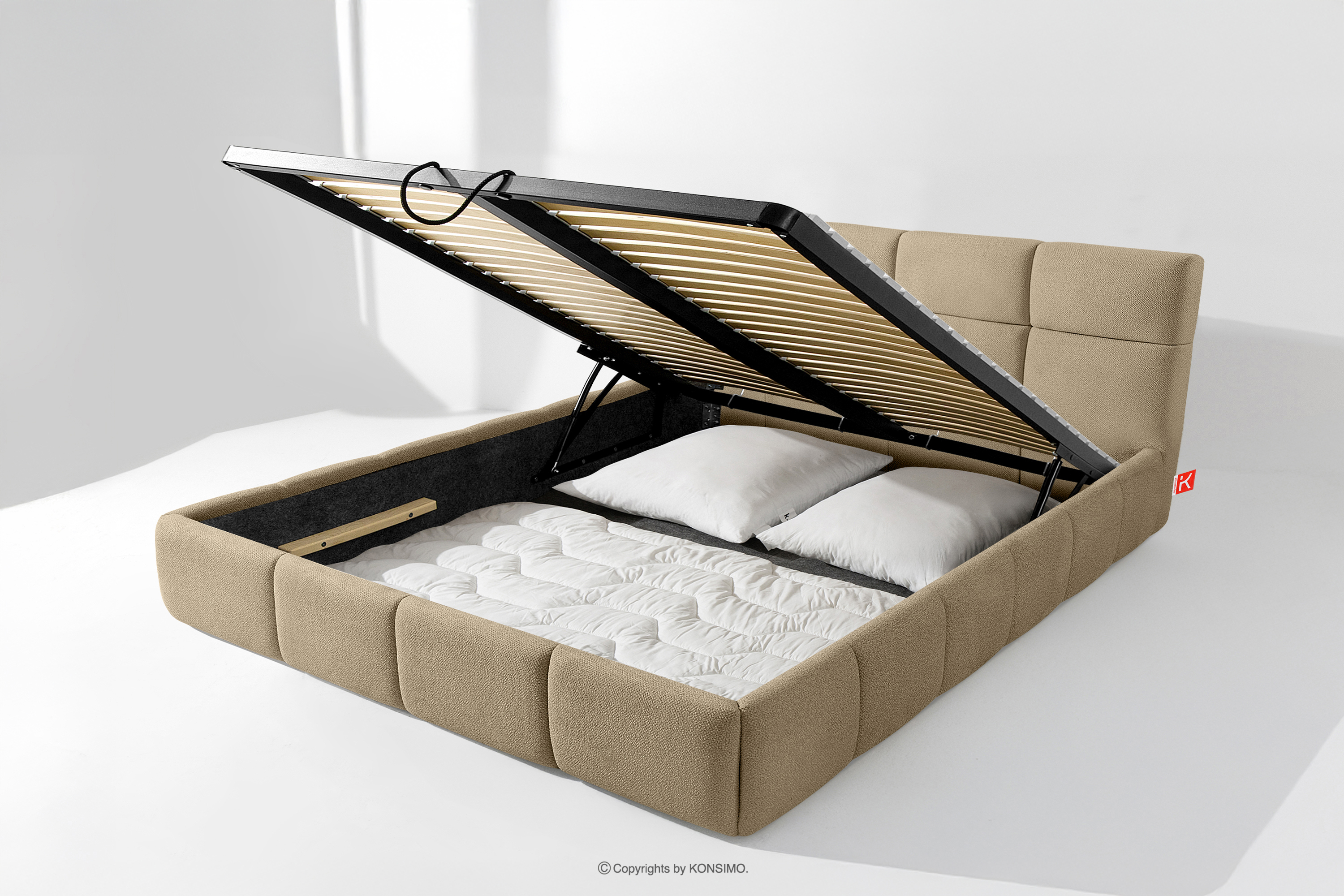 Navyše má používateľ možnosť prispôsobiť si tvrdosť postele - vďaka odnímateľným lamelám možno dosiahnuť mäkší alebo tvrdší základ. Ďalším komfortom je pohodlný kontajner na lôžkoviny, ktorý sa otvára vďaka moderným plynovým fľašiam - bez námahy a plne automaticky. Toto praktické riešenie umožňuje rýchly prístup k uloženej posteľnej bielizni bez nutnosti ručného zdvíhania ťažkého matraca.