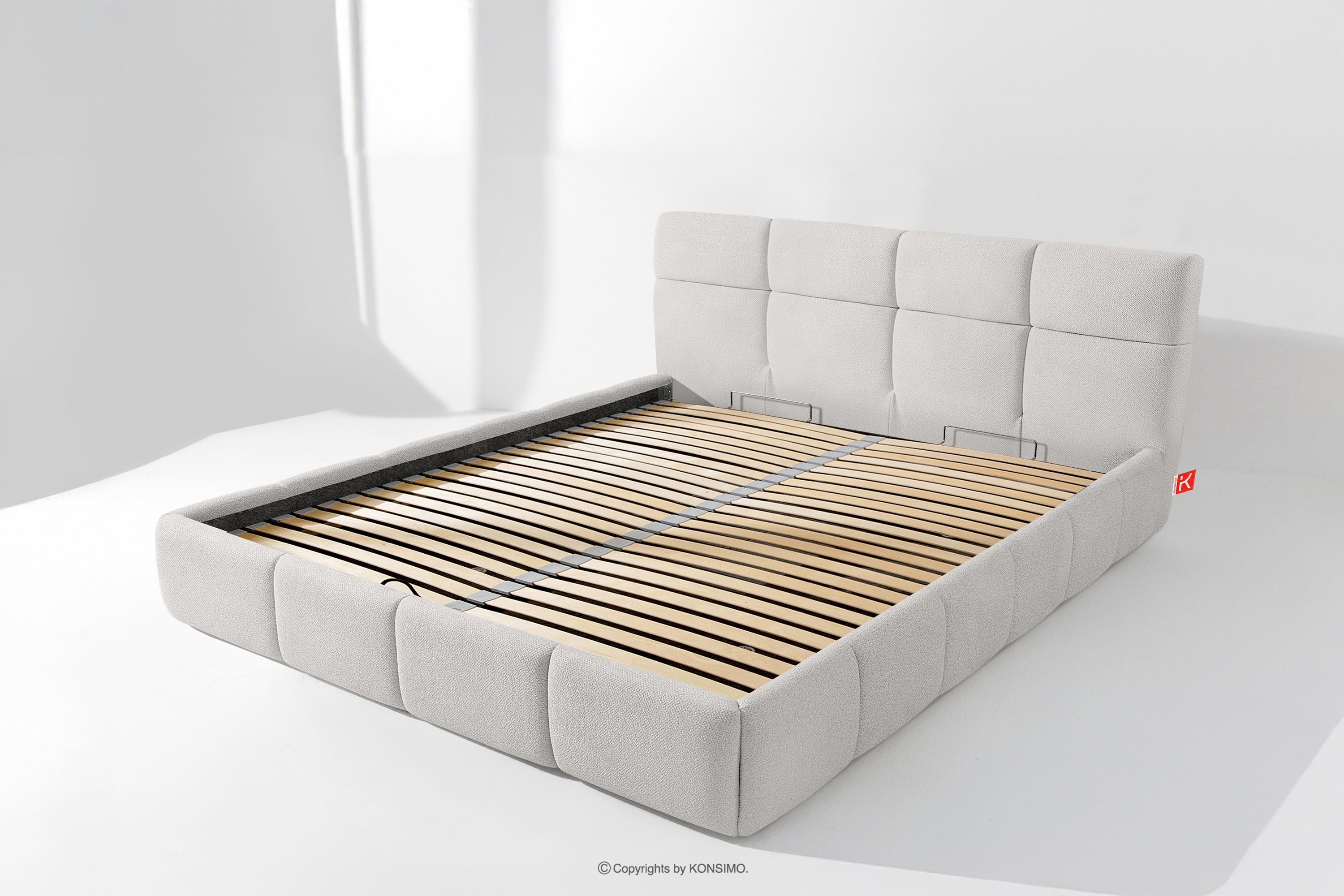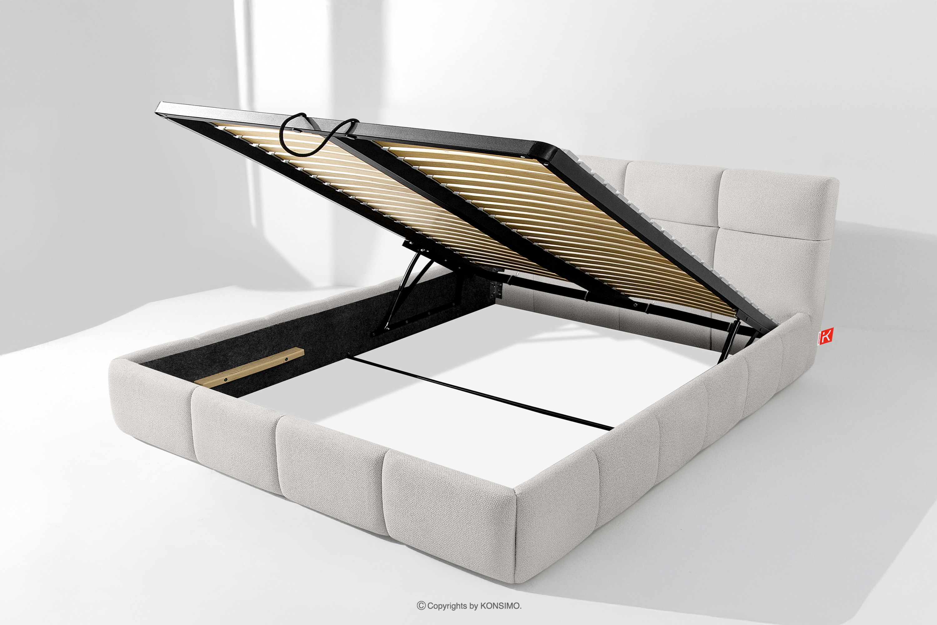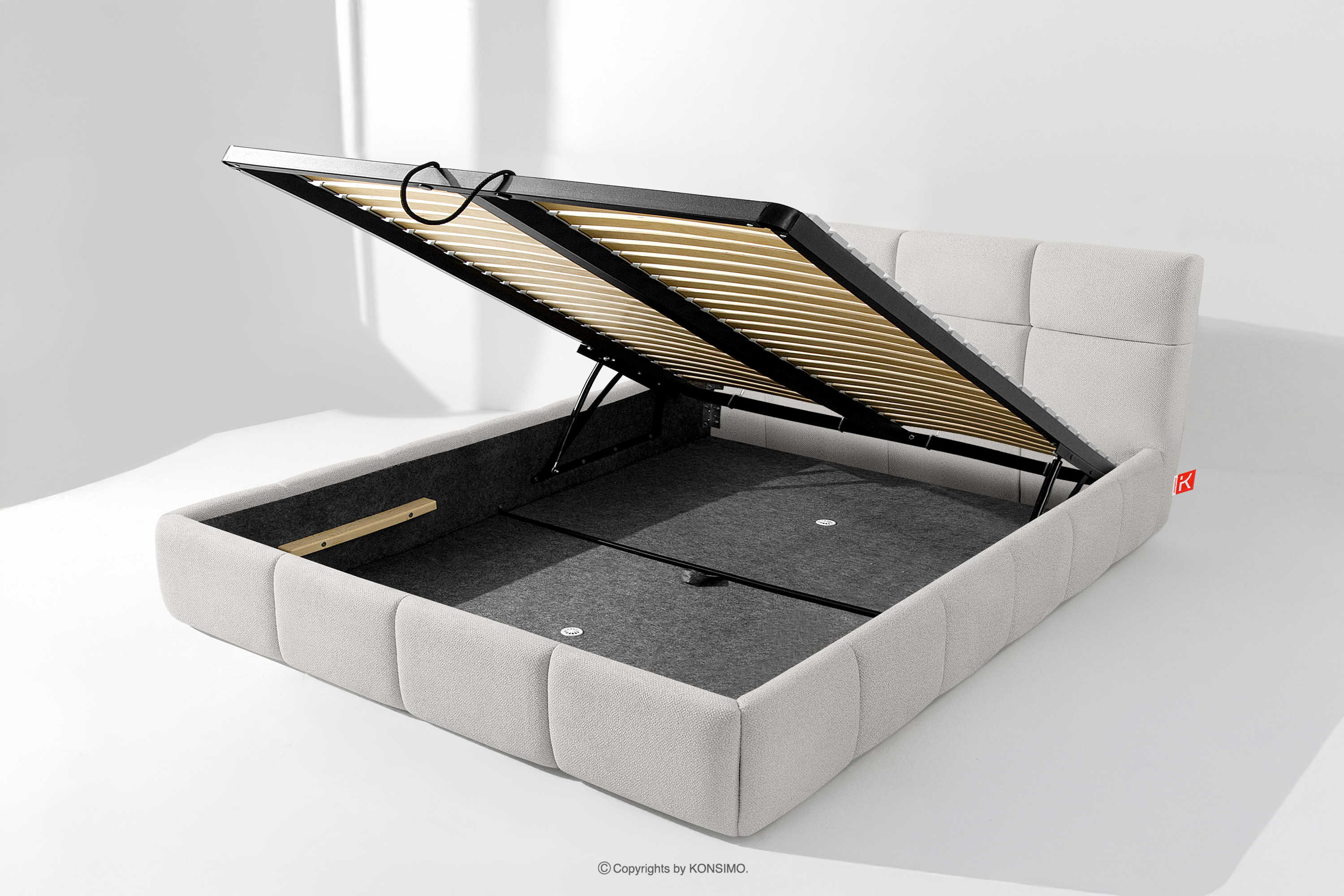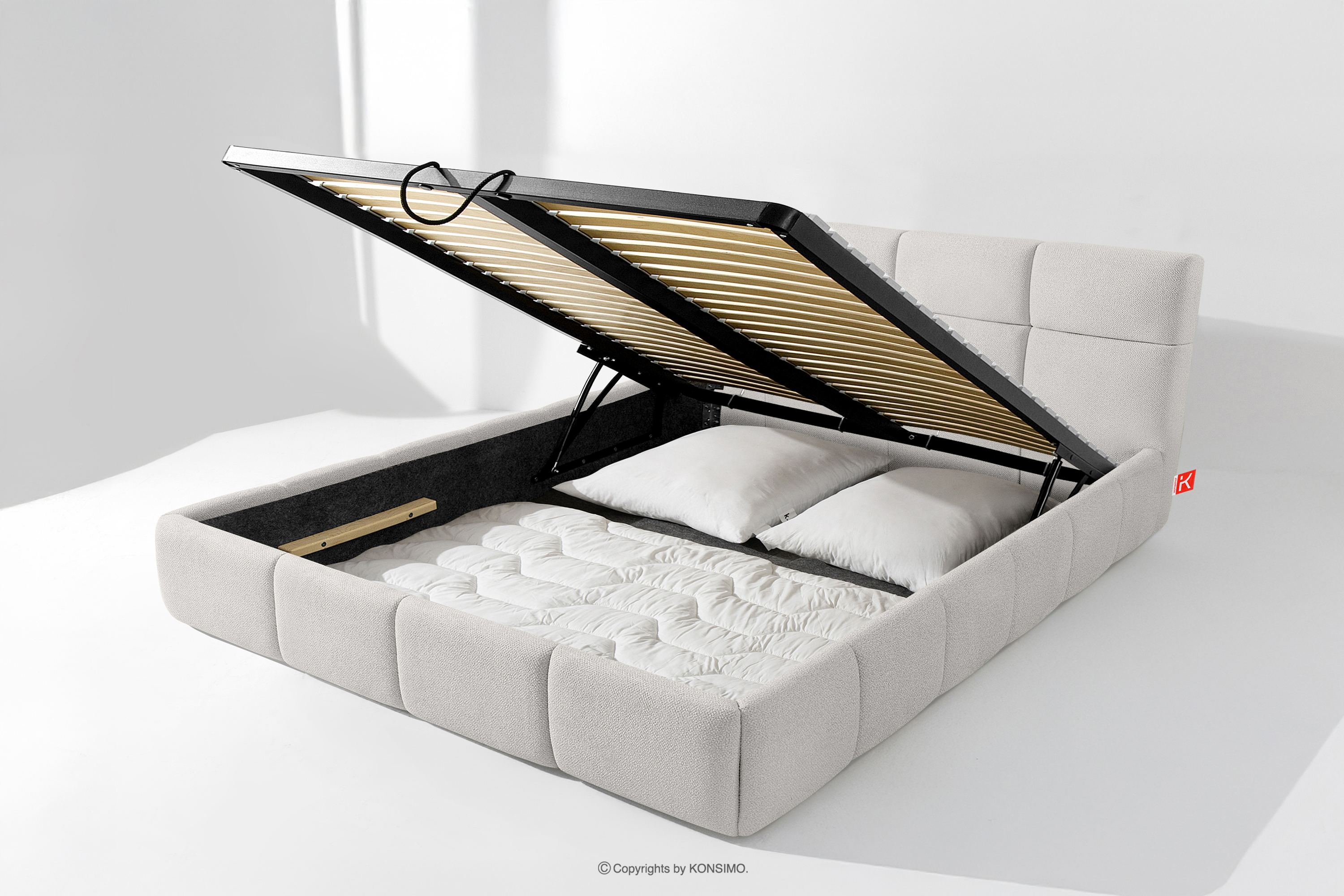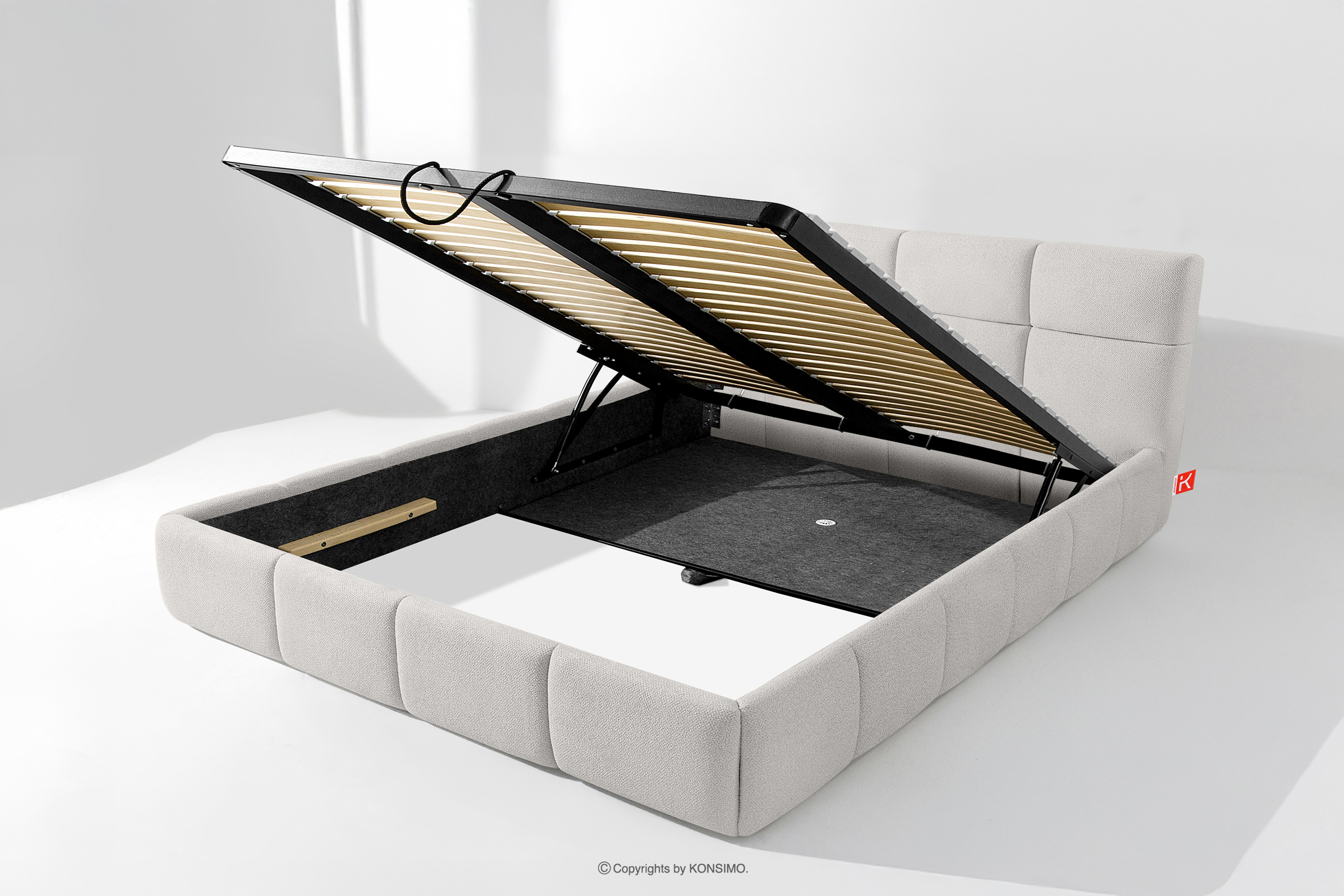 Používateľ má navyše možnosť prispôsobiť si tvrdosť postele - vďaka odnímateľným lamelám možno dosiahnuť mäkší alebo tvrdší základ. Ďalším komfortom je pohodlný kontajner na lôžkoviny, ktorý sa otvára vďaka moderným plynovým fľašiam - bez námahy a plne automaticky. Toto praktické riešenie umožňuje rýchly prístup k uloženej posteľnej bielizni bez toho, aby ste museli ručne zdvíhať ťažký matrac.