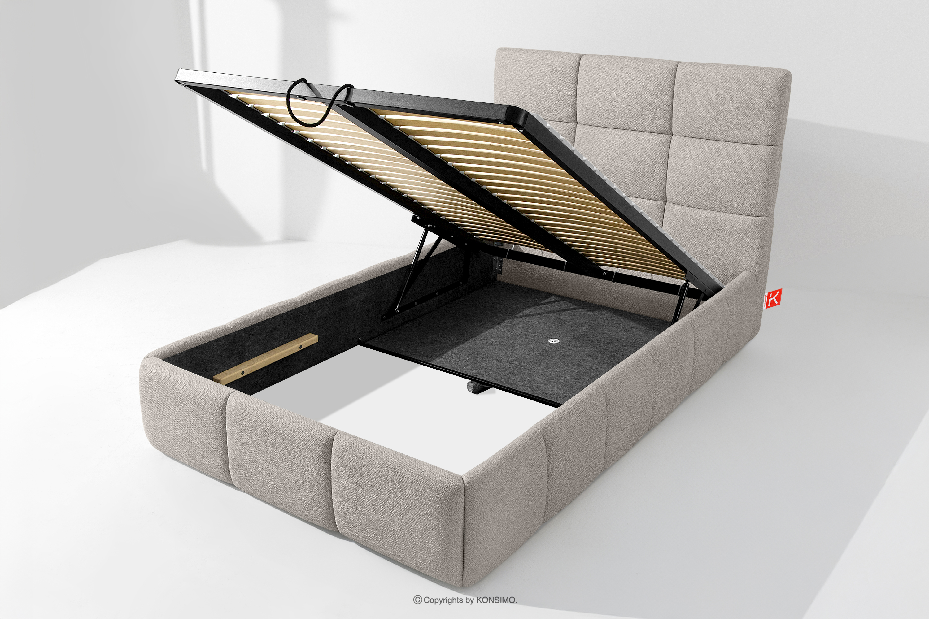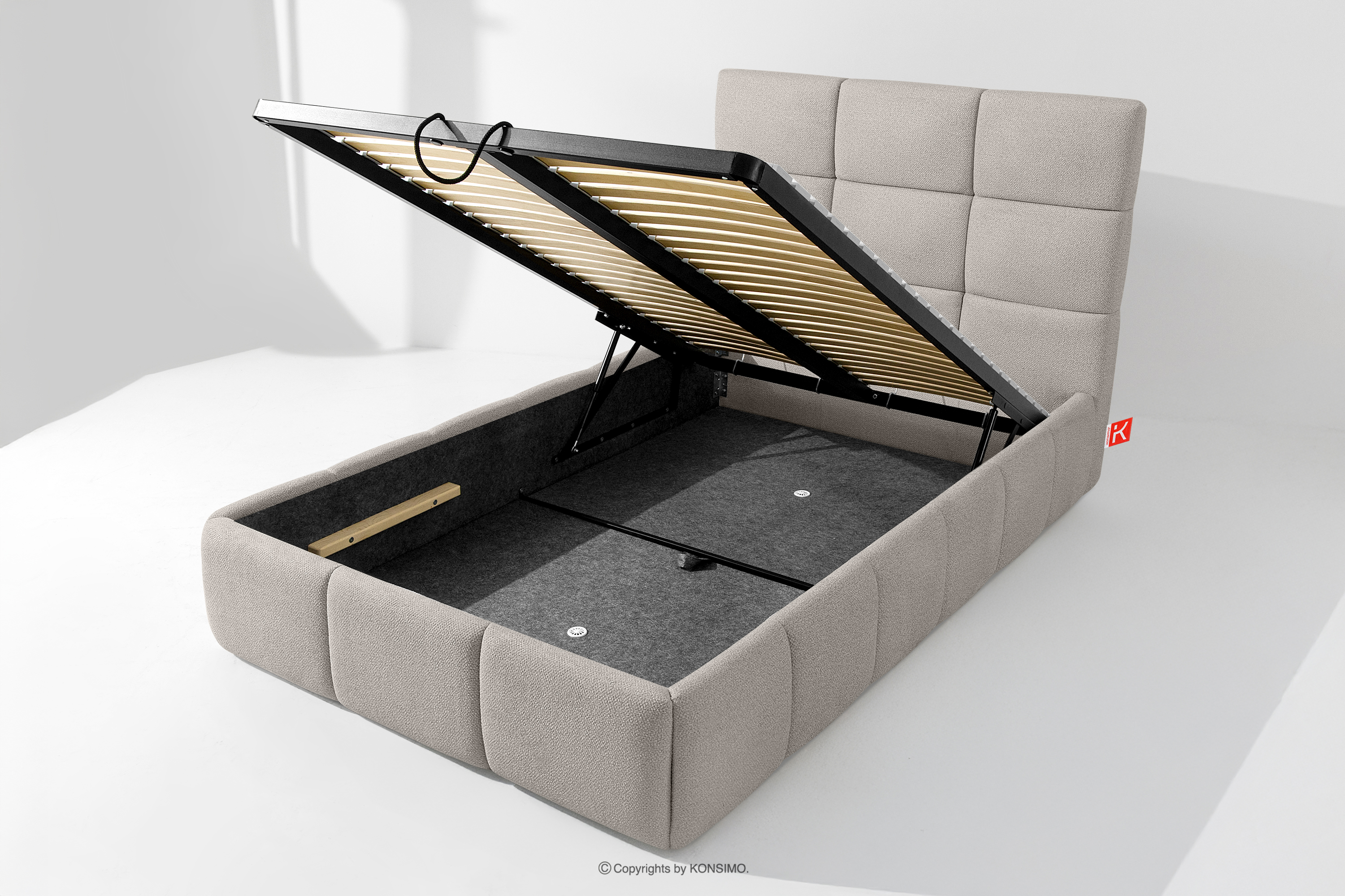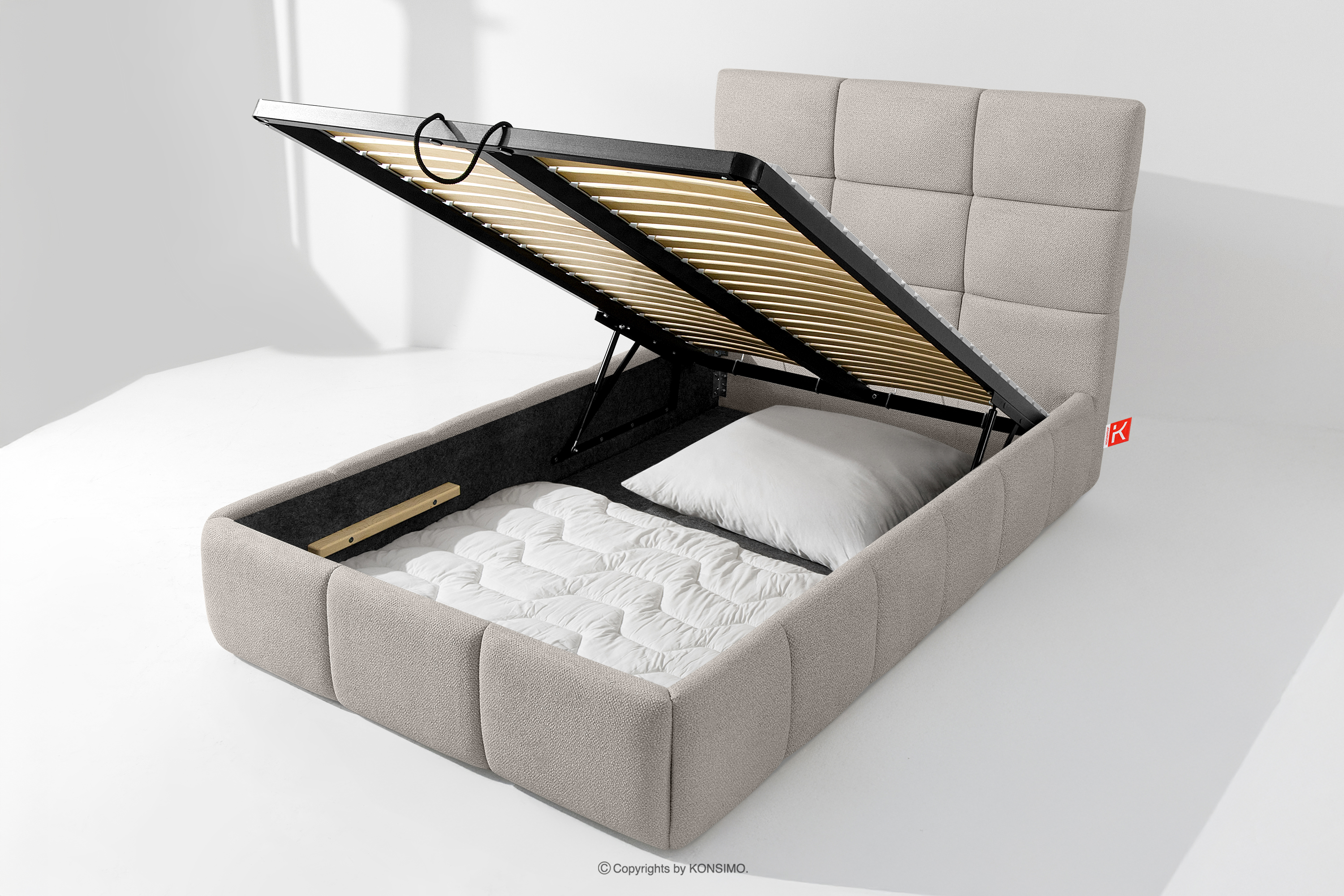 Ďalším komfortom je pohodlný kontajner na lôžkoviny, ktorý sa otvára vďaka moderným plynovým fľašiam - bez námahy a plne automaticky. Toto praktické riešenie umožňuje rýchly prístup k uloženej posteľnej bielizni bez nutnosti ručného zdvíhania ťažkého matraca.