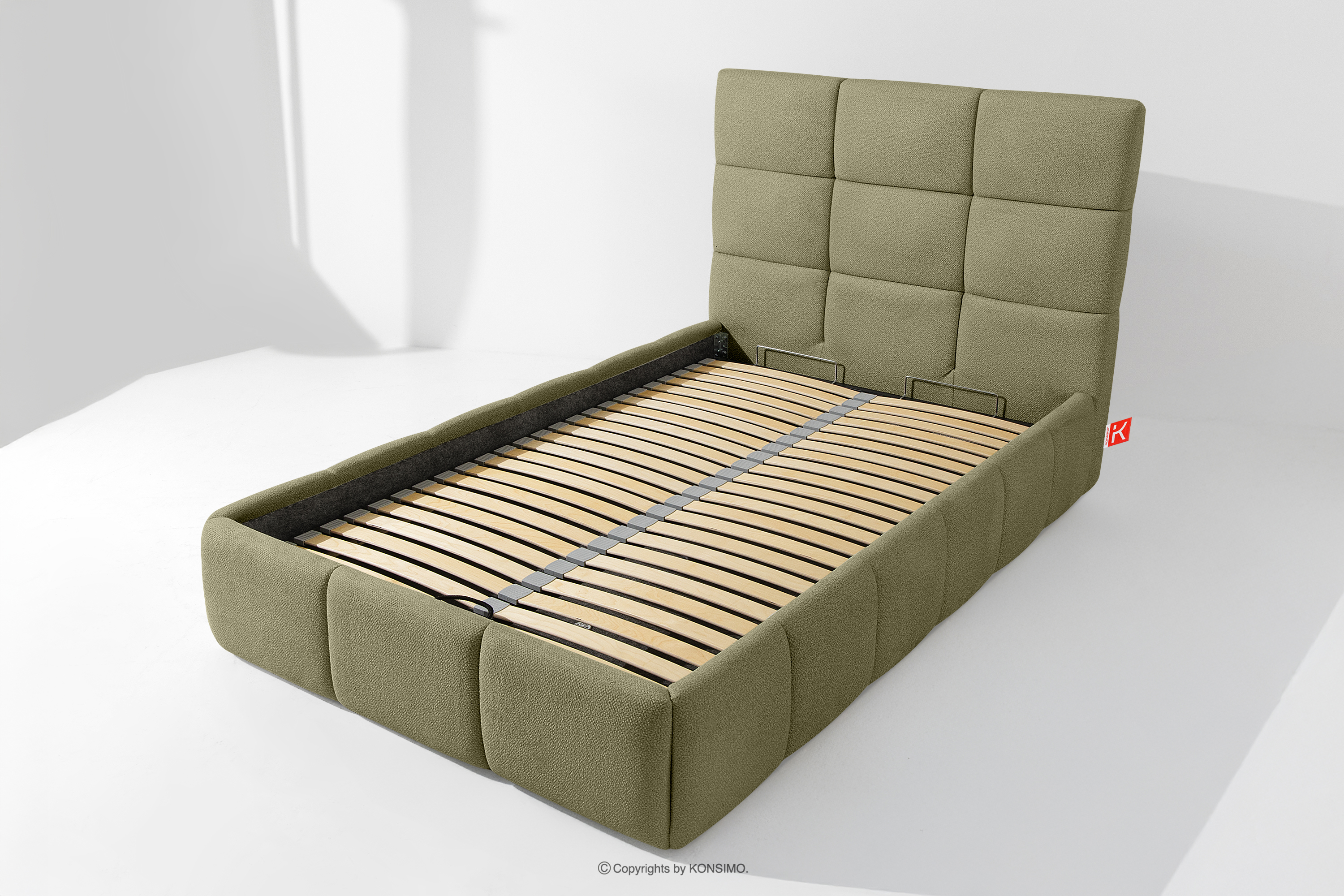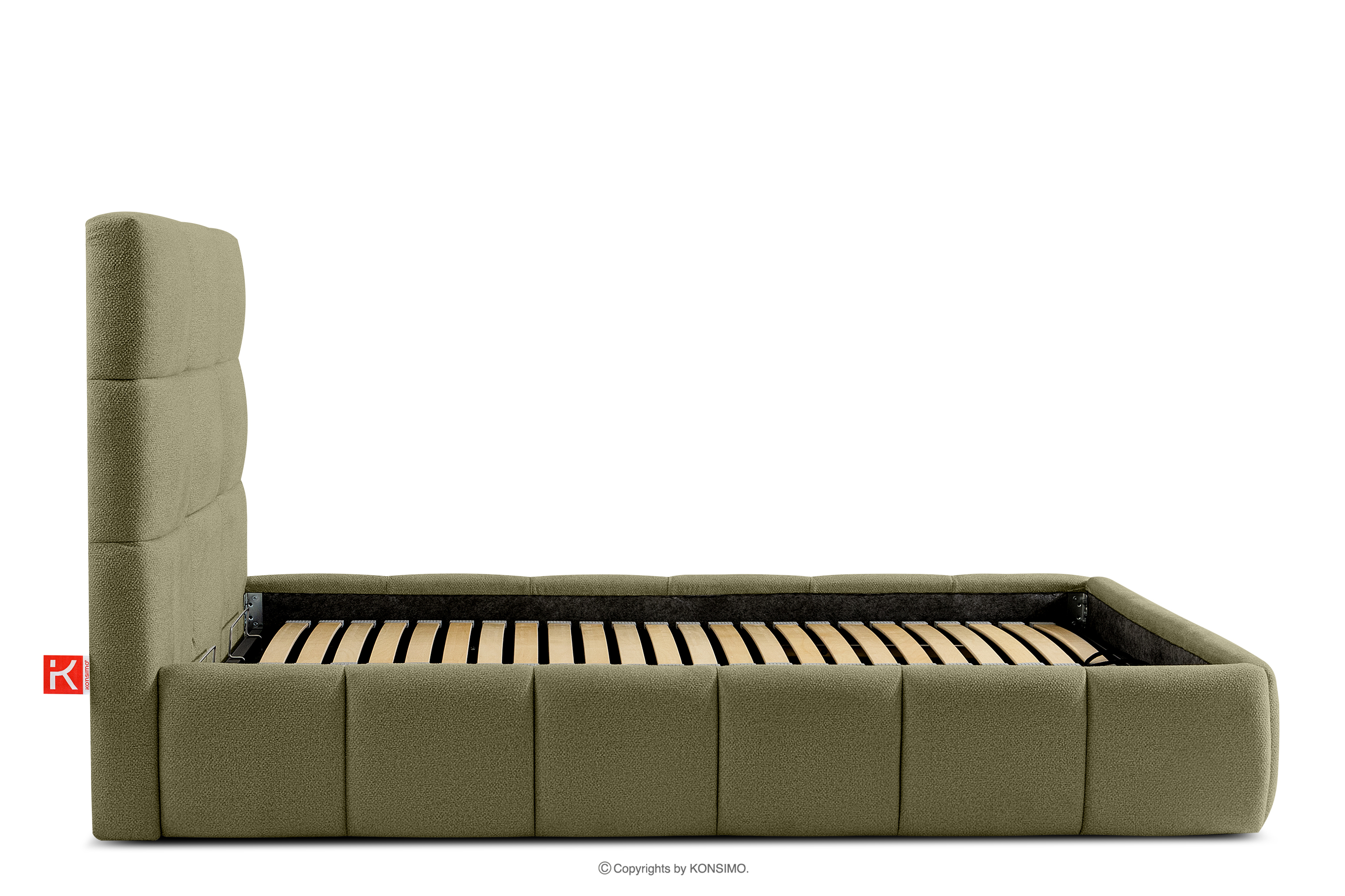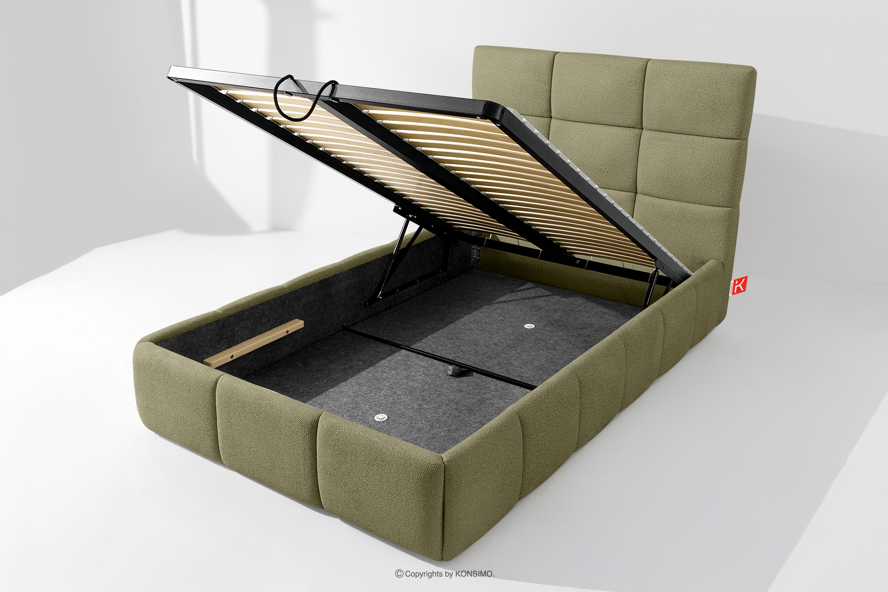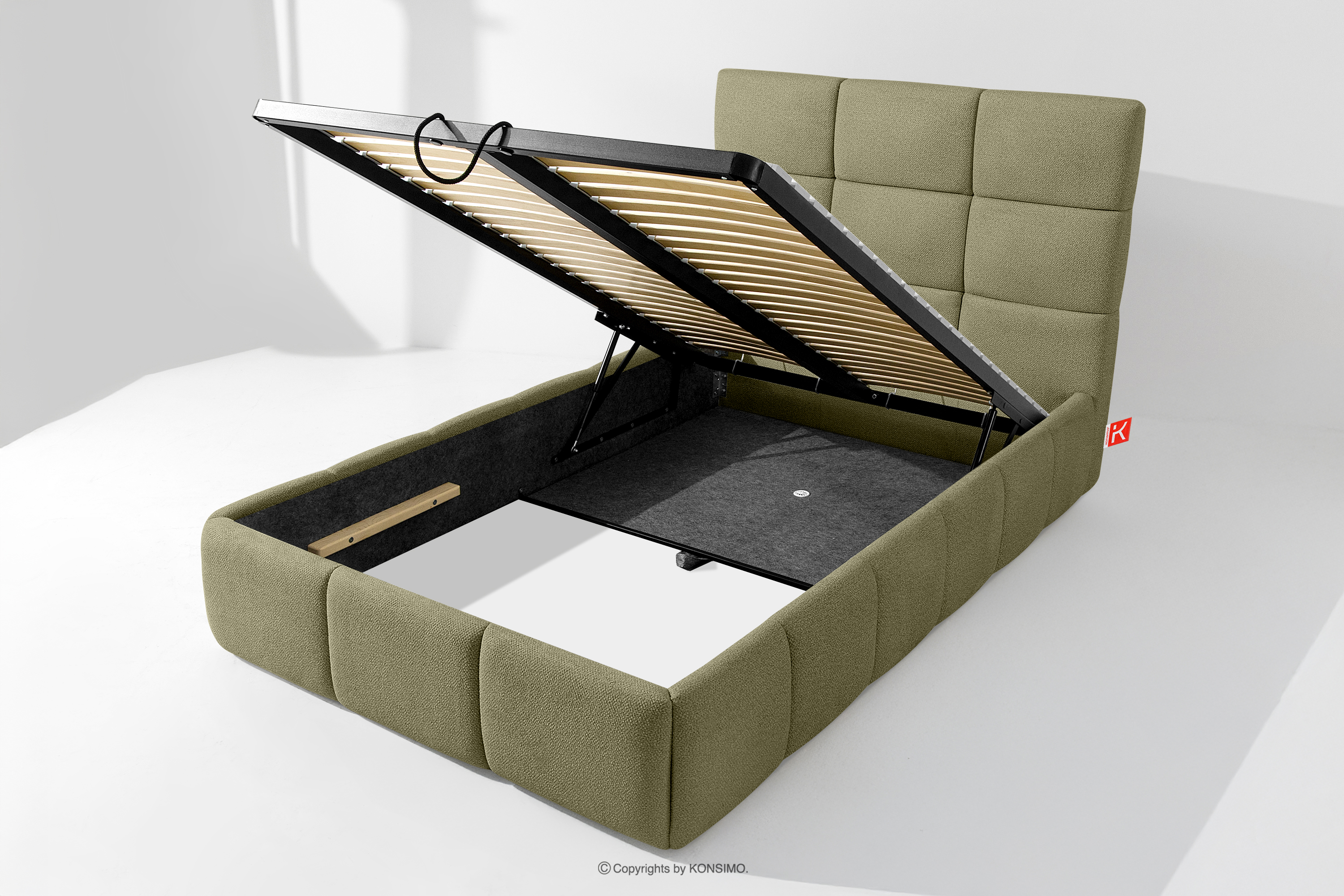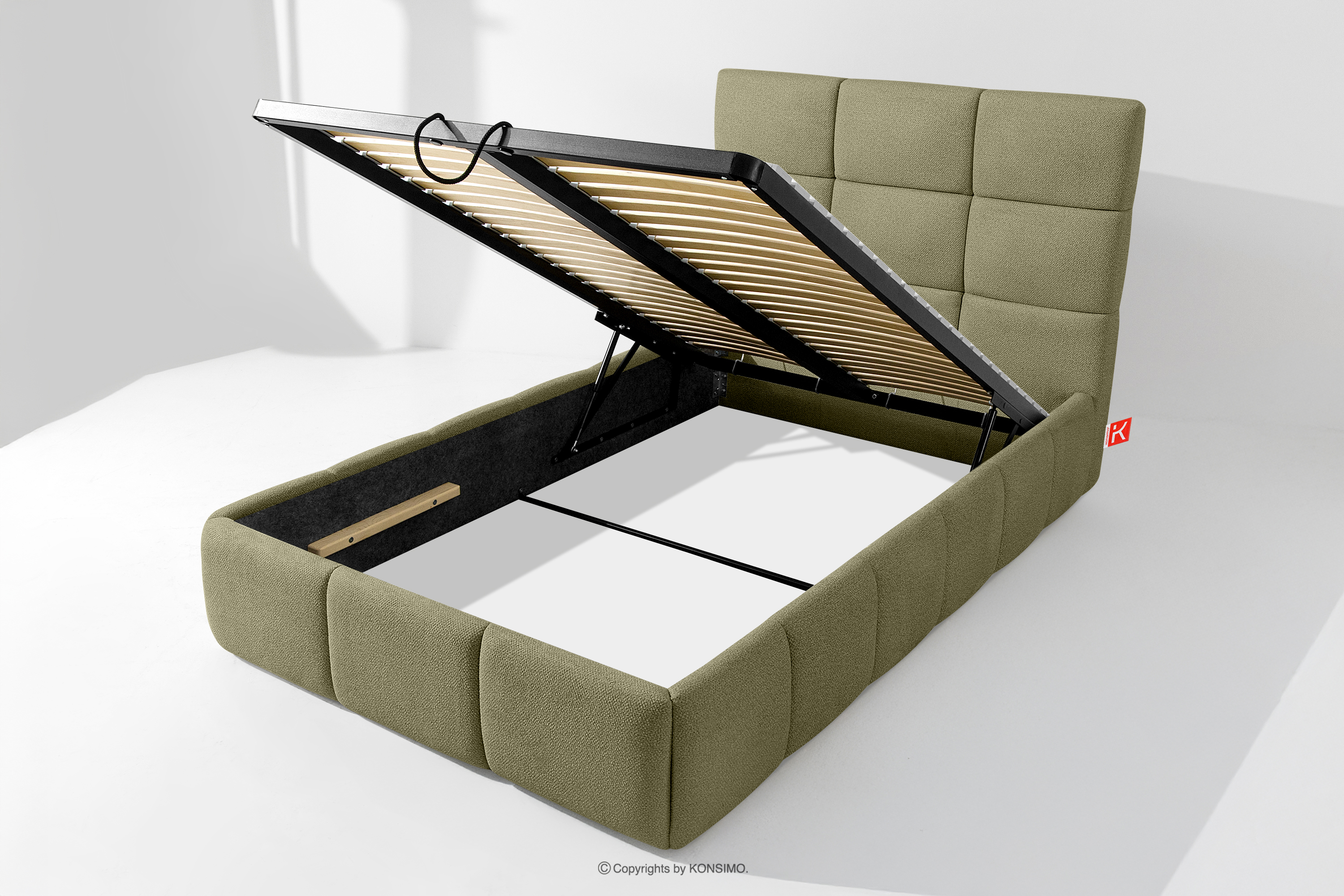 Ďalším komfortom je pohodlný kontajner na lôžkoviny, ktorý sa otvára vďaka moderným plynovým fľašiam - bez námahy a plne automaticky. Toto praktické riešenie umožňuje rýchly prístup k uloženej posteľnej bielizni bez nutnosti ručného zdvíhania ťažkého matraca.