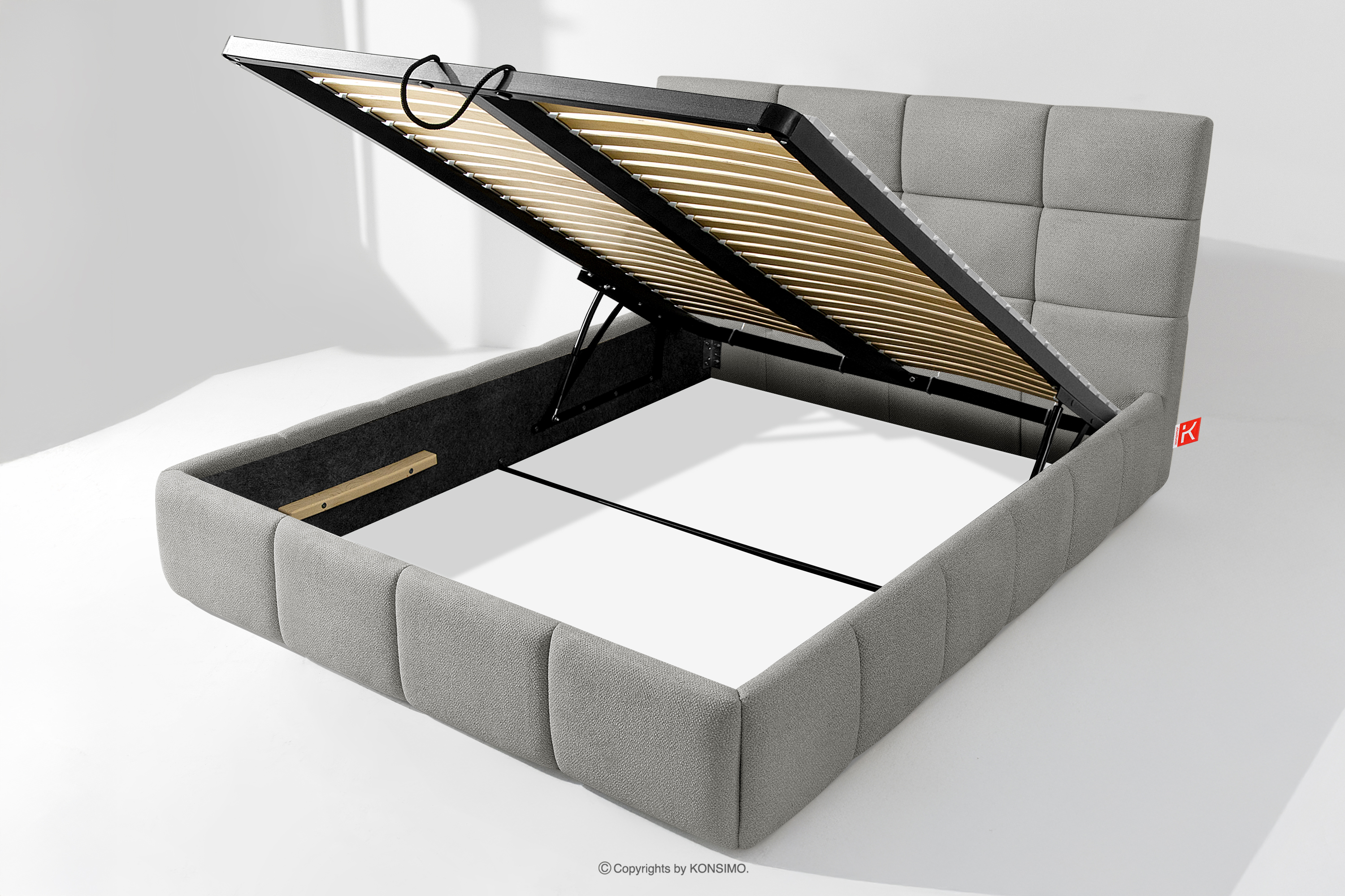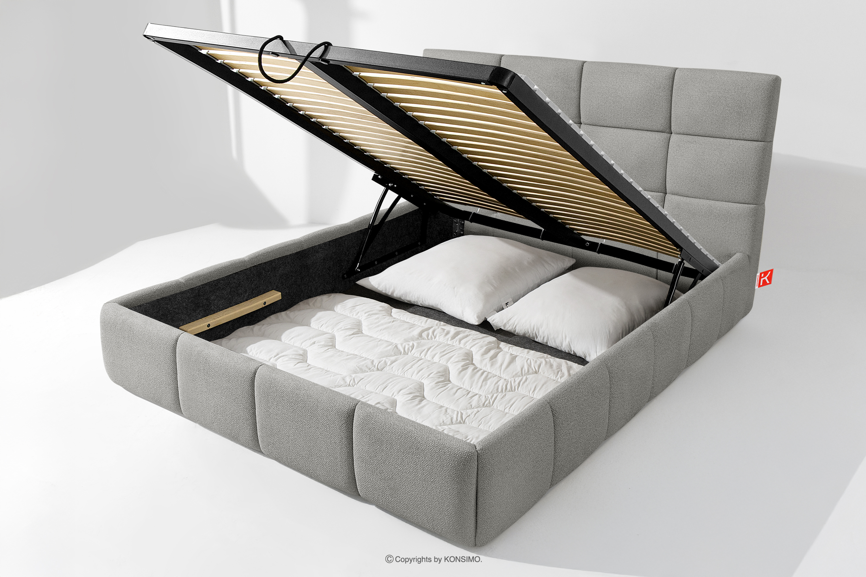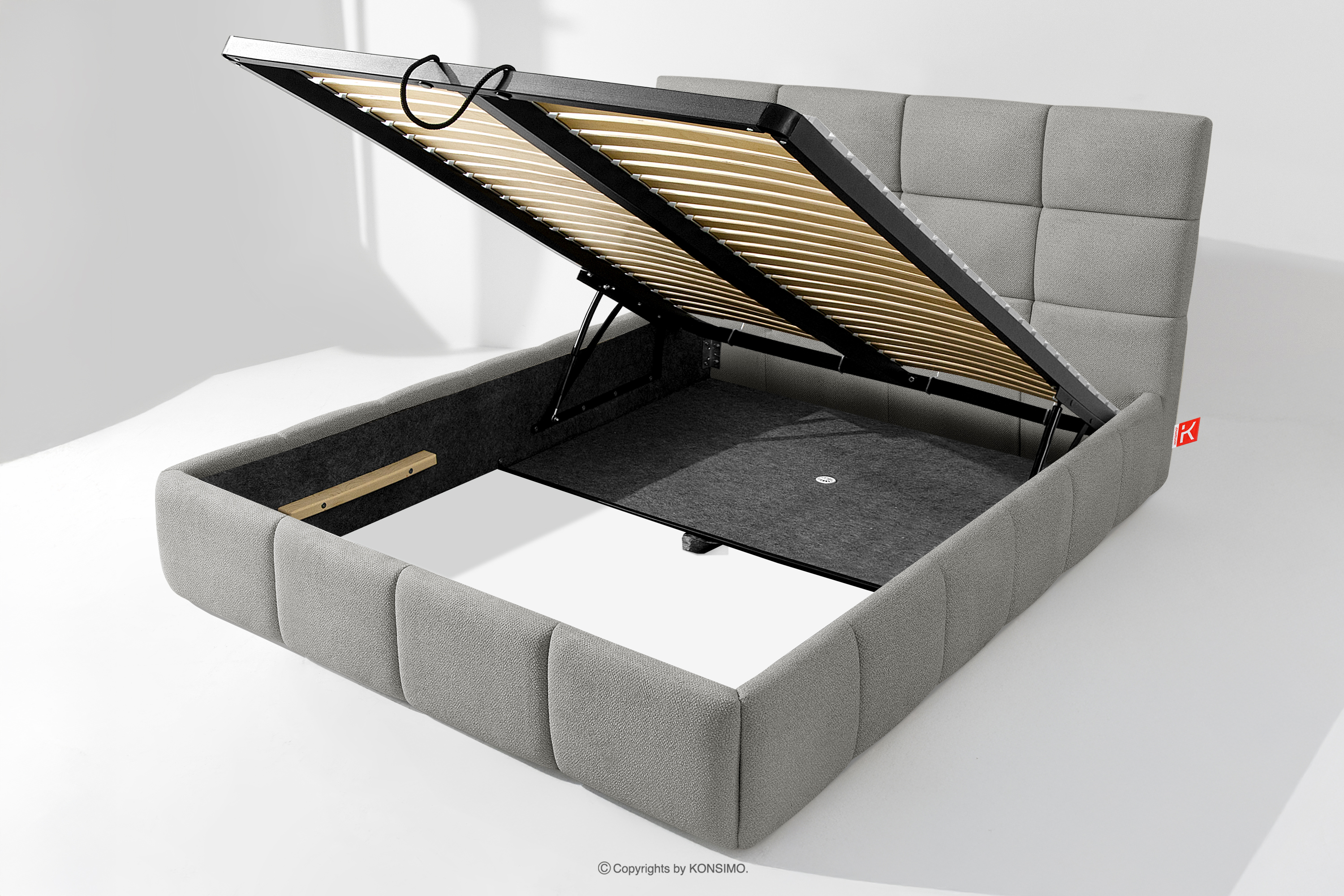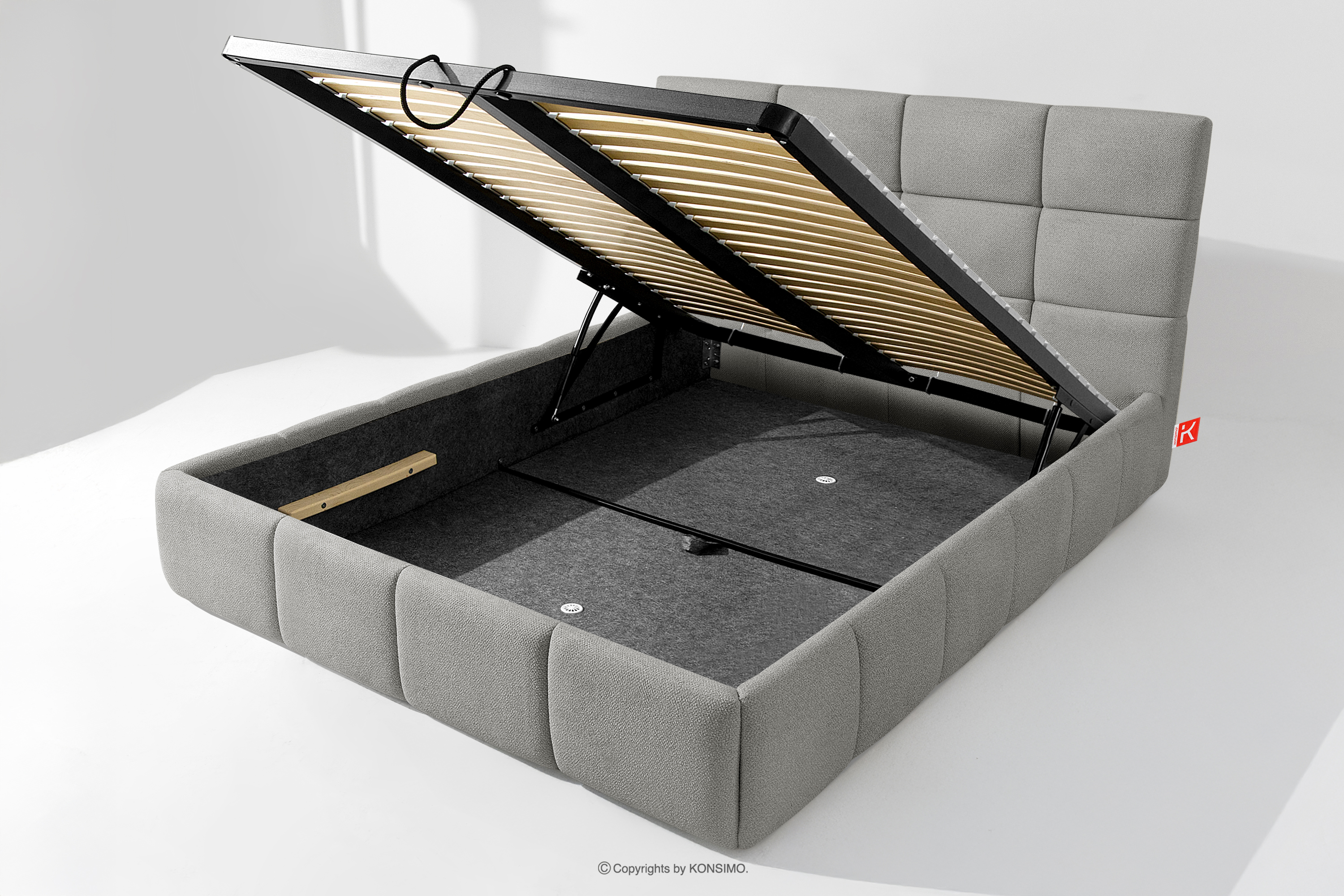 Ďalším komfortom je pohodlný kontajner na lôžkoviny, ktorý sa otvára vďaka moderným plynovým fľašiam - bez námahy a plne automaticky. Toto praktické riešenie umožňuje rýchly prístup k uloženej posteľnej bielizni bez nutnosti ručného zdvíhania ťažkého matraca.