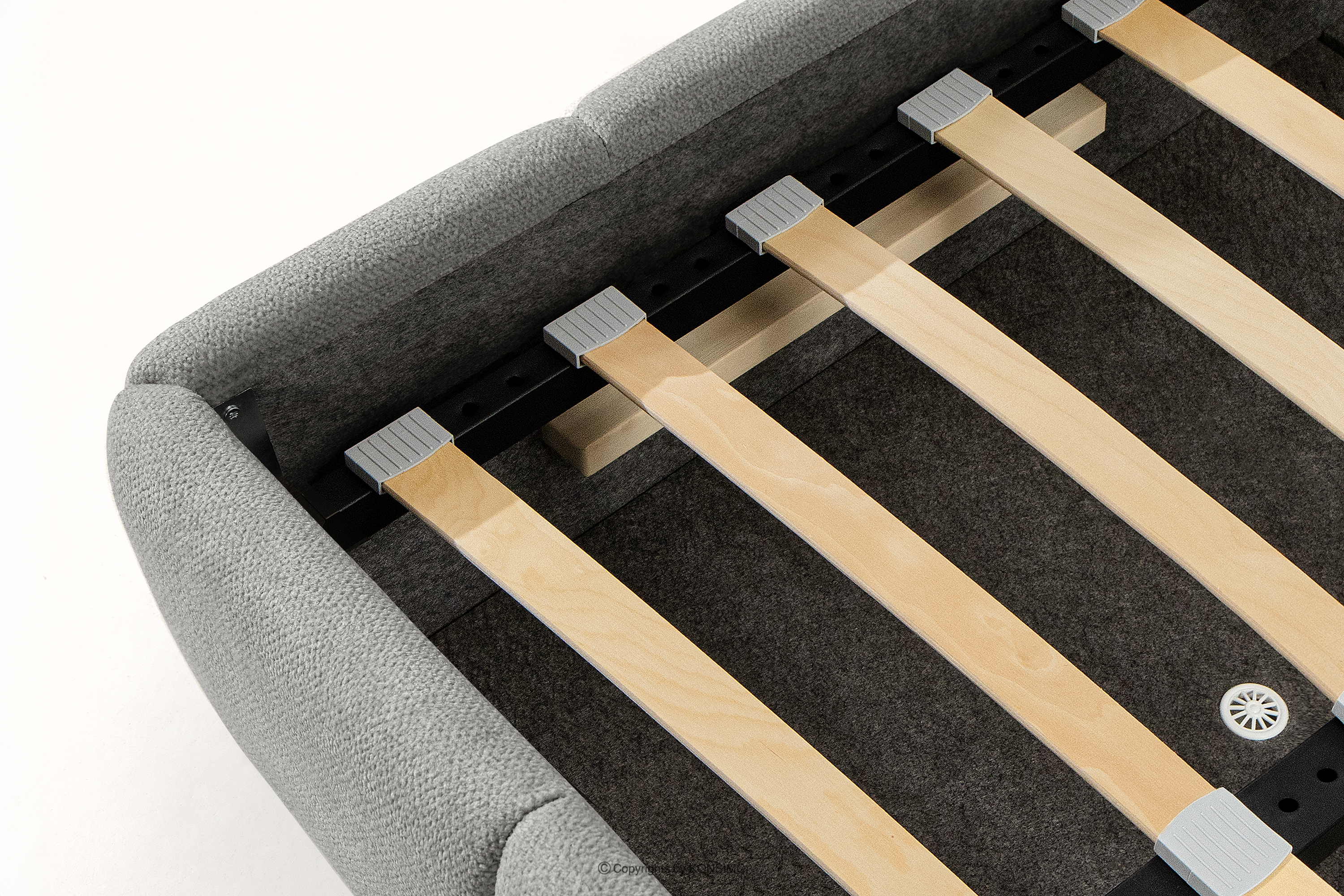 Posteľ s priemerom 140 cm z látky boucle gray spája minimalistický dizajn s maximálnym pohodlím. Vďaka svojmu jedinečnému tvaru nielenže pozoruhodne vyzerá, ale ponúka aj pohodlie na najvyššej úrovni. Posteľ je vybavená pevným rámom z pružných drevených lamiel, ktoré poskytujú optimálnu oporu matracu a prispôsobujú sa prirodzeným pohybom tela. Navyše má používateľ možnosť prispôsobiť si tvrdosť postele - vďaka odnímateľným lamelám možno dosiahnuť mäkší alebo tvrdší základ.