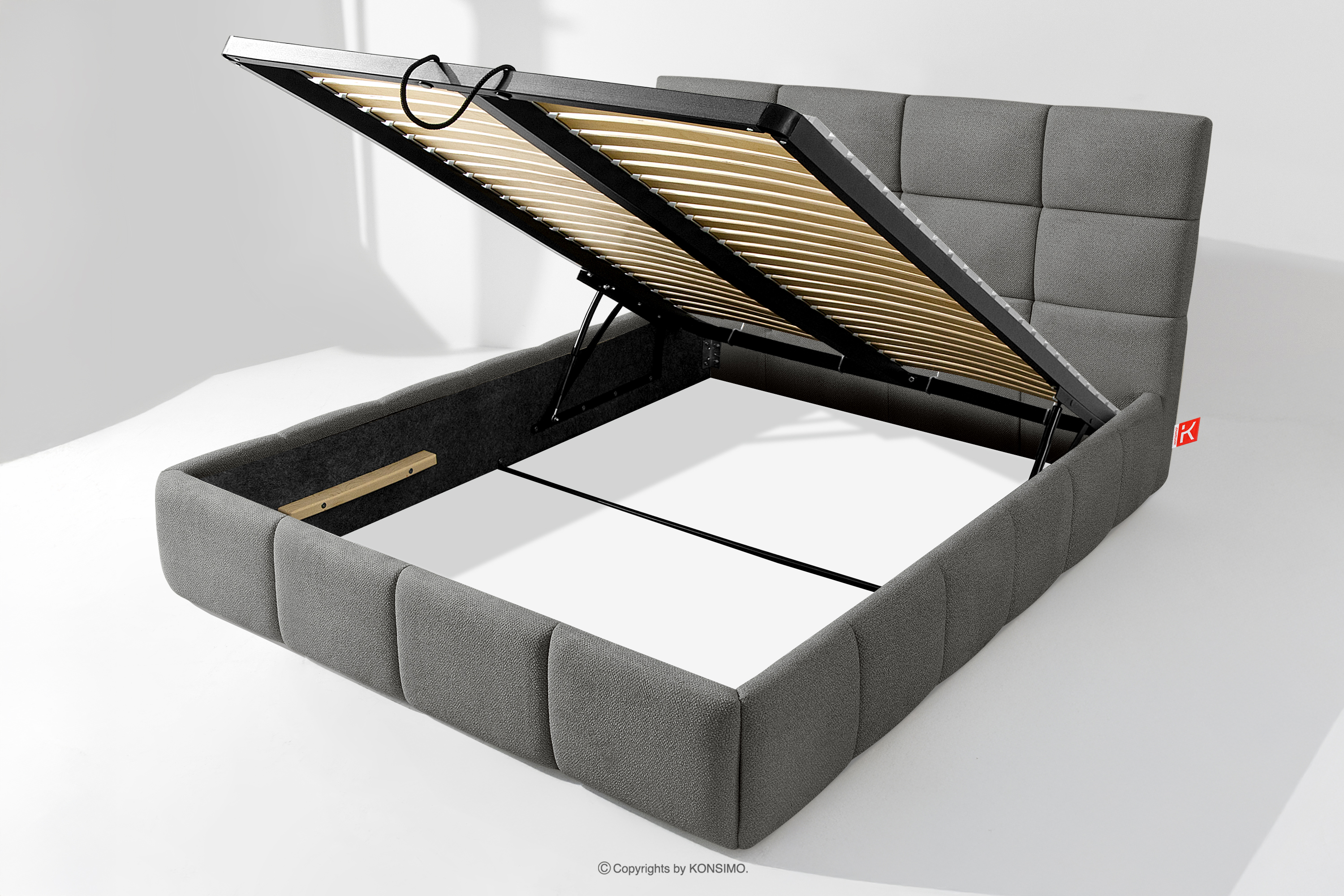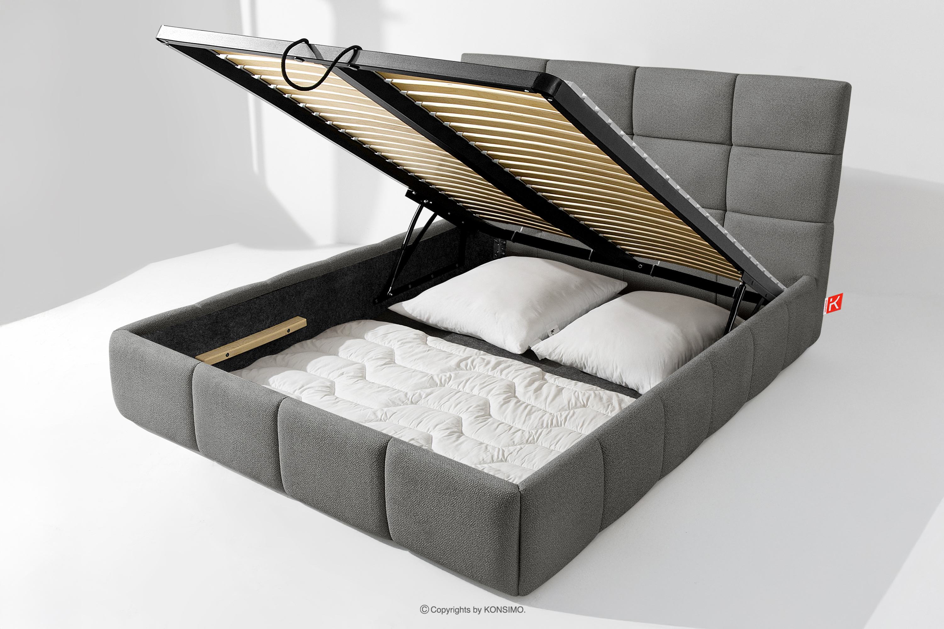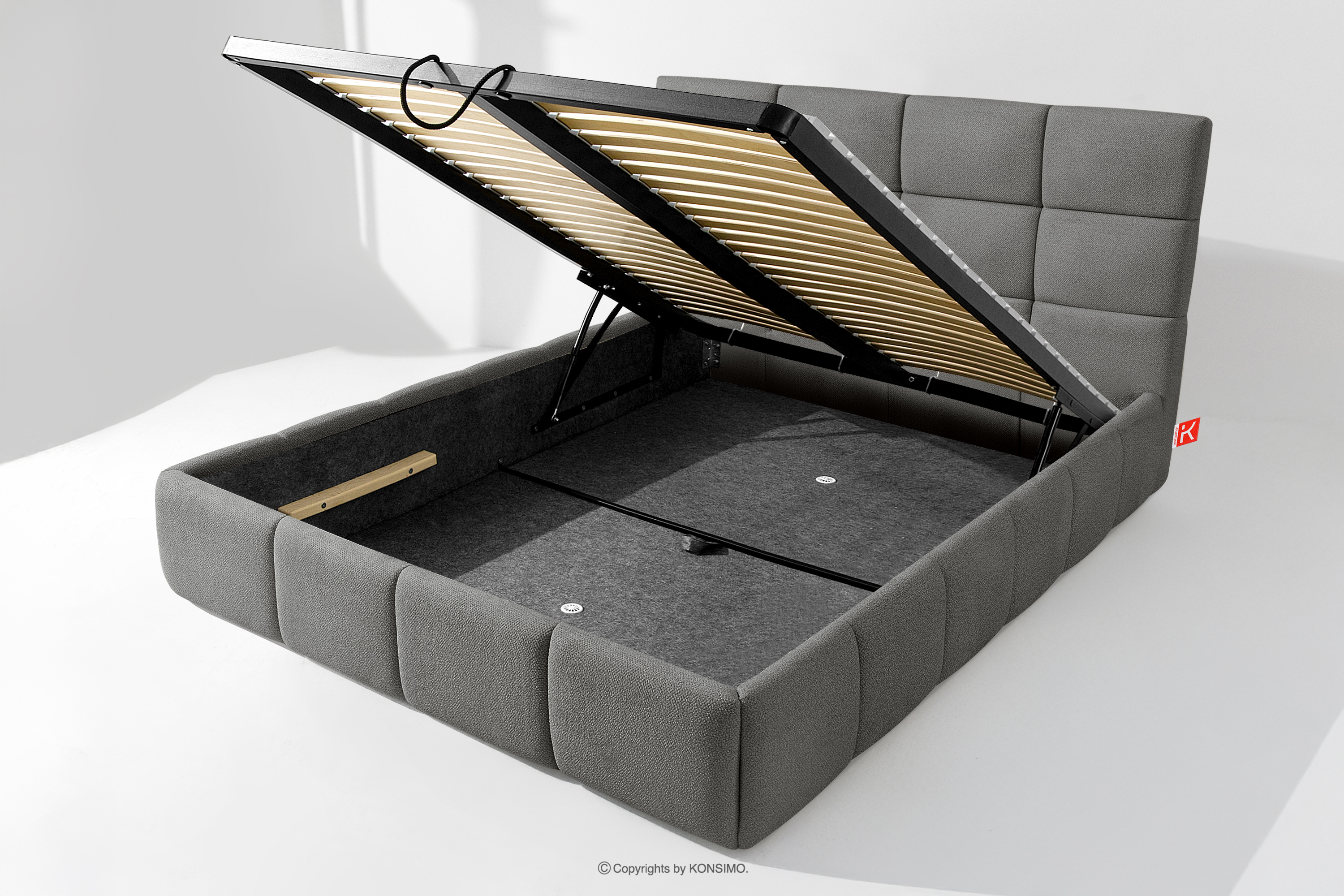 Ďalším komfortom je pohodlný kontajner na lôžkoviny, ktorý sa otvára vďaka moderným plynovým fľašiam - bez námahy a plne automaticky. Toto praktické riešenie umožňuje rýchly prístup k uloženej posteľnej bielizni bez nutnosti ručného zdvíhania ťažkého matraca.