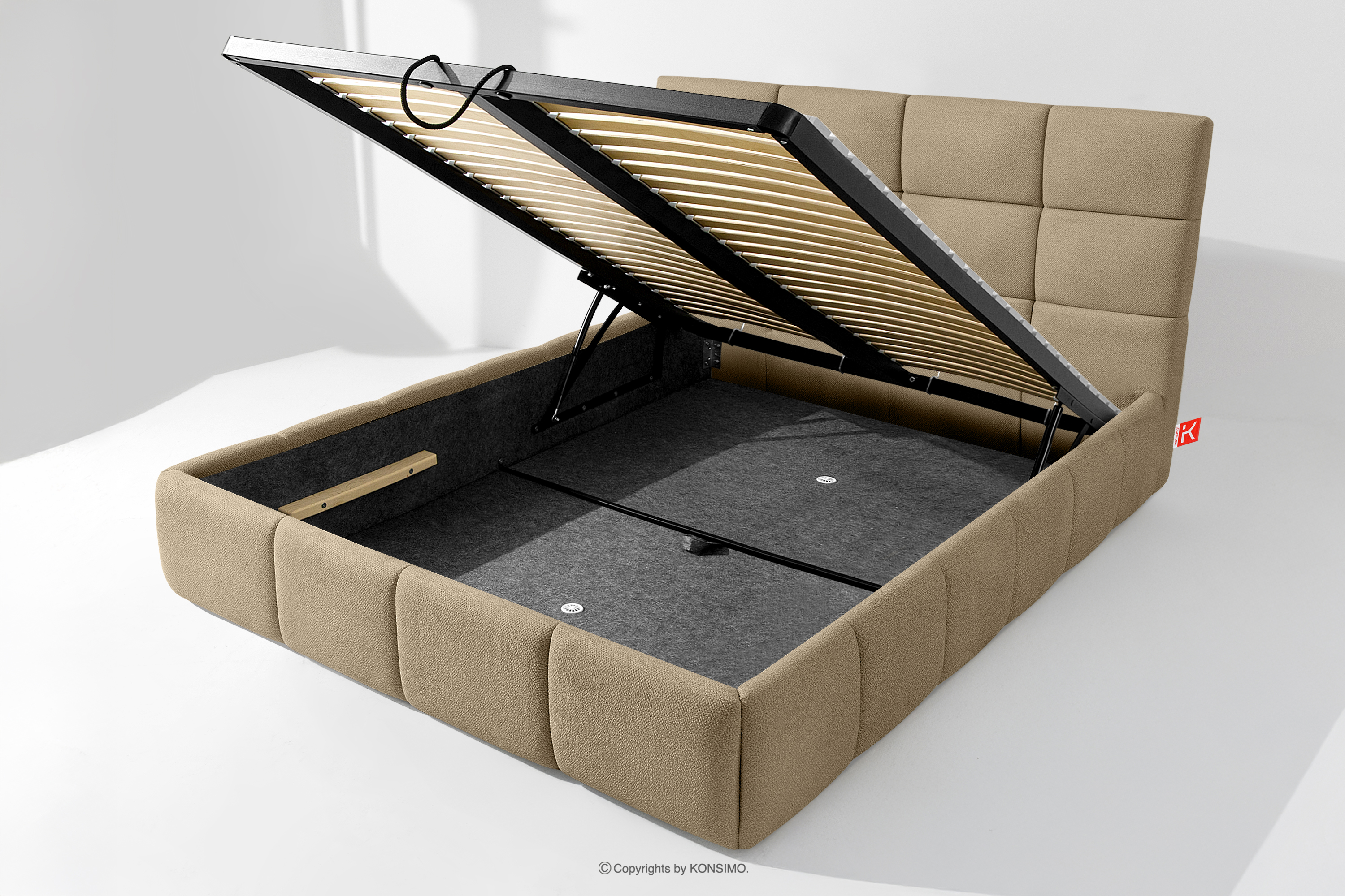 Ďalším komfortom je pohodlný kontajner na lôžkoviny, ktorý sa otvára vďaka moderným plynovým fľašiam - bez námahy a plne automaticky. Toto praktické riešenie umožňuje rýchly prístup k uloženej posteľnej bielizni bez nutnosti ručného zdvíhania ťažkého matraca.