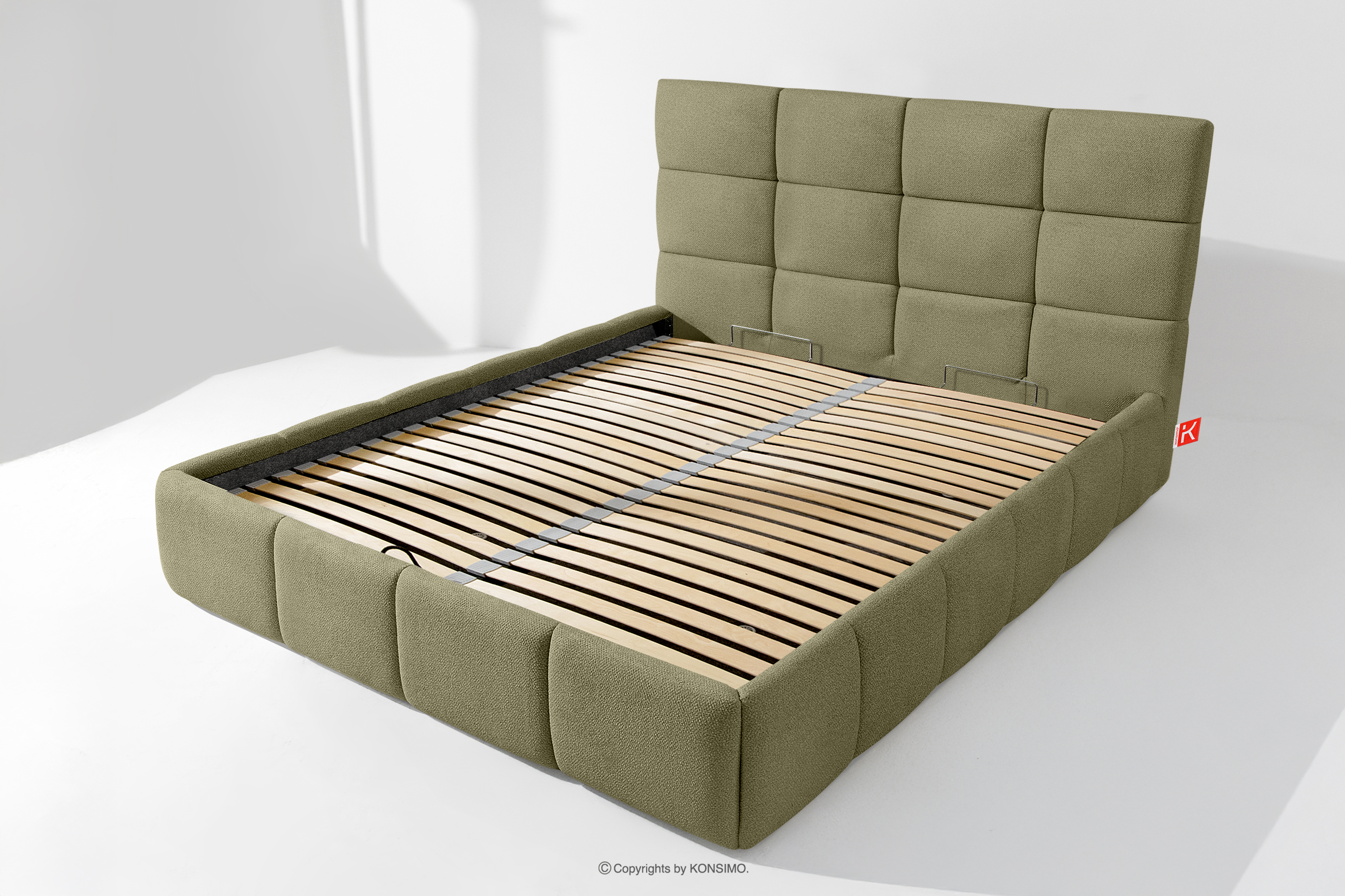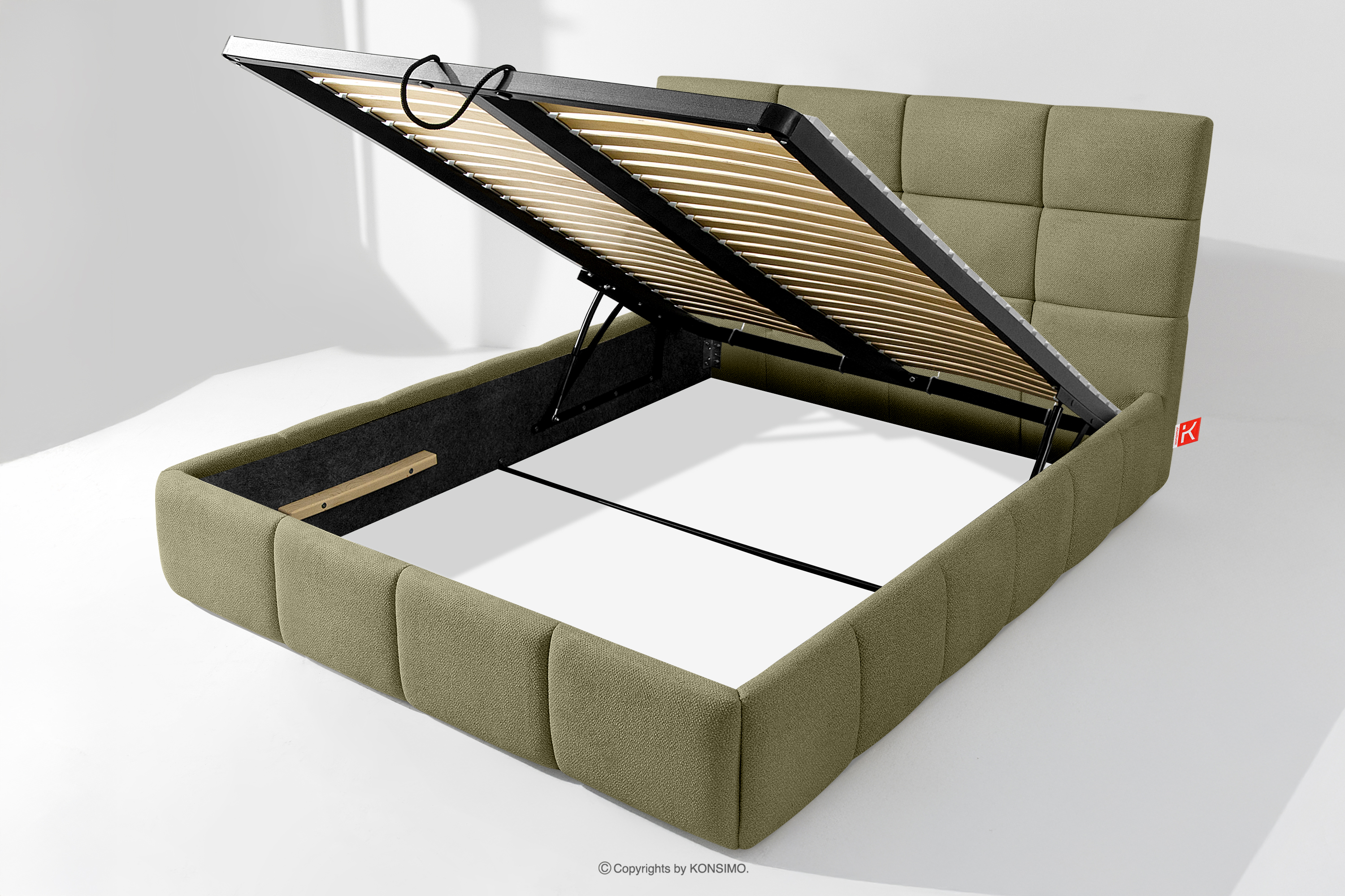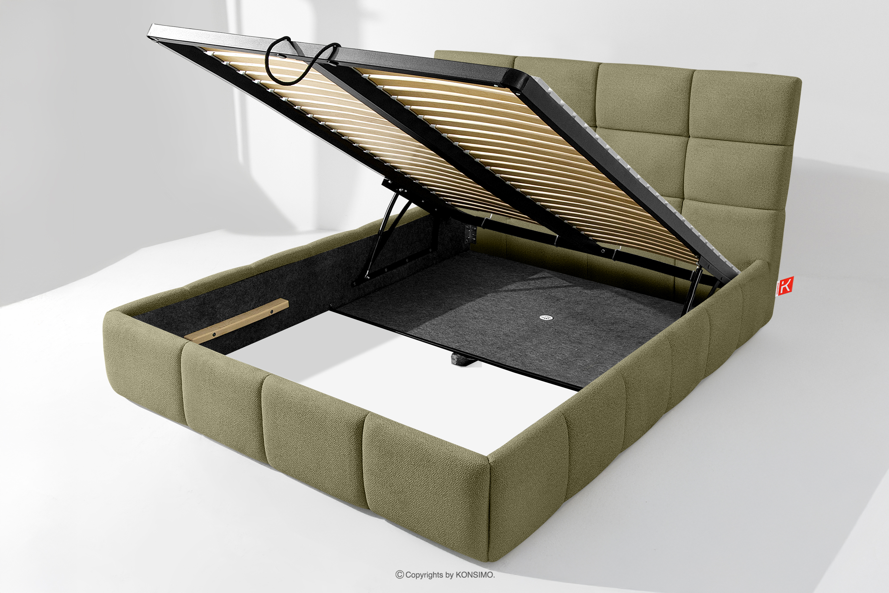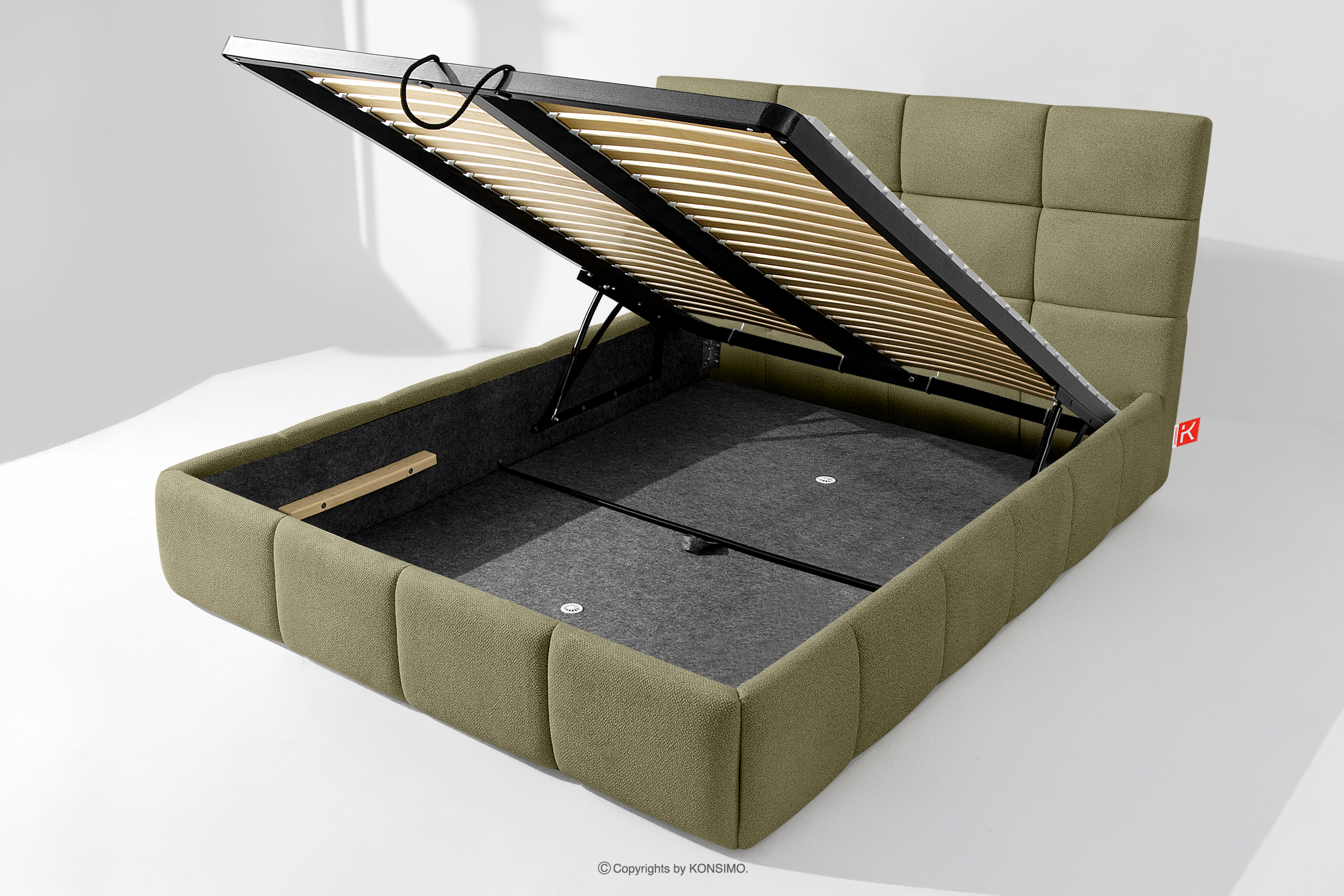 Ďalším komfortom je pohodlný kontajner na lôžkoviny, ktorý sa otvára vďaka moderným plynovým fľašiam - bez námahy a plne automaticky. Toto praktické riešenie umožňuje rýchly prístup k uloženej posteľnej bielizni bez nutnosti ručného zdvíhania ťažkého matraca.