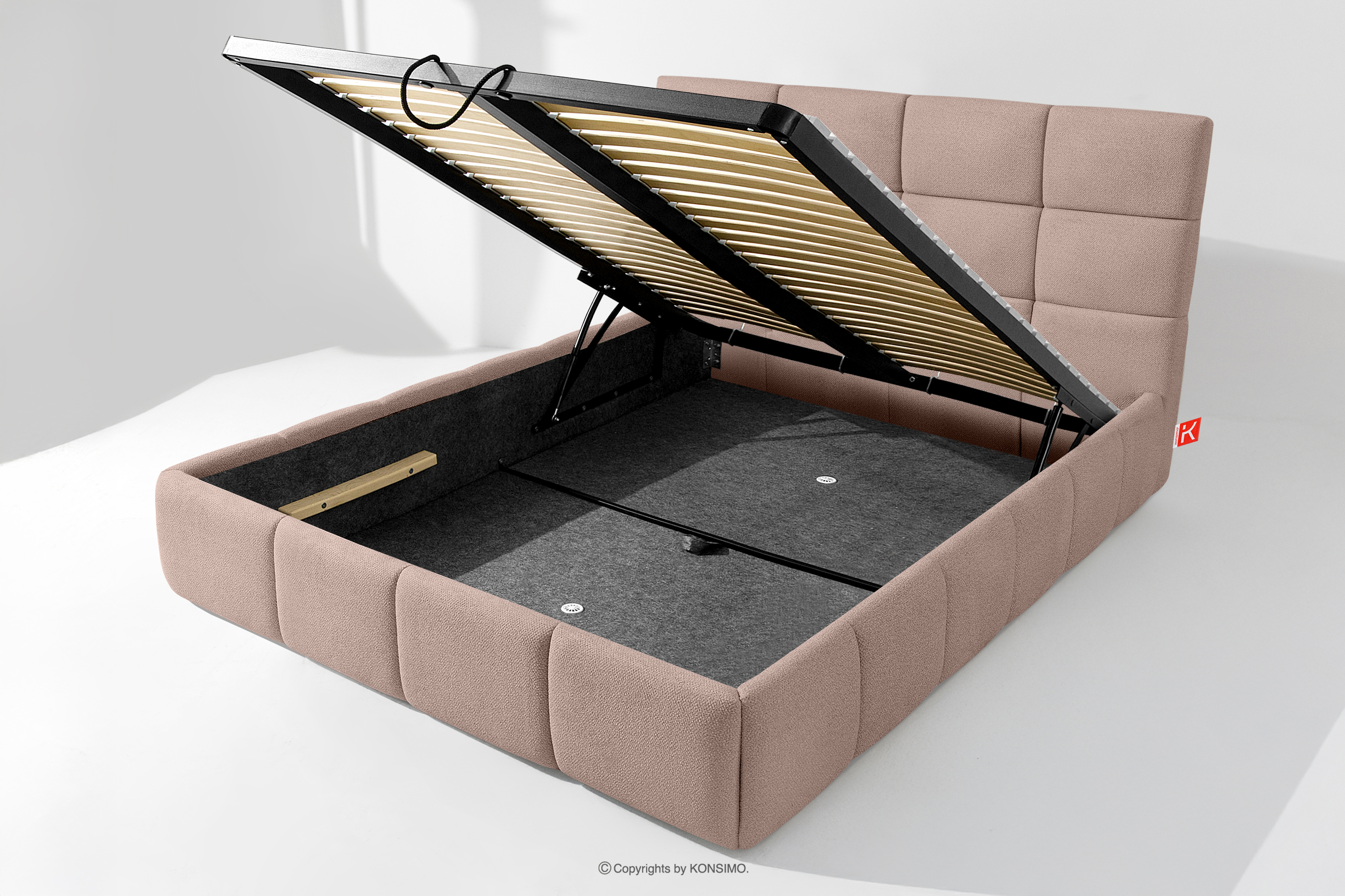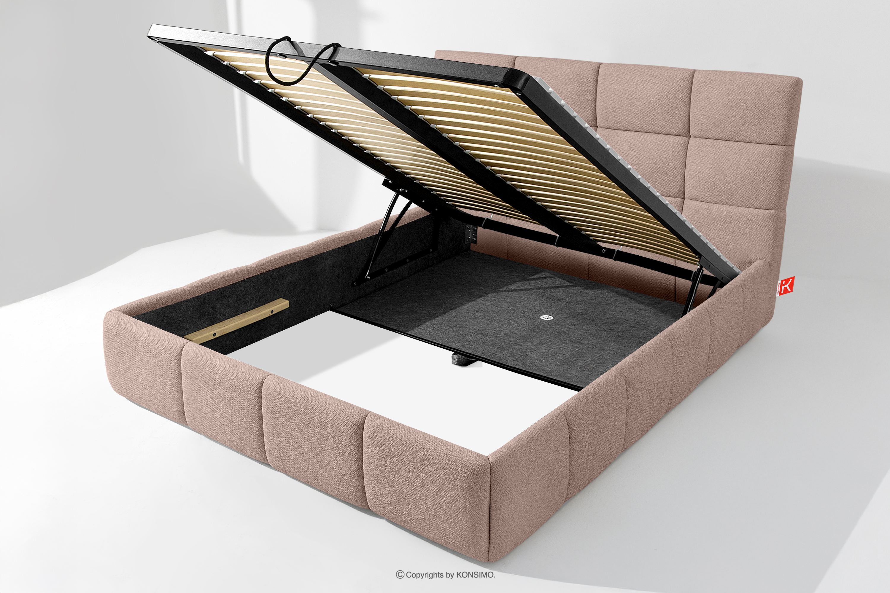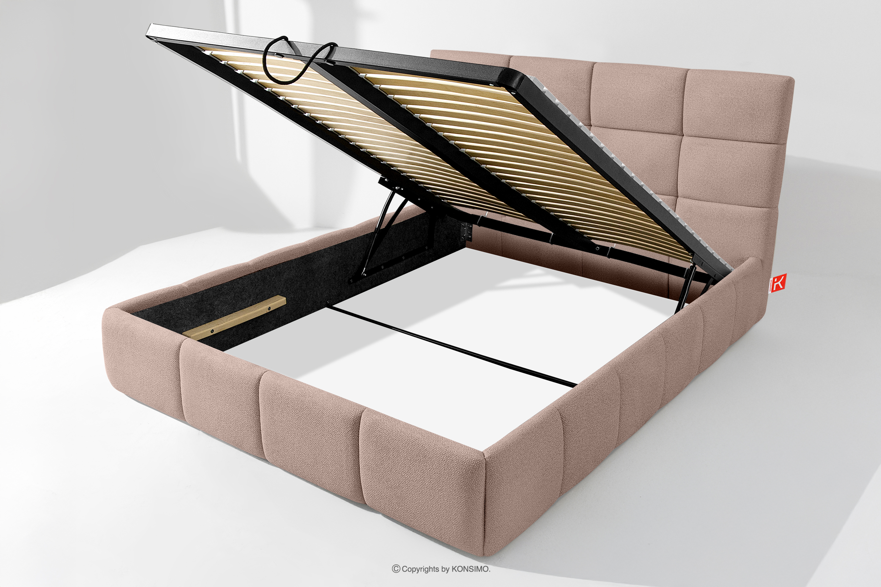 Ďalším komfortom je pohodlný kontajner na lôžkoviny, ktorý sa otvára vďaka moderným plynovým fľašiam - bez námahy a plne automaticky. Toto praktické riešenie umožňuje rýchly prístup k uloženej posteľnej bielizni bez toho, aby ste museli ručne zdvíhať ťažký matrac.